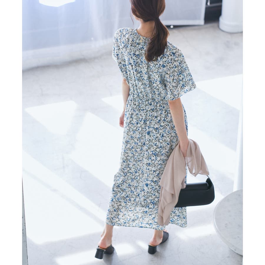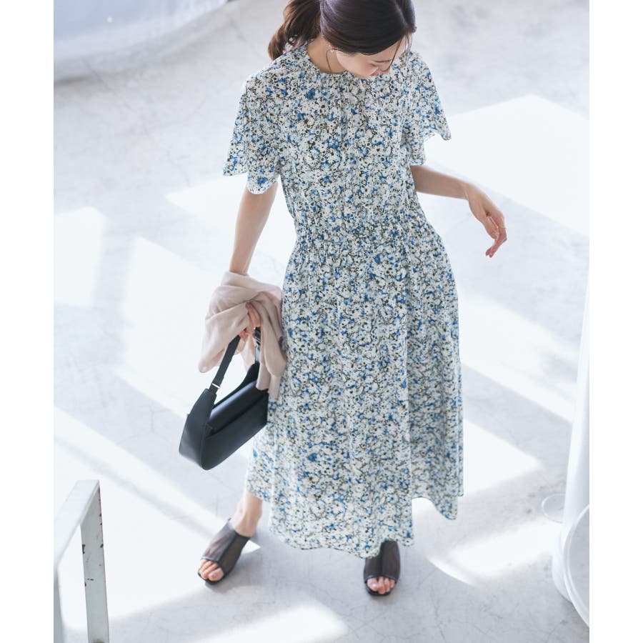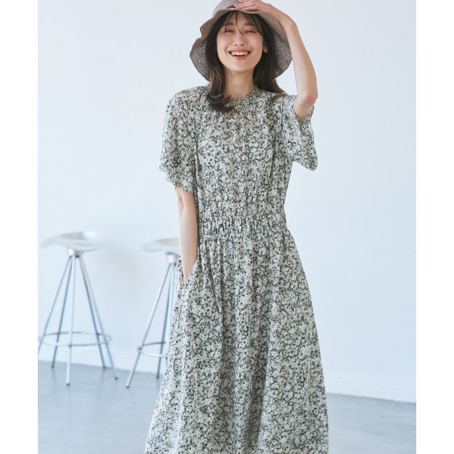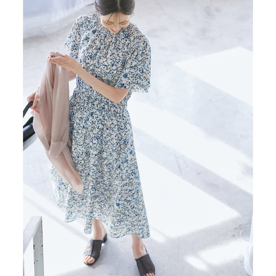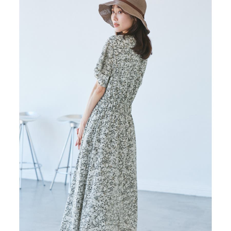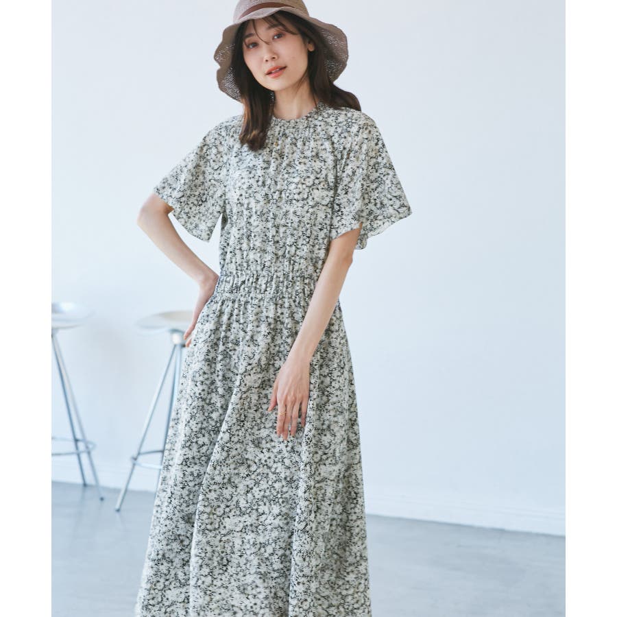 【emur/エミュール】マーガレット柄シャーリングワンピース