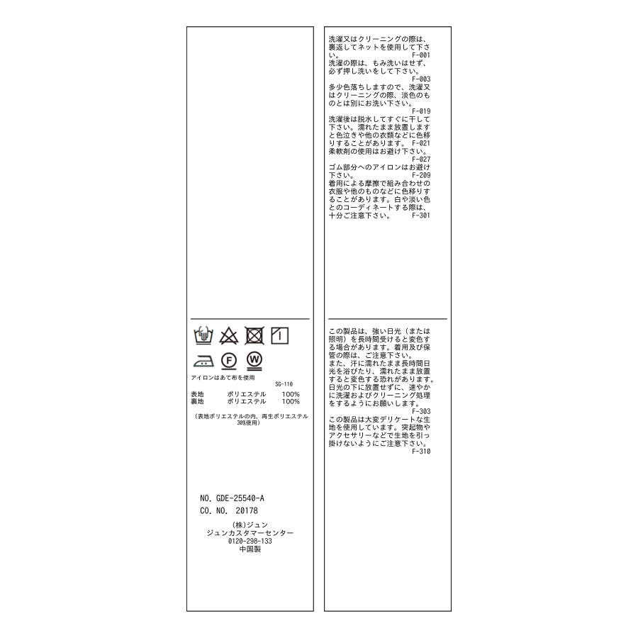 | 素材 | (表地)ポリエステル 100% (裏地)ポリエステル 100% |