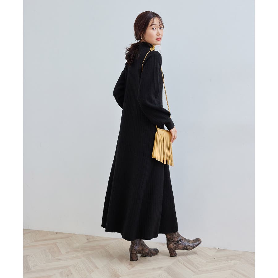 【素材感】 ・リサイクルポリエステルを使用したサスティナブルアイテム。 ・ふんわりとした触り心地。 【デザイン・シルエット】 ・ハイネックデザインの秋冬らしいニットワンピース。 ・緩やかに広がるクラシックなAラインシルエット。 【カラー】 ・ブラック、キナリ、ブラウンのベーシックカラー3色展開。 ・キナリ(16)はやや透け感があるので、1枚で着るならペチコート合わせがおすすめ。 【スタイリングポイント】 ・スカーフやストール、ハットなどの小物でアレンジを利かせるとオリジナリティのあるスタイルに。 ----------------------------- 裏地:なし 透け感:なし、キナリ(16)はややあり 伸縮性:あり 生地感・厚さ:やや厚手 ポケット:なし 季節:秋・冬 ----------------------------- ※撮影時の光、お使いのモニター環境によって色の見え方が違う場合がございます。