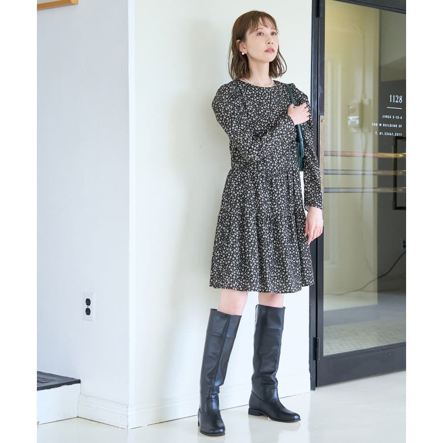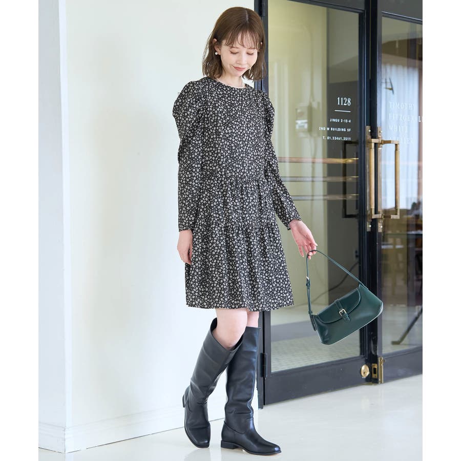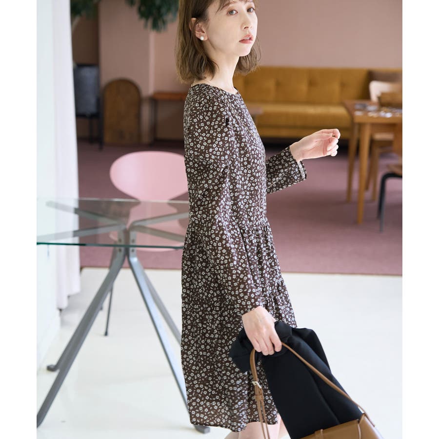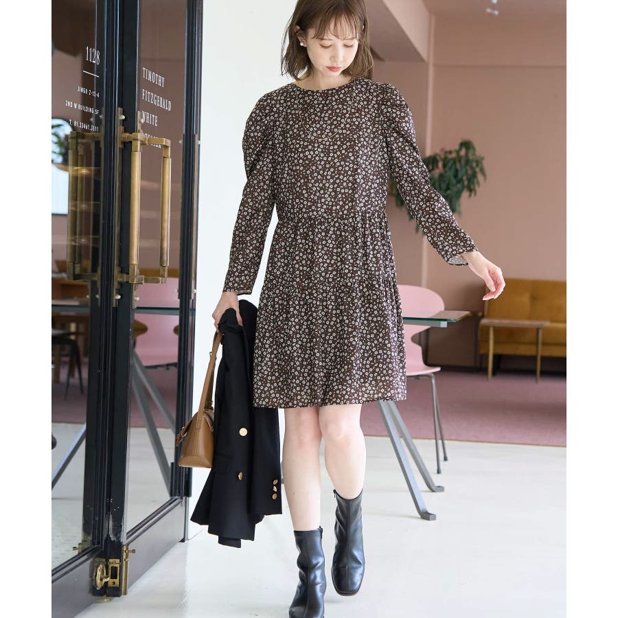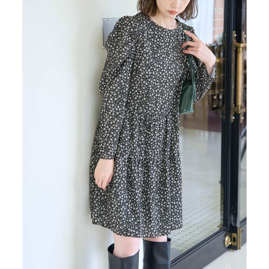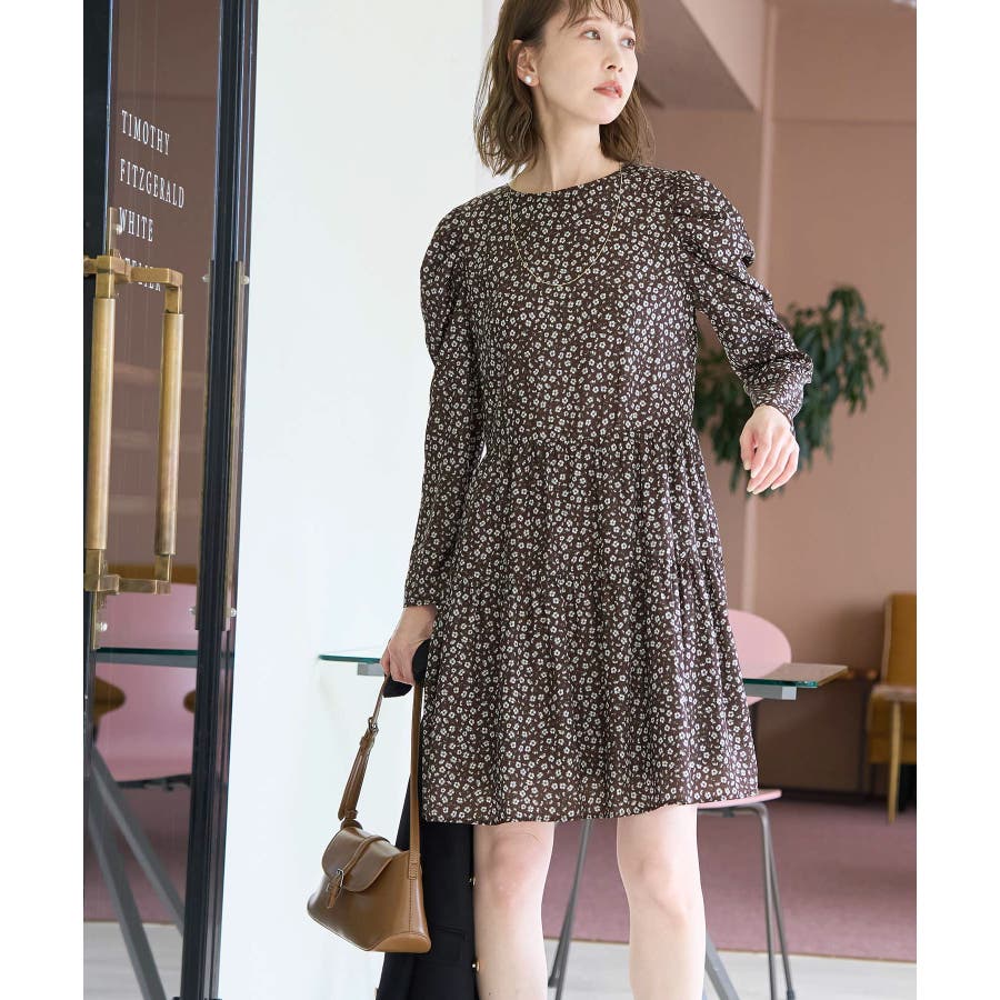 【デザイン・シルエット】 ・秋らしい小花プリントのティアードワンピース。 ・安心の長袖で、ギャザーを入れたパフスリーブがクラシカル。 ・ネックは開きすぎないクルーネック。 【カラー】 ・ブラック、ダークブラウン、キャメルのシックな3色を展開。 【スタイリングポイント】 ・深みのある色合いのカラータイツを合わせて秋の着こなしに。 ・ブーツとのコーディネートも楽しめる。 ・ストールやカーディガンで体温調整を。 ・同シリーズでKIDS(品番:GRC64020)も展開しているので、親子お揃いもおすすめ。 ----------------------------- 裏地:スカート部分のみあり 透け感:なし 伸縮性なし 生地感・厚さ:やや薄手 ポケット:なし ファスナー:なし その他仕様:後ろボタンあり 季節:春~秋 ----------------------------- ※撮影時の光、お使いのモニター環境によって色の見え方が違う場合がございます。 ※モデル身長:165cm 着用サイズ:38