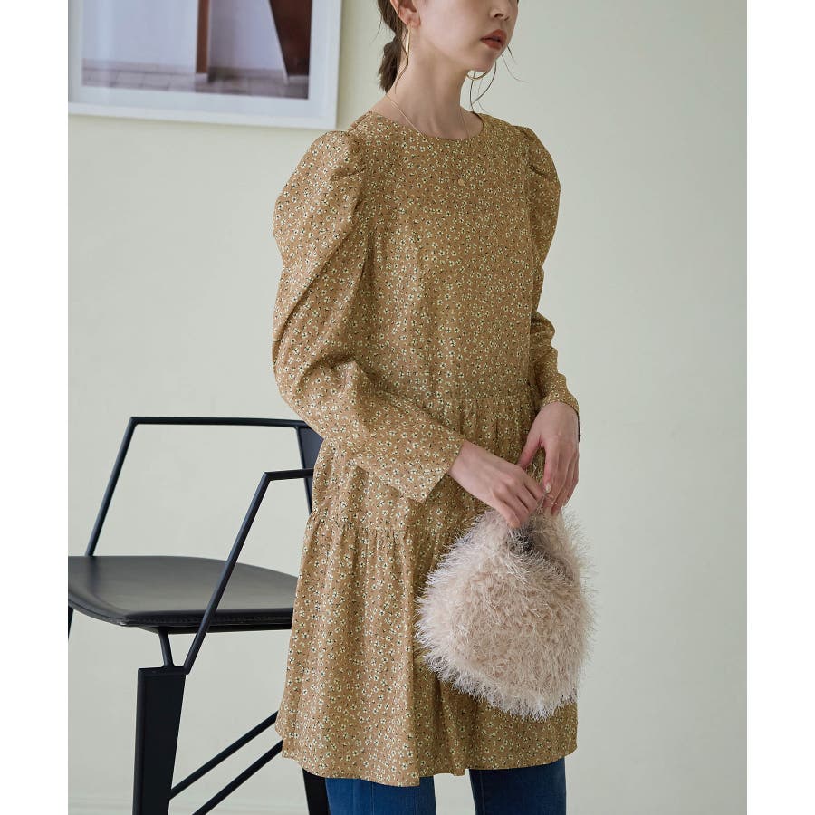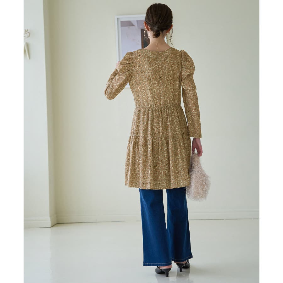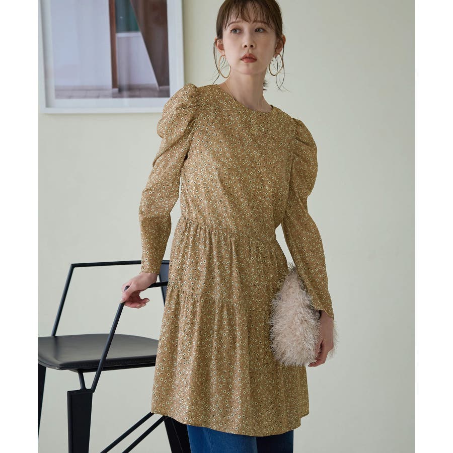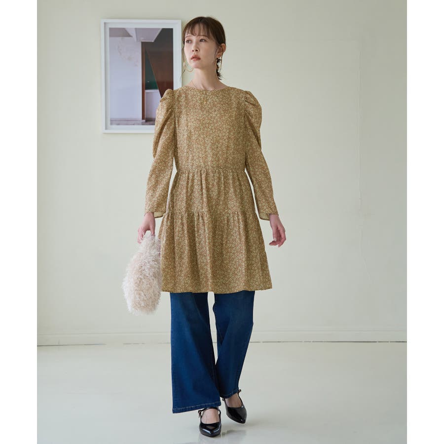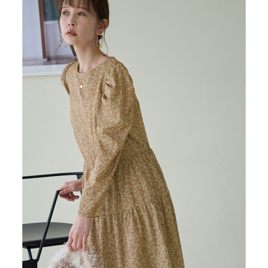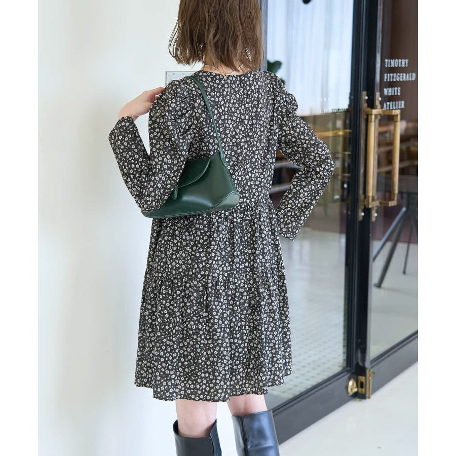 【デザイン・シルエット】 ・秋らしい小花プリントのティアードワンピース。 ・安心の長袖で、ギャザーを入れたパフスリーブがクラシカル。 ・ネックは開きすぎないクルーネック。 【カラー】 ・ブラック、ダークブラウン、キャメルのシックな3色を展開。 【スタイリングポイント】 ・深みのある色合いのカラータイツを合わせて秋の着こなしに。 ・ブーツとのコーディネートも楽しめる。 ・ストールやカーディガンで体温調整を。 ・同シリーズでKIDS(品番:GRC64020)も展開しているので、親子お揃いもおすすめ。 ----------------------------- 裏地:スカート部分のみあり 透け感:なし 伸縮性なし 生地感・厚さ:やや薄手 ポケット:なし ファスナー:なし その他仕様:後ろボタンあり 季節:春~秋 ----------------------------- ※撮影時の光、お使いのモニター環境によって色の見え方が違う場合がございます。 ※モデル身長:165cm 着用サイズ:38