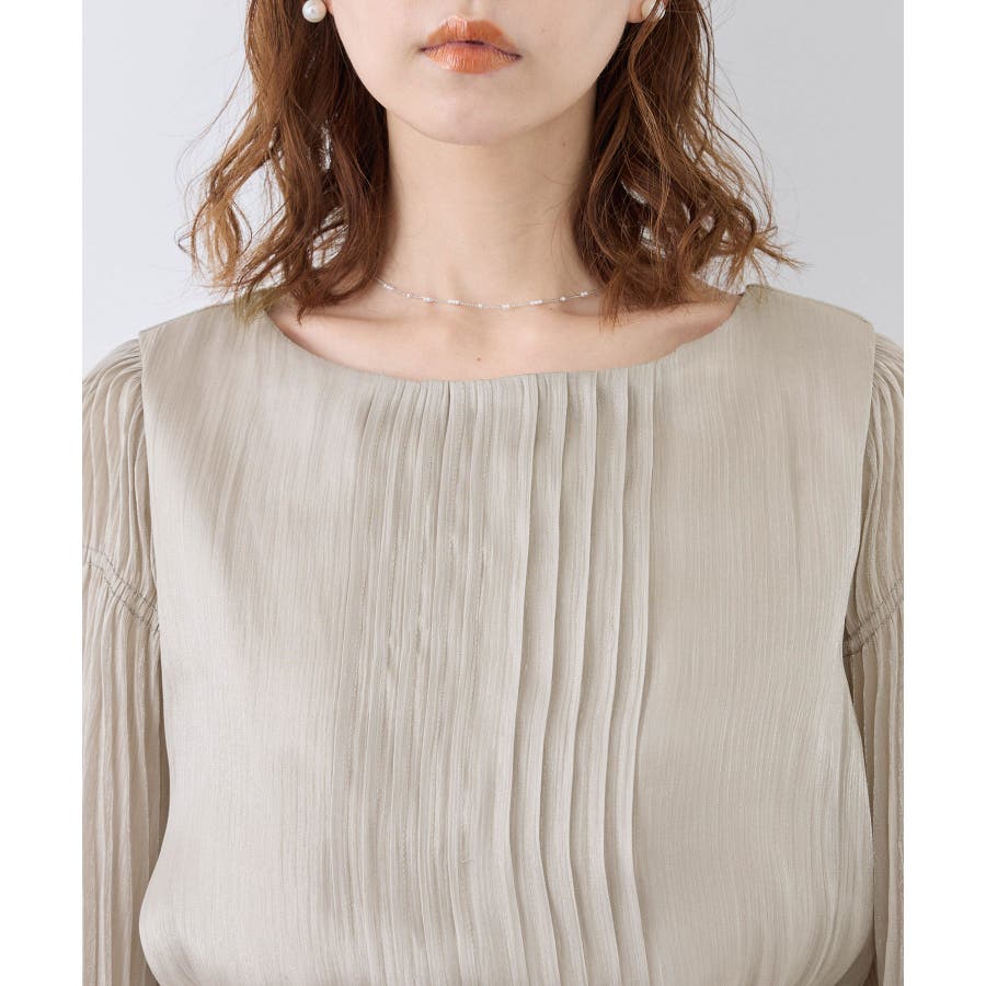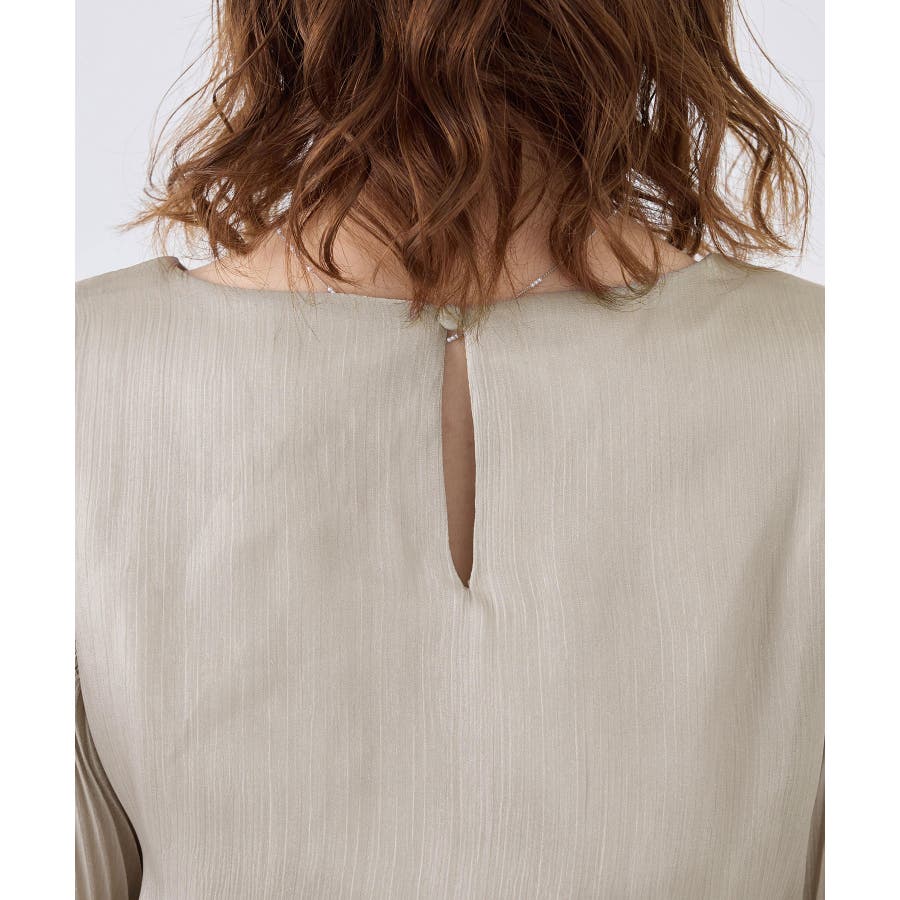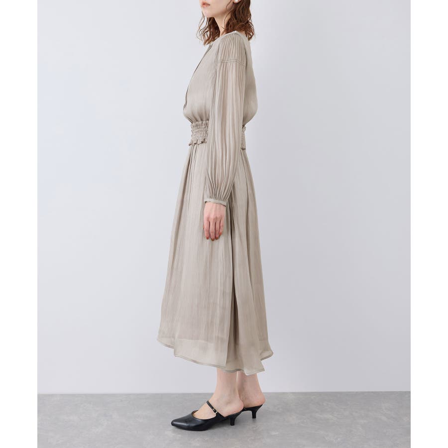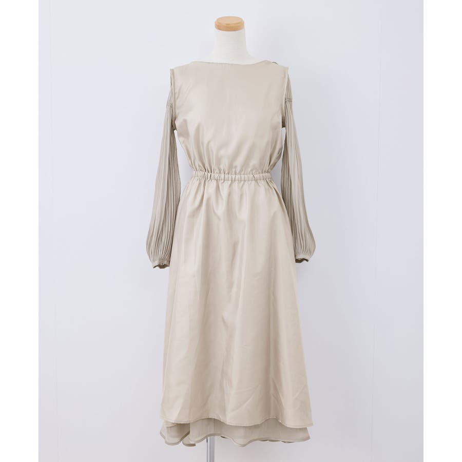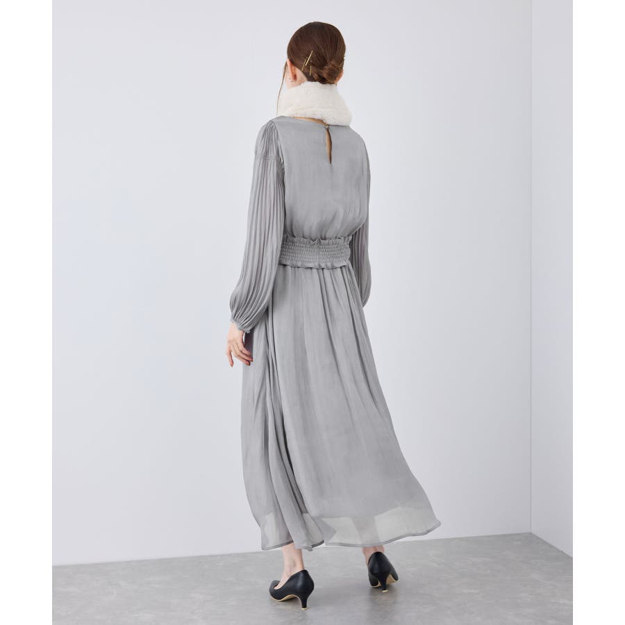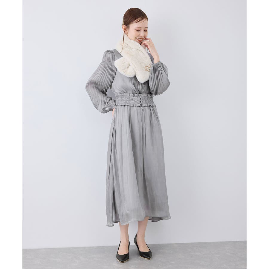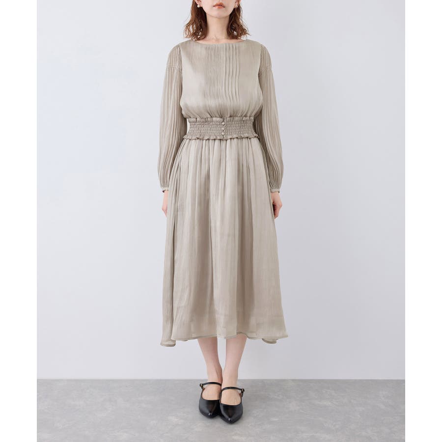【素材感】 ・シャイニータッチの華やかな素材を使ったロングスリーブドレス。 【デザイン・シルエット】 ・タックやプリーツ使いで表情豊かにデザイン。 ・ボリュームスリーブ、バックネックのスリットが、女性らしさを引き立てるアクセント。 ・ウエストシャーリングでラクチンの着心地。 ・袖のみプリーツ加工を施し、腕を動かすたびにふわふわと揺れてエレガントな表情に。 ・イレギュラーヘムの裾で足元がきれいに見える、やや前上りデザイン。 【カラー】 ・モカ、ブルーのニュアンストーンを2色で展開。 【スタイリングポイント】 ・パールネックレスを合わせてパーティー仕様に。 ・ブーツなどを合わせて普段使いもOK。 ・ふんわりモヘアのカーディガンを羽織ると愛らしい冬スタイルが完成。 ----------------------------- 裏地:あり 透け感:裏地がない部分はややあり 伸縮性:なし 生地感・厚さ:普通 ポケット:なし ファスナー:なし ウエスト:シャーリング その他仕様:シャーリングベルト取り外し可能 季節:春・秋・冬 ----------------------------- ※撮影時の光、お使いのモニター環境によって色の見え方が違う場合がございます。 ※モデル身長:165cm 着用サイズ:38 : 【Mon E’toile】 一部店舗限定のドレスライン『Mon E’toile( モンエトワール)』 内面からも輝くスタイルを叶えるドレスで、結婚式やパーティーなどの「ハレ」の日や、いつもよりちょっと特別な日におすすめです。