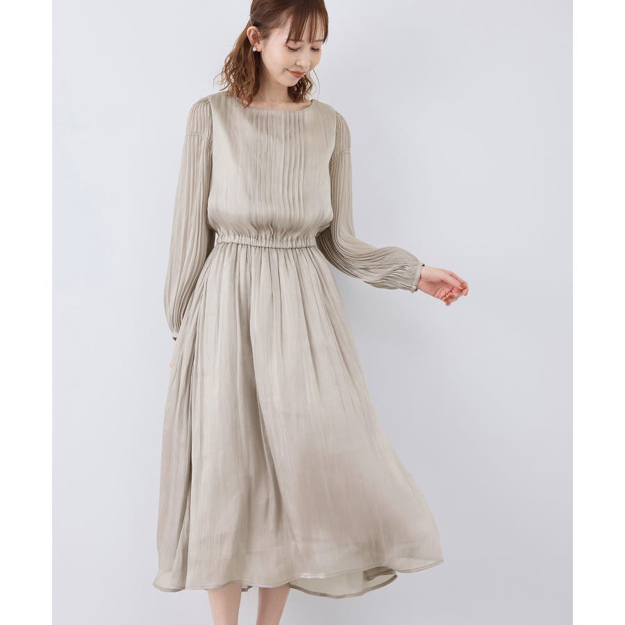 【ブラウン系(23)】結婚式にも シャイニープリーツDRESS