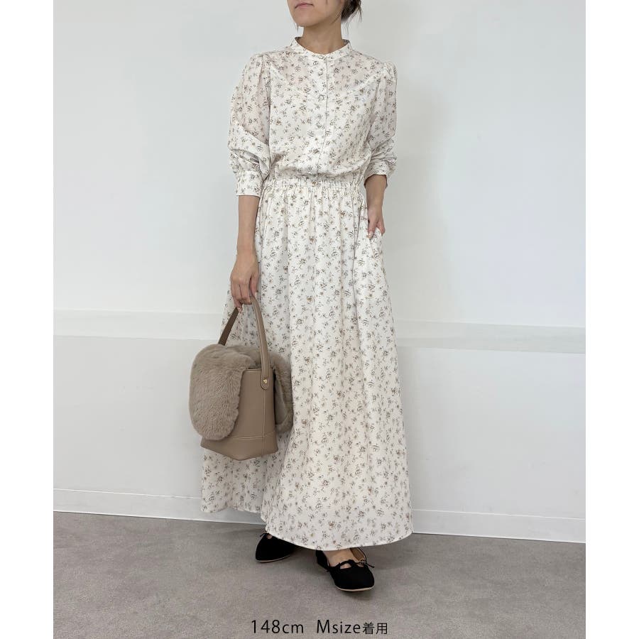 ・ウエストギャザーとパフスリーブで、フェミニンなふんわりとしたシルエット。