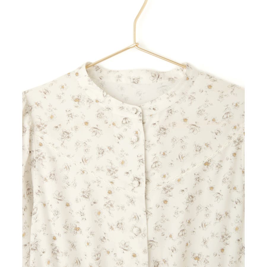 ・トップが前開きのシャツデザインで、コンパクトなスタンドネックを採用。