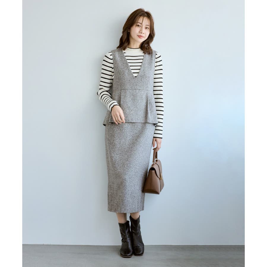 ・リブインナーなどのコンパクトなニットとのコーディネートはワンピース自体のすっきりとしたシルエットを活かせるのでイチオシ。