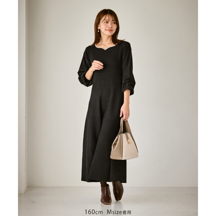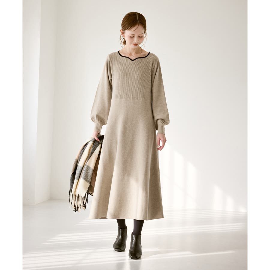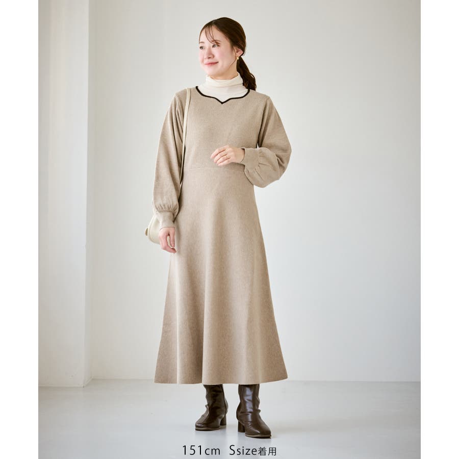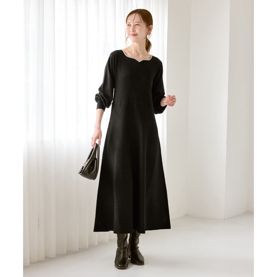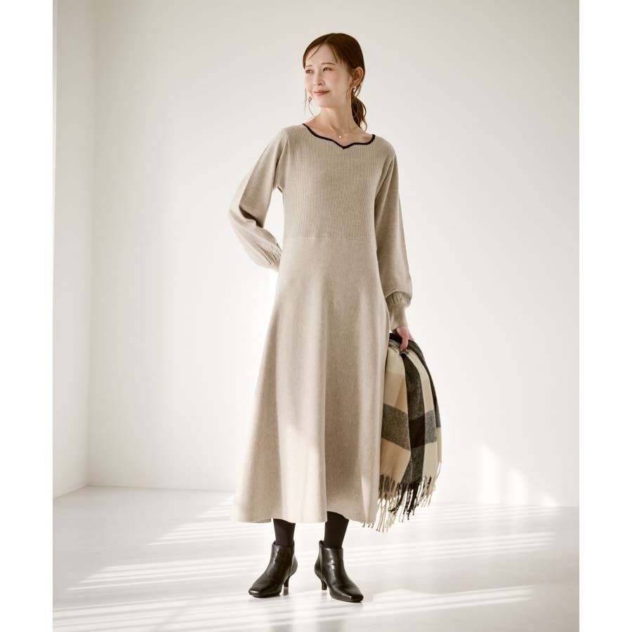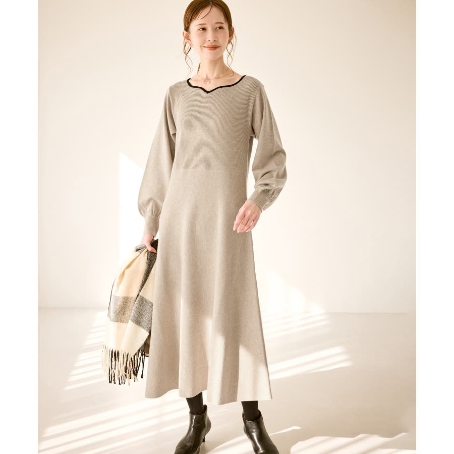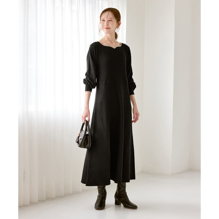 ・ハートネックがポイントの一枚でキマるニットワンピース。