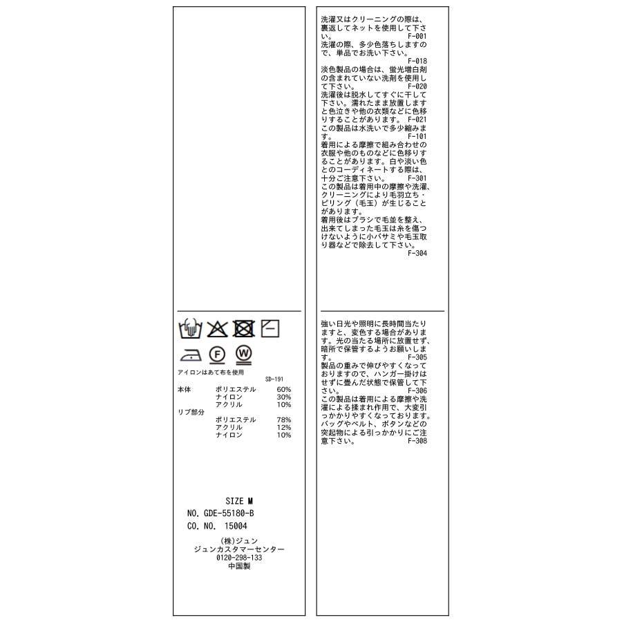 | 素材 | (本体) ポリエステル 60% ナイロン 30% アクリル 10% (リブ部分) ポリエステル 78% アクリル 12% ナイロン 10% |