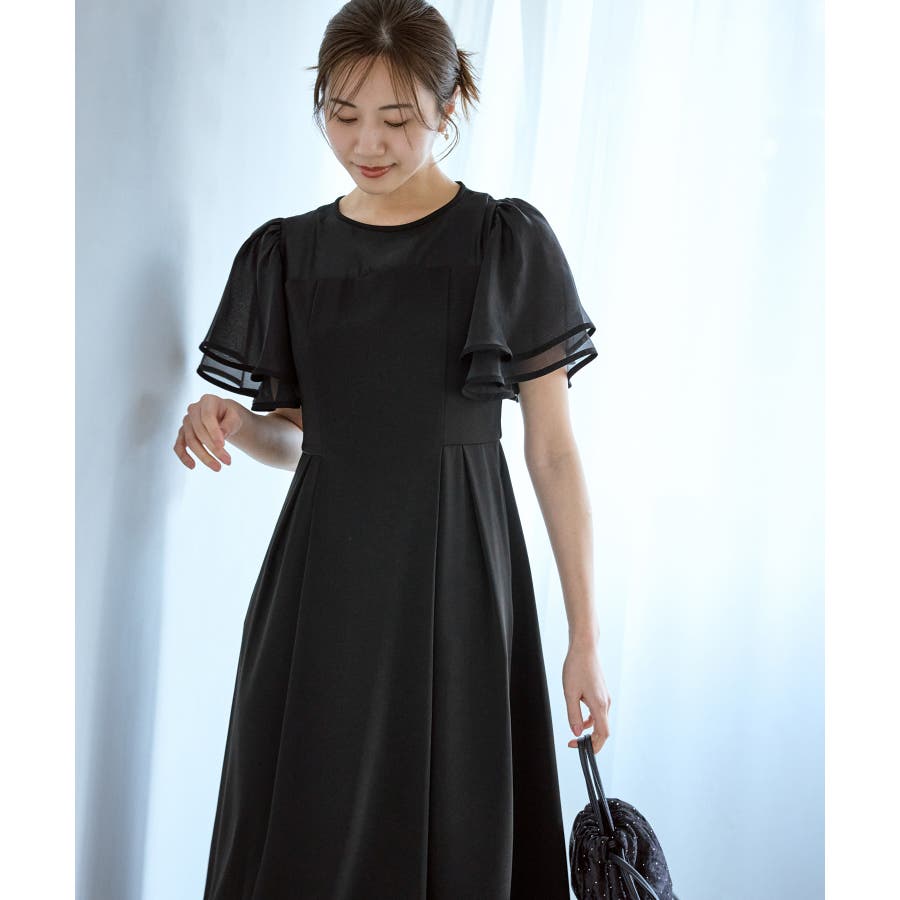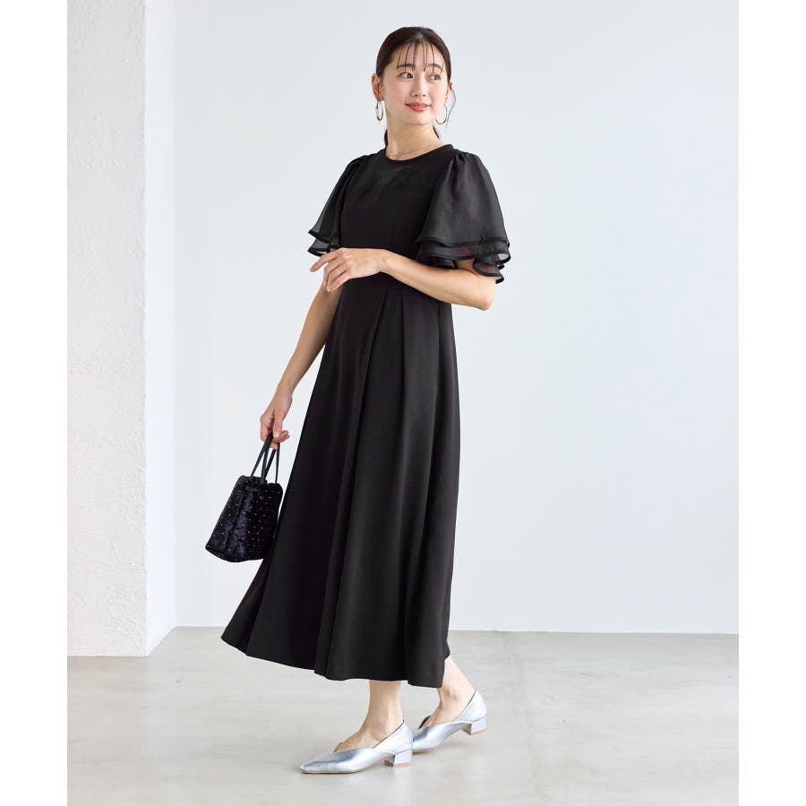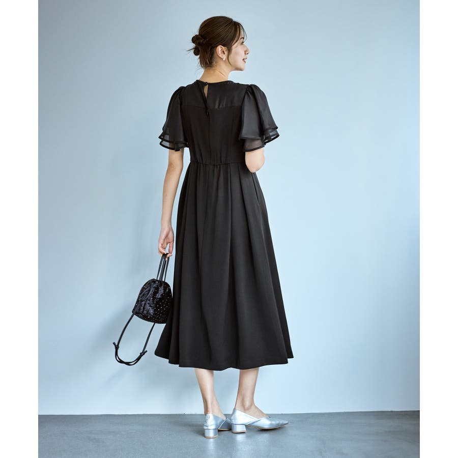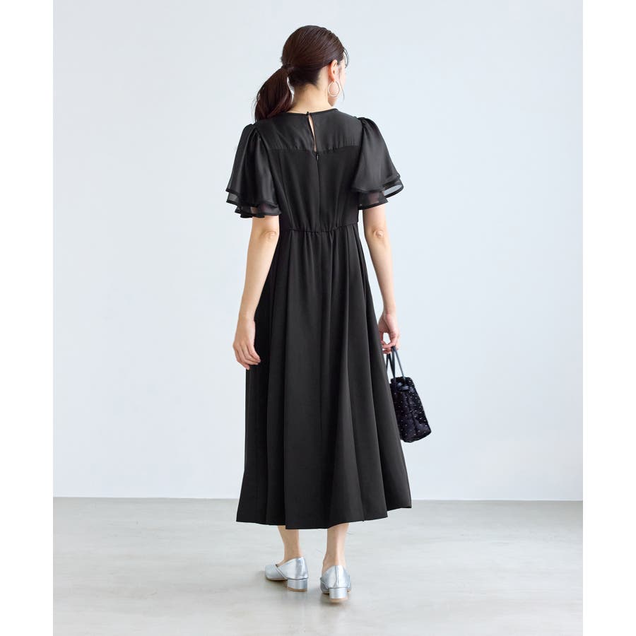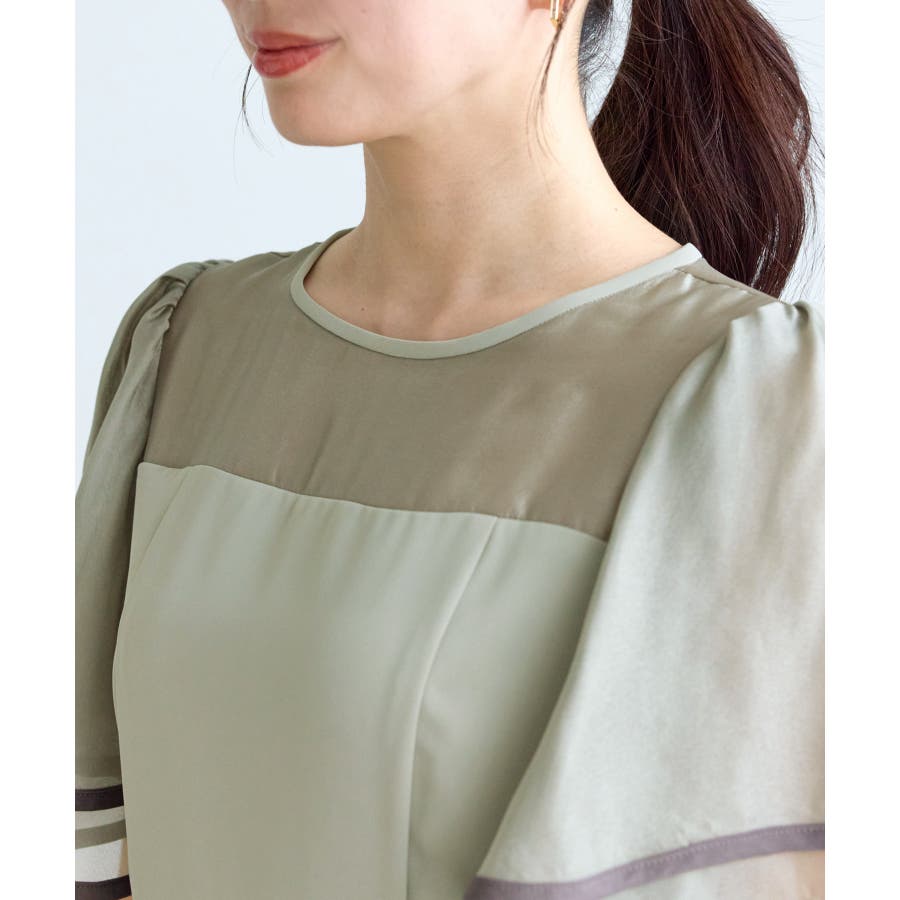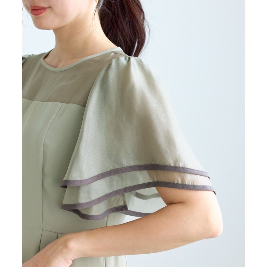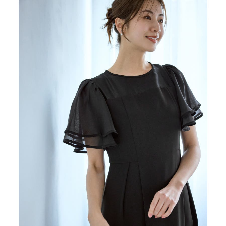 ・シアー素材のフレアスリーブは気になる二の腕を上品にカバーし、美しいバランスに整える。