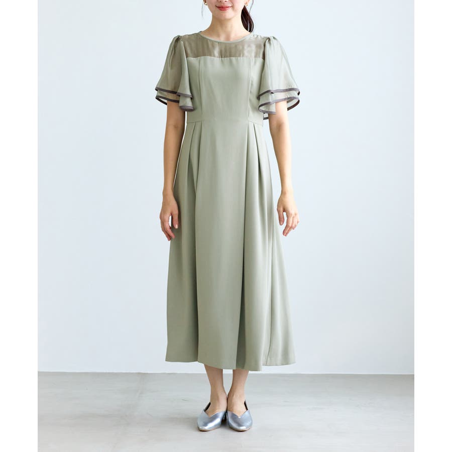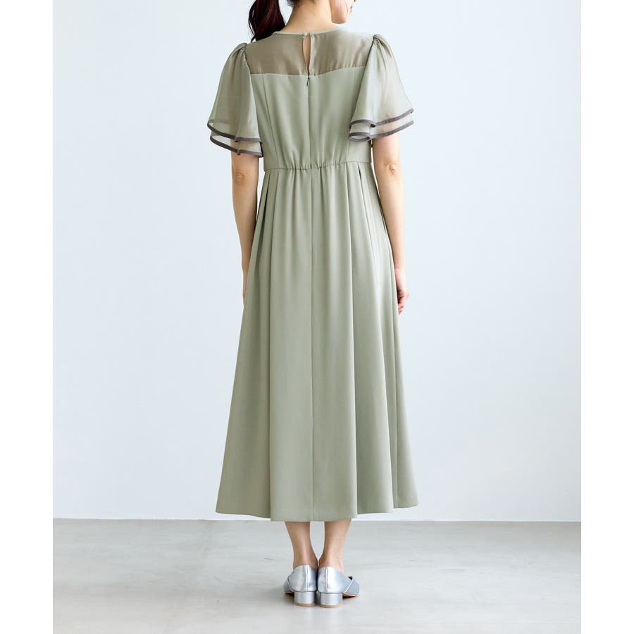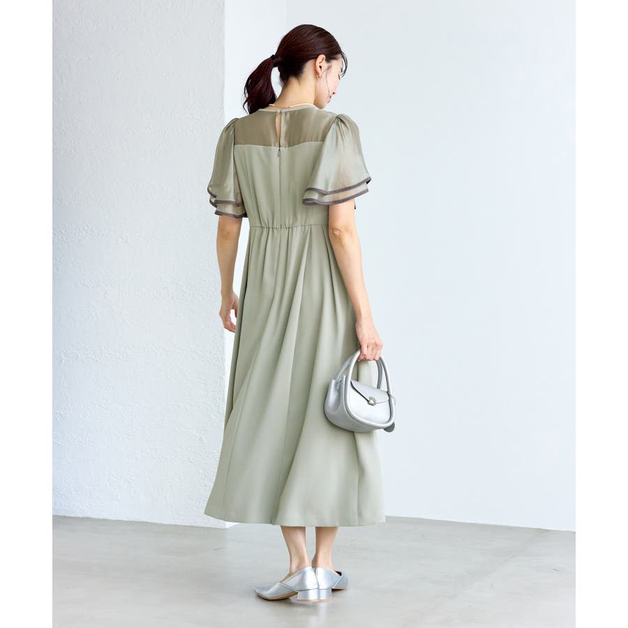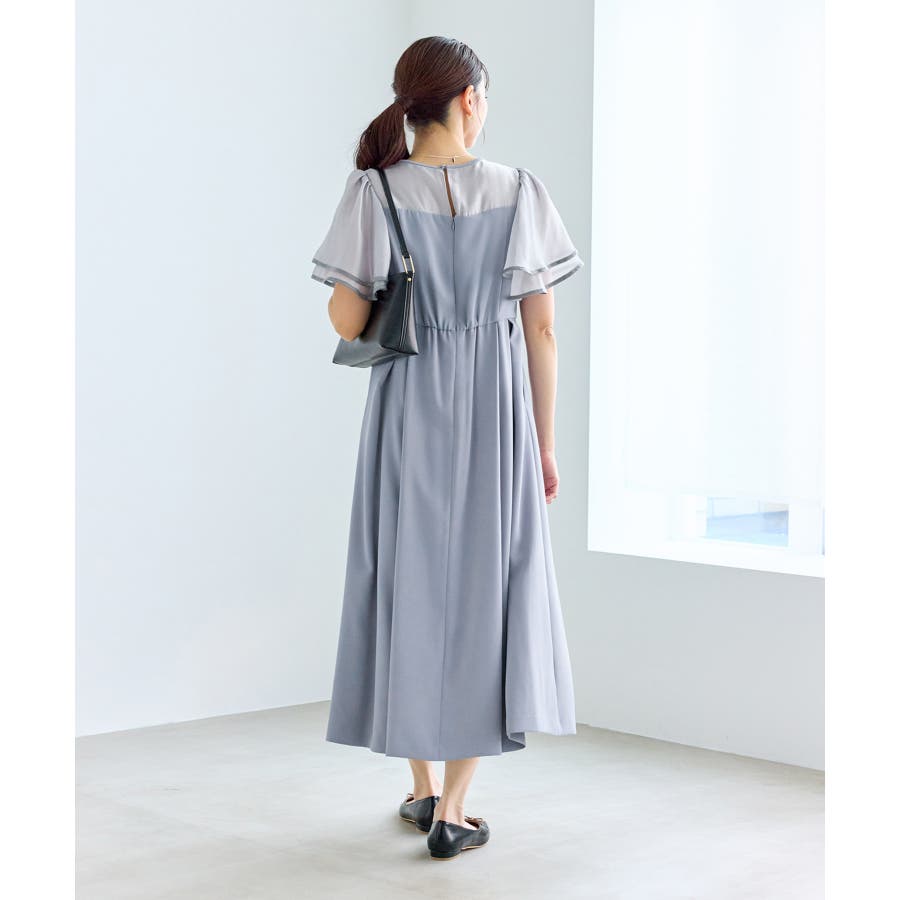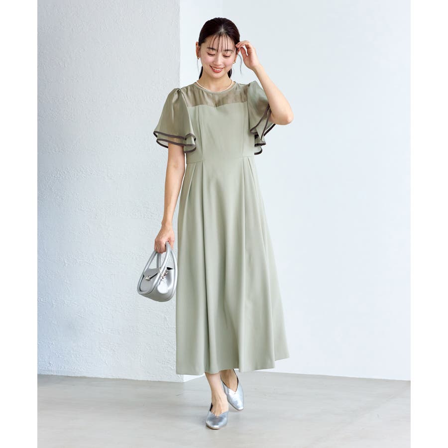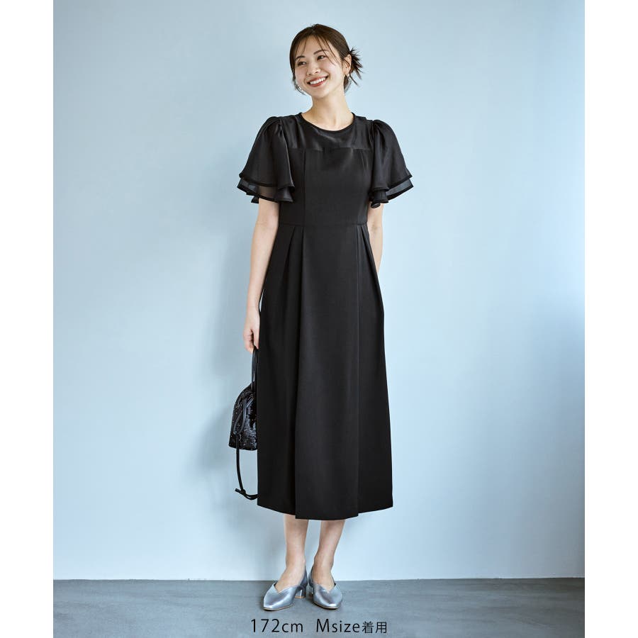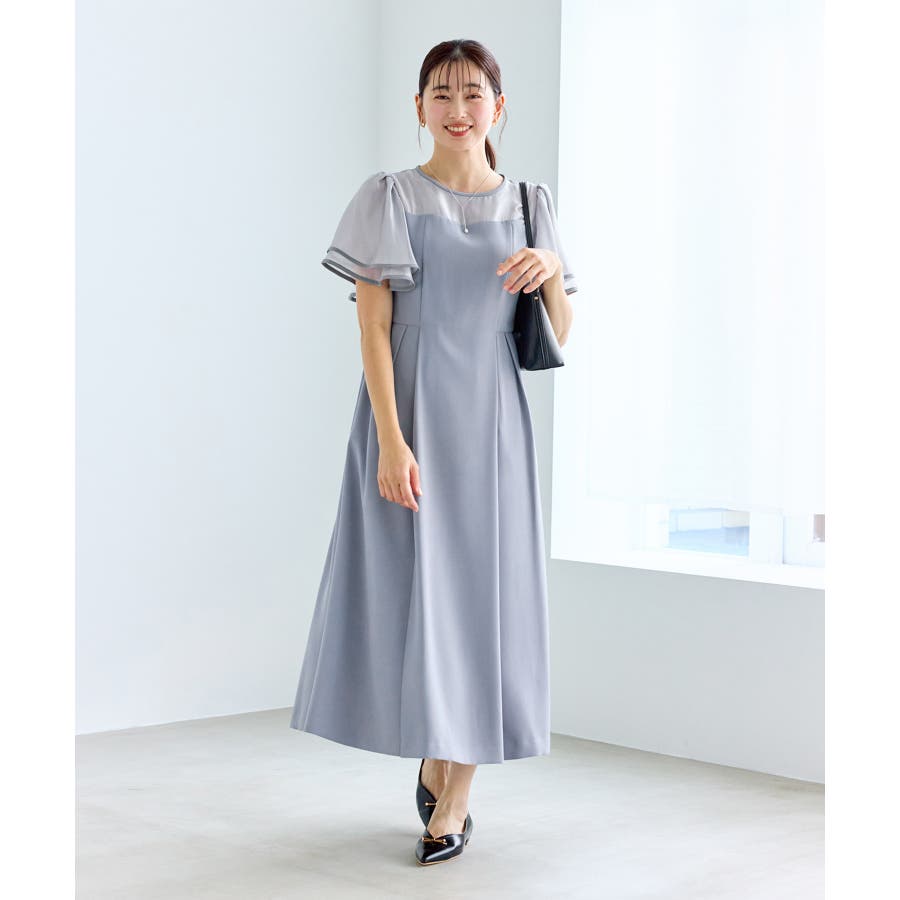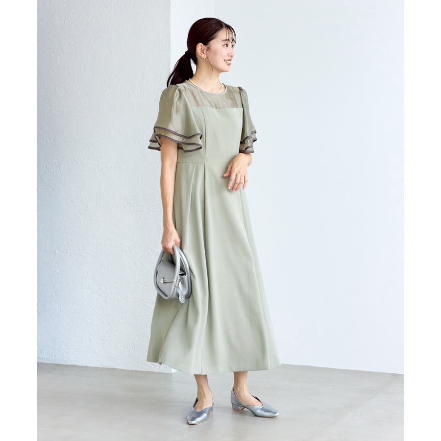 ・シアー素材のフレアスリーブは気になる二の腕を上品にカバーし、美しいバランスに整える。
