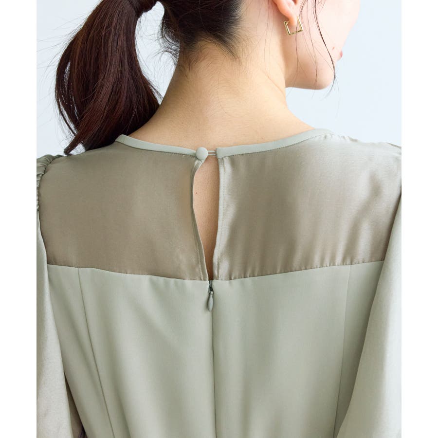 ・シアー素材と落ち感のある布帛素材を組み合わせた異素材デザイン。