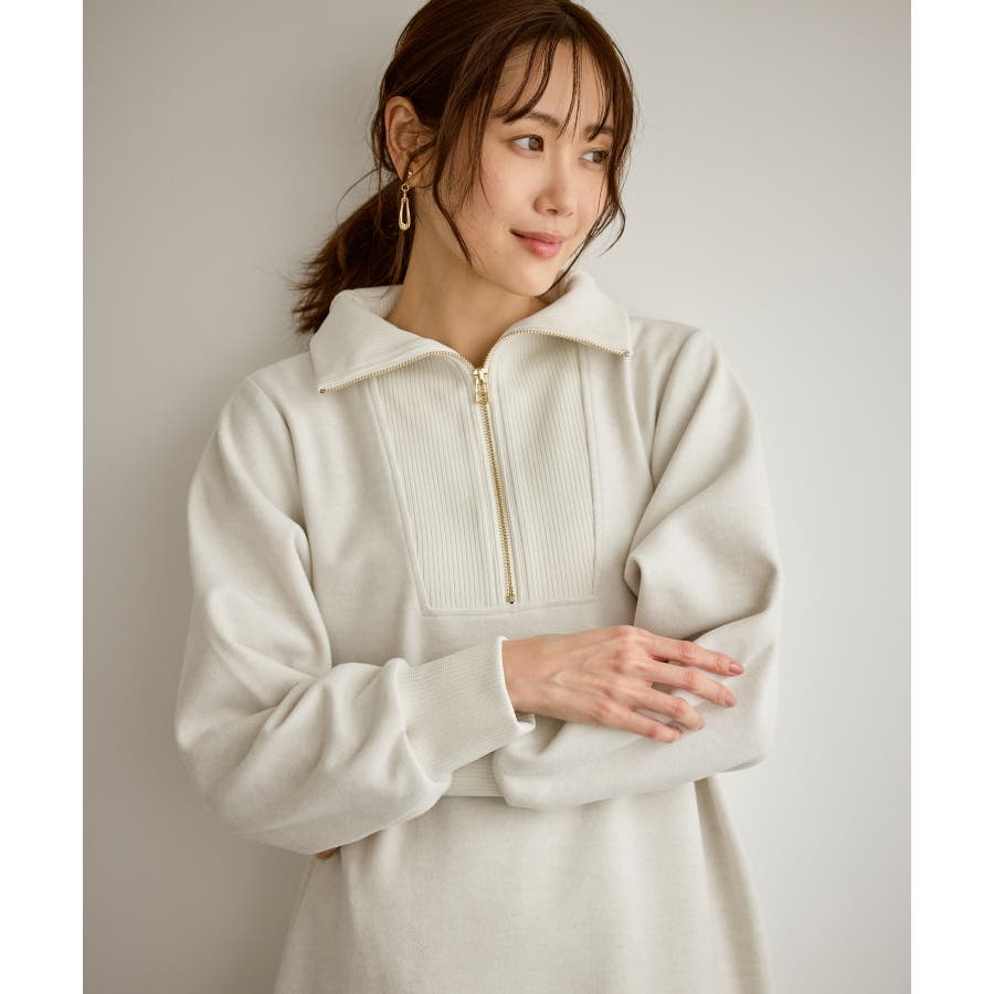 ・ジップ付きのボリュームカラーが印象的なデザイン。