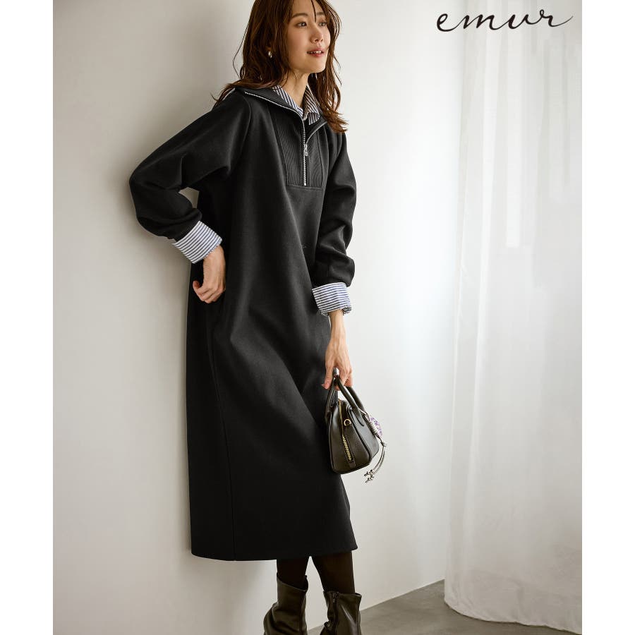 【emur/エミュール】圧縮起毛ステンニットワンピース