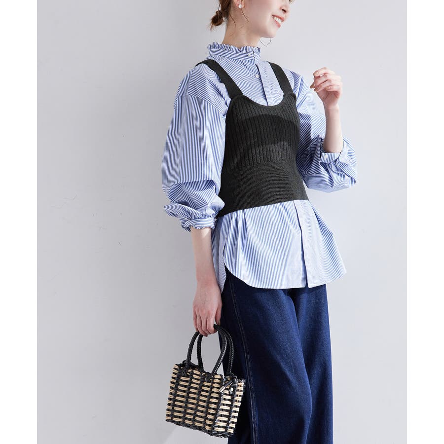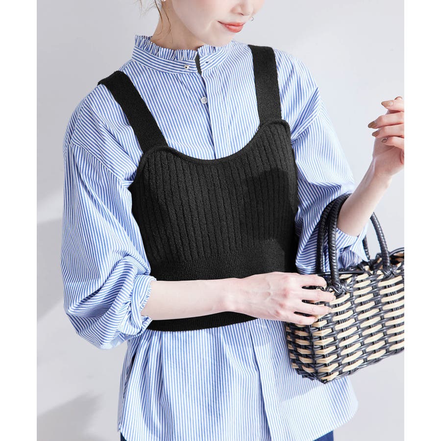 ・安心感のある幅広の肩紐と、軽快なクロップド丈がポイント。