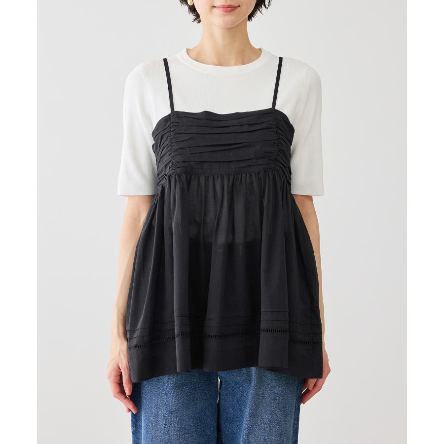お着軽シャツシリーズ シアーレイヤードキャミソールブラウス/接触冷感・通気性