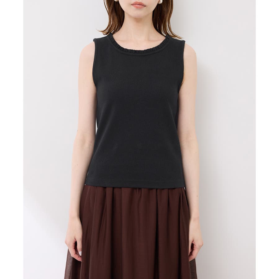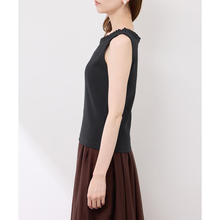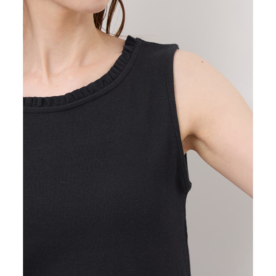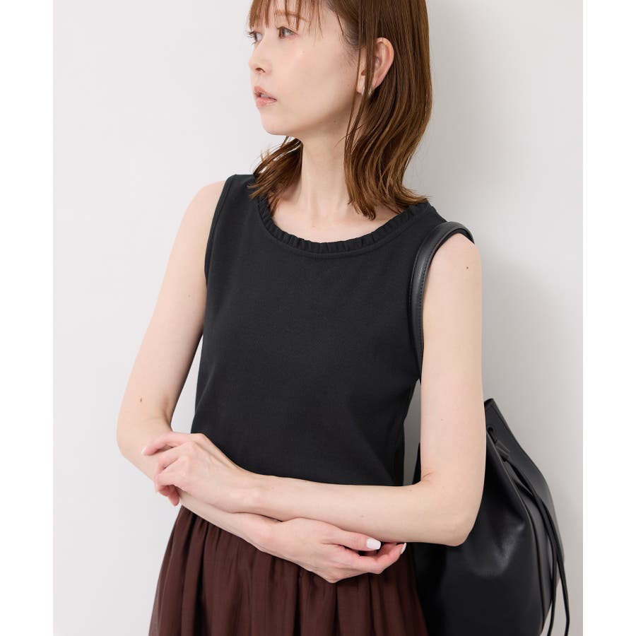 ・ネックラインとアームの開きを抑えて、安心の着心地に仕上げたタンクトップ。