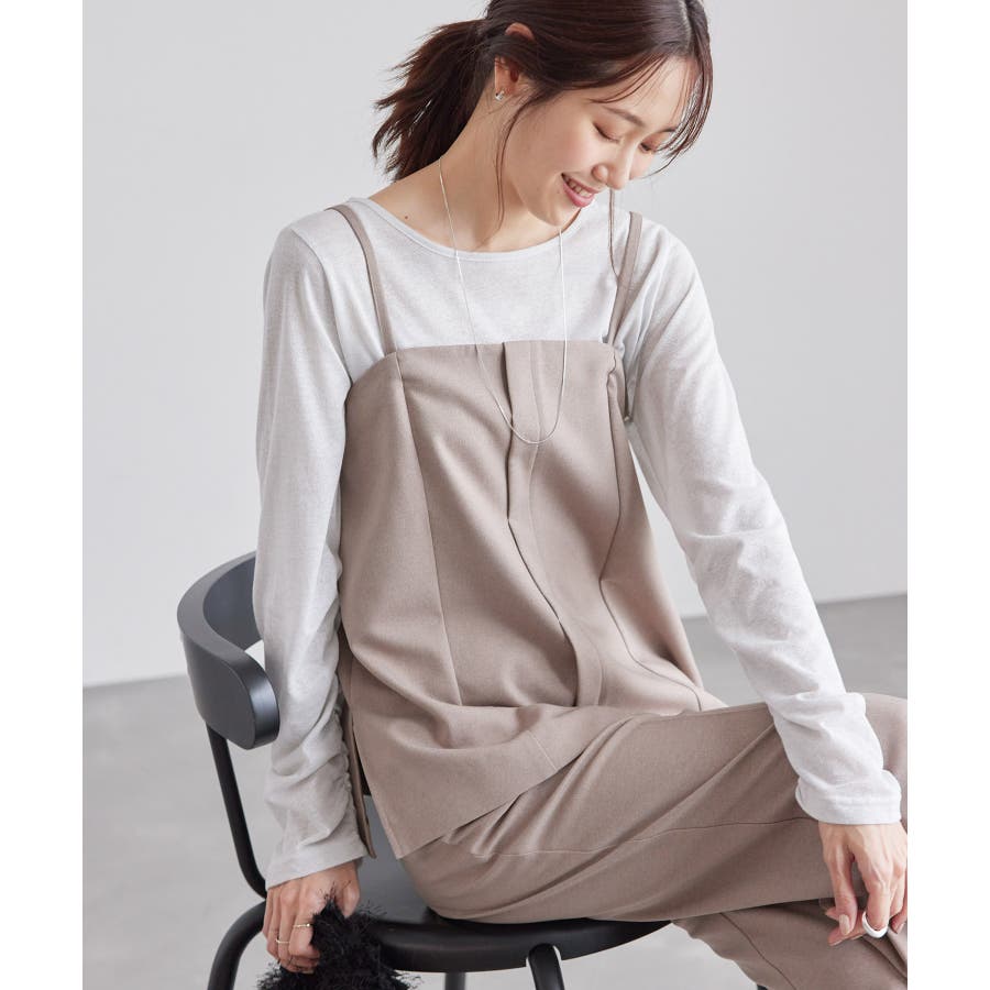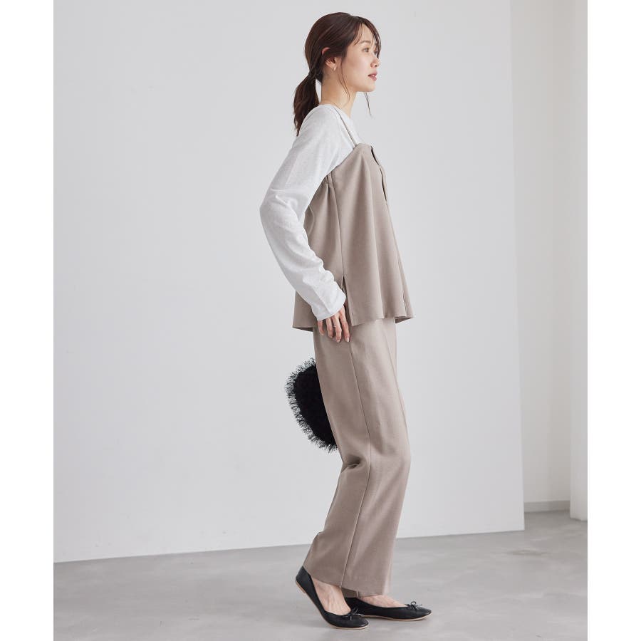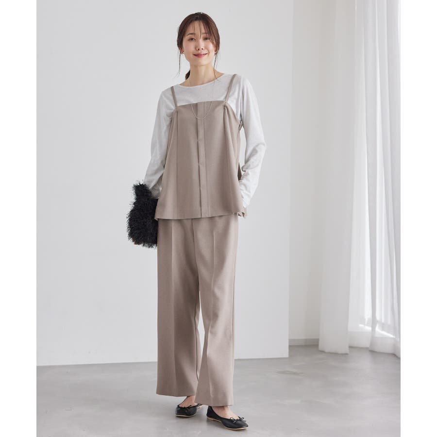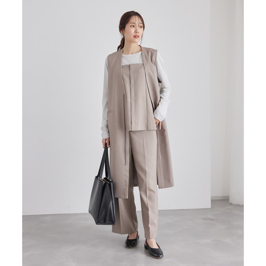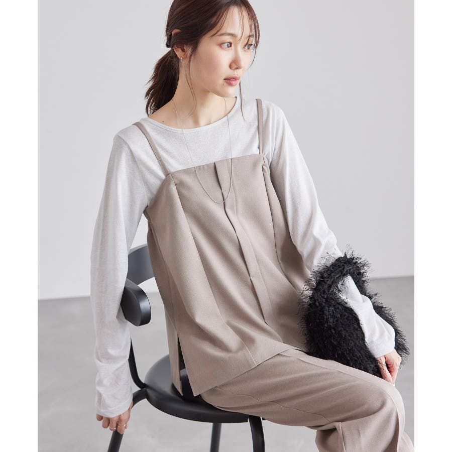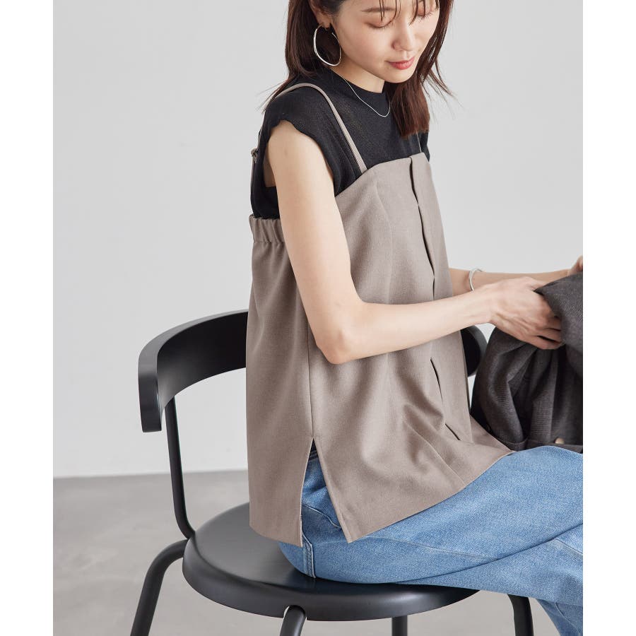 【素材感】 ・ウールライクな布帛で仕立てた、キャミソール型ビスチェ。 【デザイン・シルエット】 ・フロント開きの比翼仕立てで上品なデザイン。 ・バックスタイルのトップはシャーリングを施してフィット感をだし、ショルダーストラップを外しても着られるよう工夫。 ・裾にサイドスリット入り。 【カラー】 ・チャコールグレー、ベージュの落ち着いた2色展開。 【スタイリングポイント】 ・シンプルなTシャツからきちんと感のあるワイシャツなど、幅広いトップスの上にレイヤードができる。 ・一枚着で取り入れて、ジャケットやカーディガンを重ねてもOK。 ・ハンサムなパンツルックにマッチ。 ・同シリーズでパンツ(品番:GDS54040)、ジレ(品番:GDV54040)も展開しているので、セットアップもおすすめ。 ・同シリーズでKIDSのパンツ(品番:GRS64000)も展開しているので、親子お揃いも一押し。 ----------------------------- 裏地:なし 透け感:なし 伸縮性:なし 生地感・厚さ:やや厚手 ポケット:なし その他仕様:後ろゴム、肩紐調節・取り外し可能、フロントは開きません。 季節:秋・冬 ----------------------------- ※撮影時の光、お使いのモニター環境によって色の見え方が違う場合がございます。 ※モデル身長:165cm 着用サイズ:38