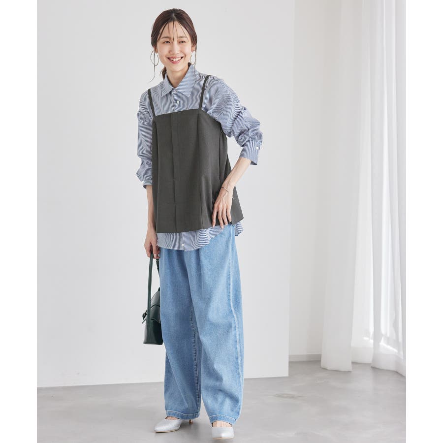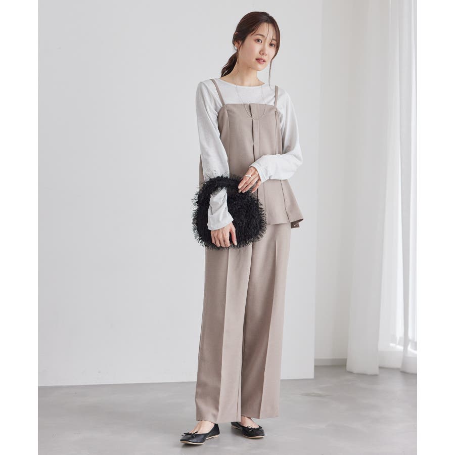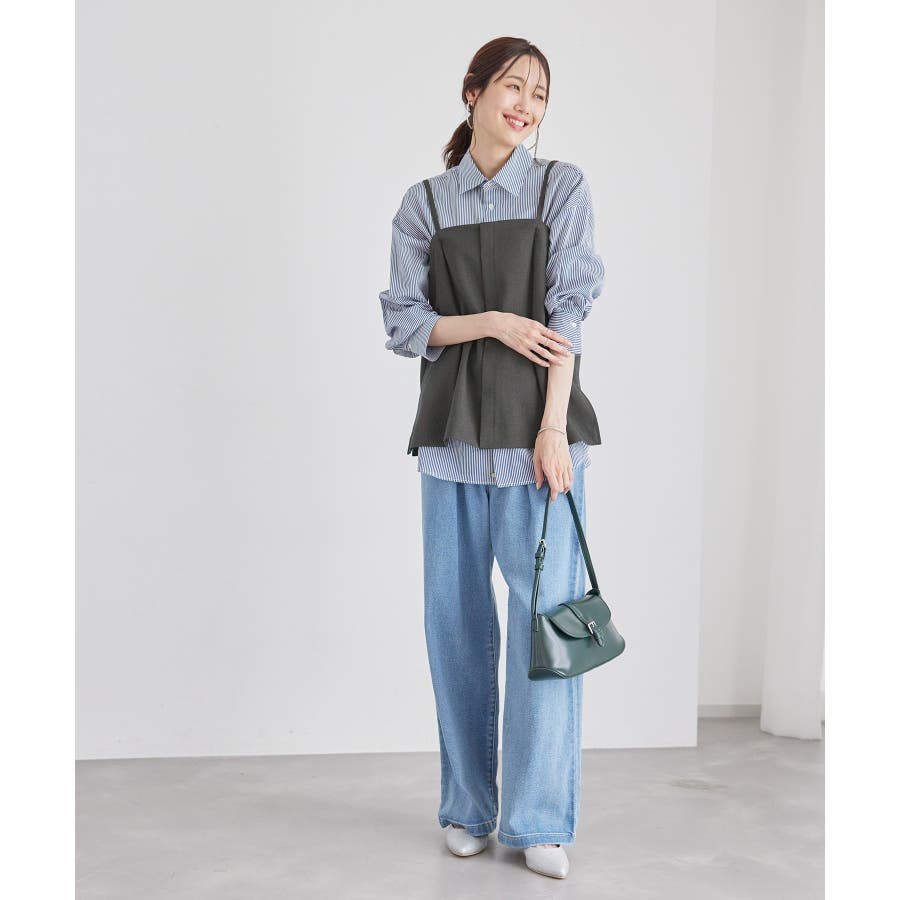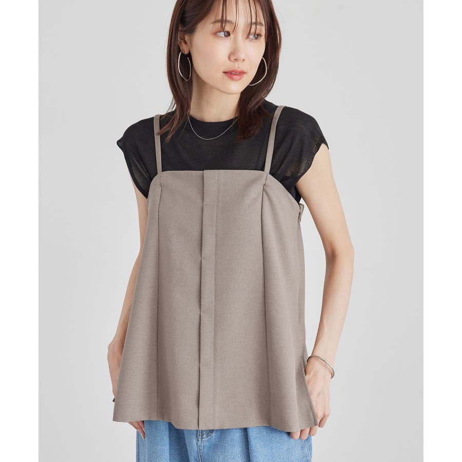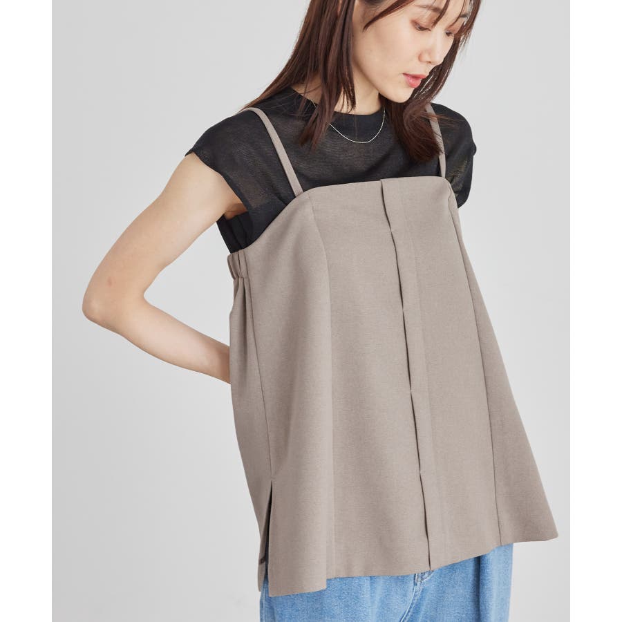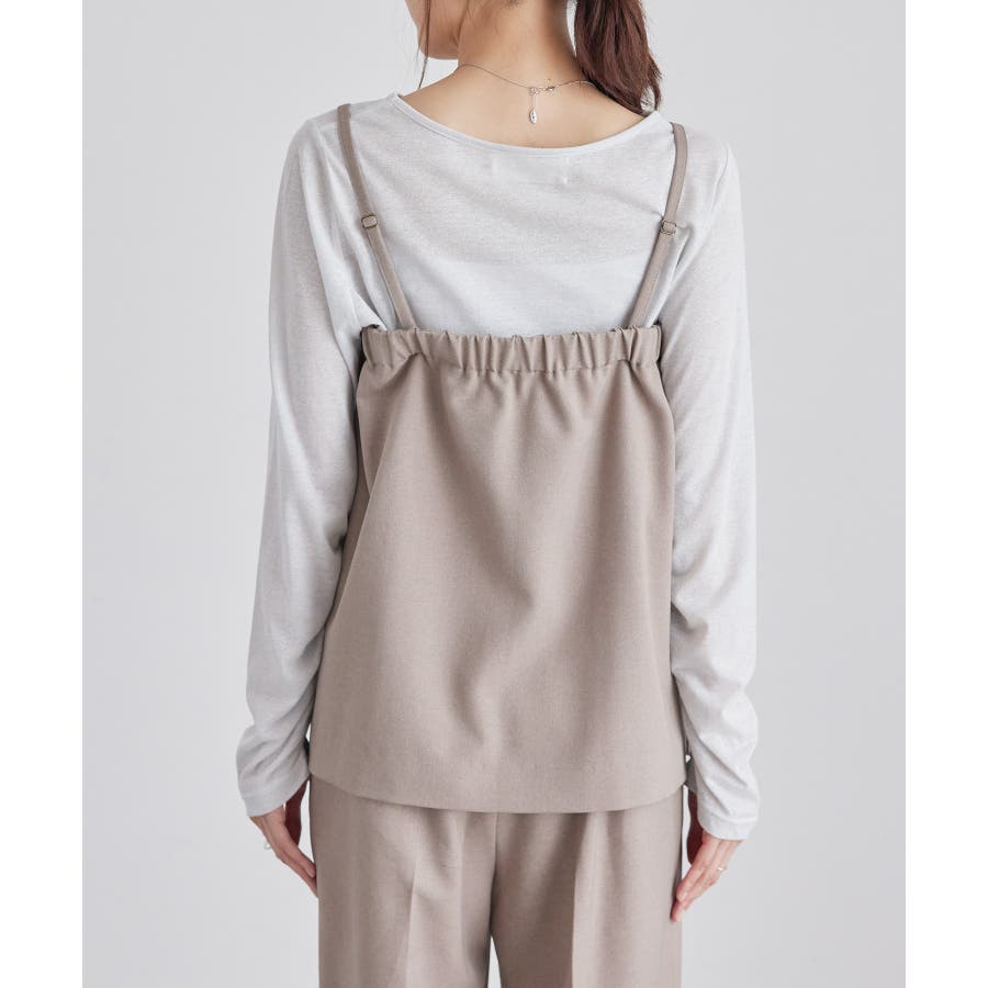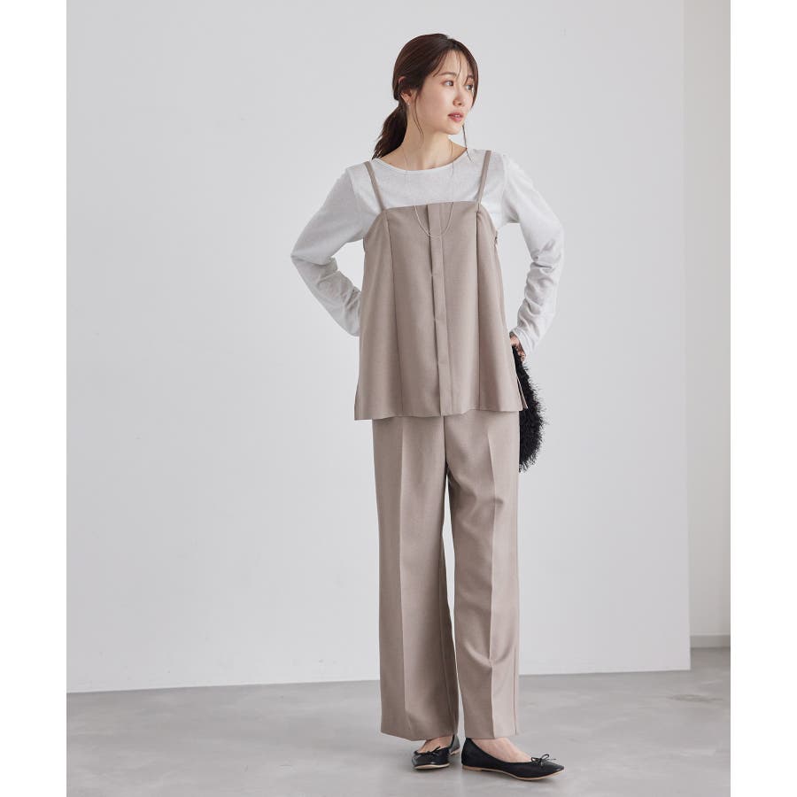 【素材感】 ・ウールライクな布帛で仕立てた、キャミソール型ビスチェ。 【デザイン・シルエット】 ・フロント開きの比翼仕立てで上品なデザイン。 ・バックスタイルのトップはシャーリングを施してフィット感をだし、ショルダーストラップを外しても着られるよう工夫。 ・裾にサイドスリット入り。 【カラー】 ・チャコールグレー、ベージュの落ち着いた2色展開。 【スタイリングポイント】 ・シンプルなTシャツからきちんと感のあるワイシャツなど、幅広いトップスの上にレイヤードができる。 ・一枚着で取り入れて、ジャケットやカーディガンを重ねてもOK。 ・ハンサムなパンツルックにマッチ。 ・同シリーズでパンツ(品番:GDS54040)、ジレ(品番:GDV54040)も展開しているので、セットアップもおすすめ。 ・同シリーズでKIDSのパンツ(品番:GRS64000)も展開しているので、親子お揃いも一押し。 ----------------------------- 裏地:なし 透け感:なし 伸縮性:なし 生地感・厚さ:やや厚手 ポケット:なし その他仕様:後ろゴム、肩紐調節・取り外し可能、フロントは開きません。 季節:秋・冬 ----------------------------- ※撮影時の光、お使いのモニター環境によって色の見え方が違う場合がございます。 ※モデル身長:165cm 着用サイズ:38