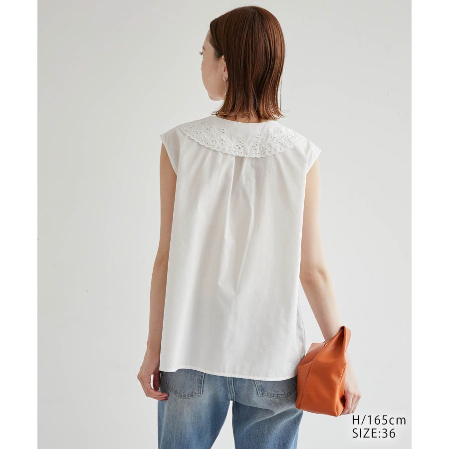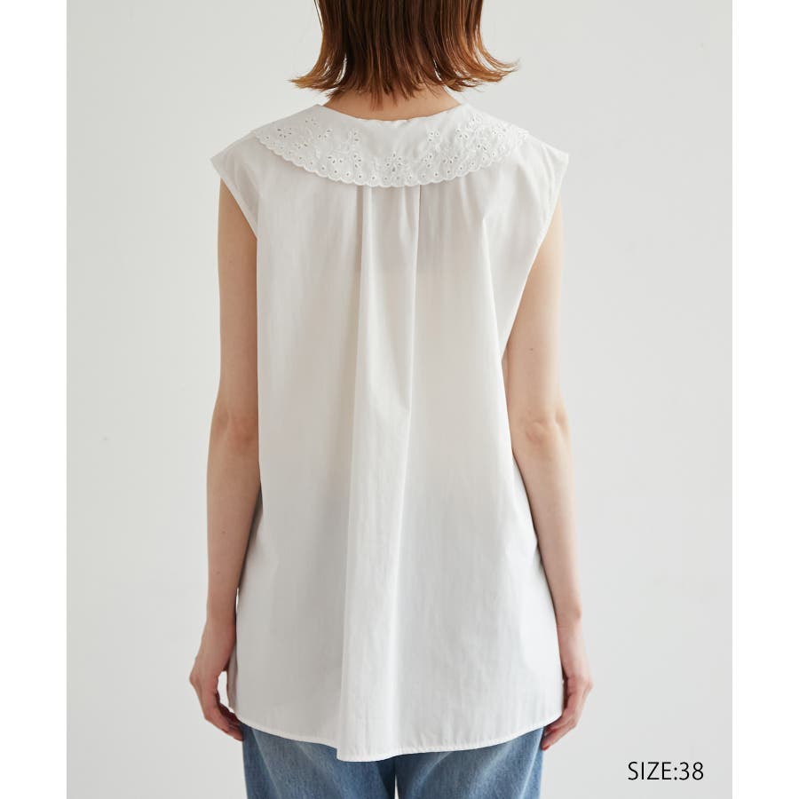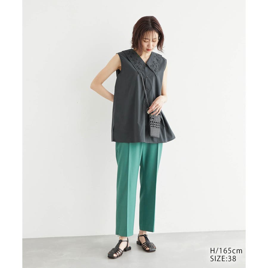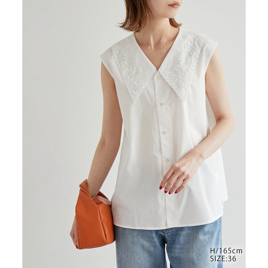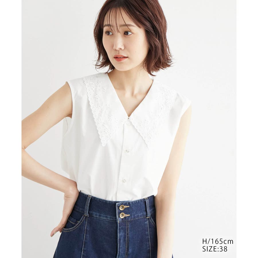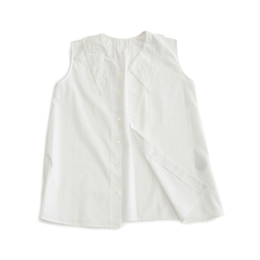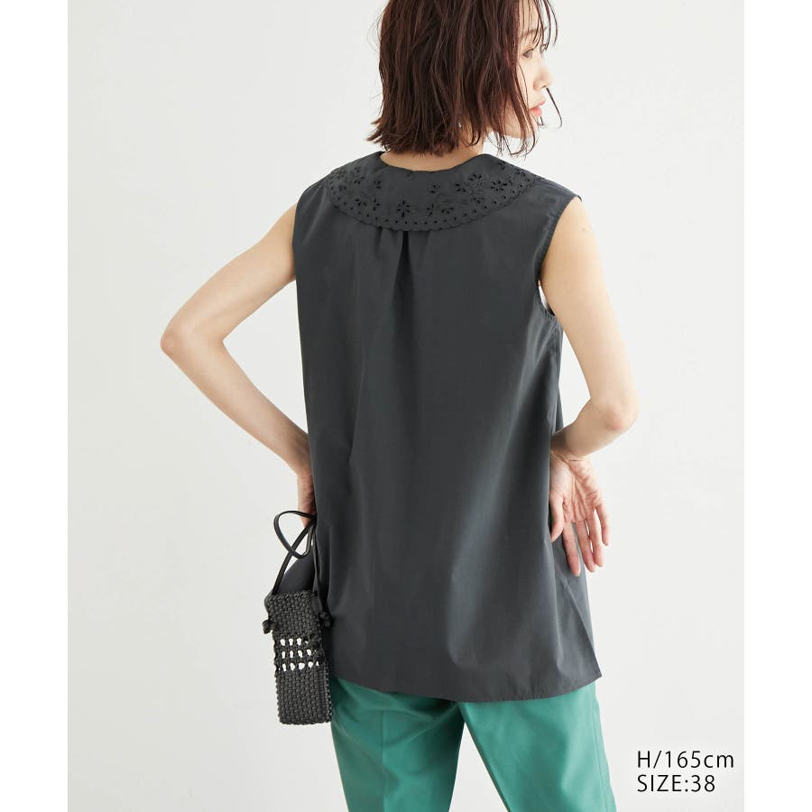【素材感】 ・綿タッチのポリエステル素材を使用。 【デザイン・シルエット】 ・シャープな大襟に刺繍デザインを施したノースリーブブラウス。 ・裾に向かってやや広がりを持たせたシルエット。 【カラー】 ・スミクロ、オフホワイトのベーシックな2色展開。 【スタイリングポイント】 ・ジャストウエストで穿くフレアスカートにインして、クラシカルなスタイリングに。 ・チュニック丈(38サイズ)はパンツ合わせ、短めの着丈(36サイズ)はスカートと好バランス。 ・同シリーズでKIDS(品番:GRH22000)も展開しているので親子お揃いもおすすめ。 ----------------------------- 裏地:なし 透け感:(05)はなし、(10)はあり 伸縮性:なし 生地感・厚さ:や薄手 その他仕様:ボタン全て開きます 季節:夏 ----------------------------- ※撮影時の光、お使いのモニター環境によって色の見え方が違う場合がございます。 ※モデル身長:165cm 着用サイズ:38 ※KIDSは一部店舗限定になります。 ※サイズによってボタンの数が異なります。 36サイズ:5個 38サイズ:6個