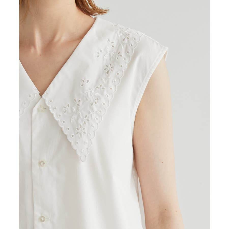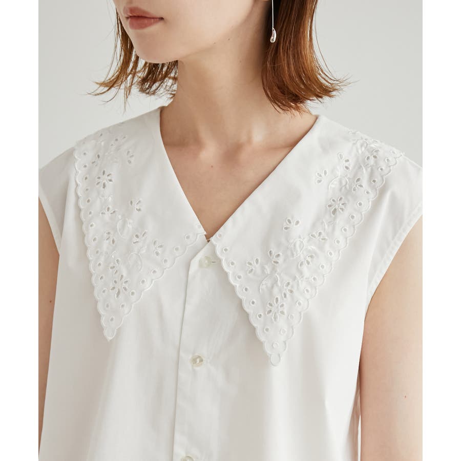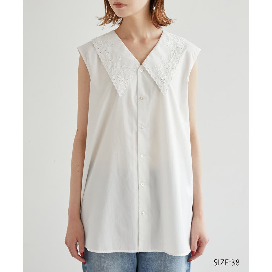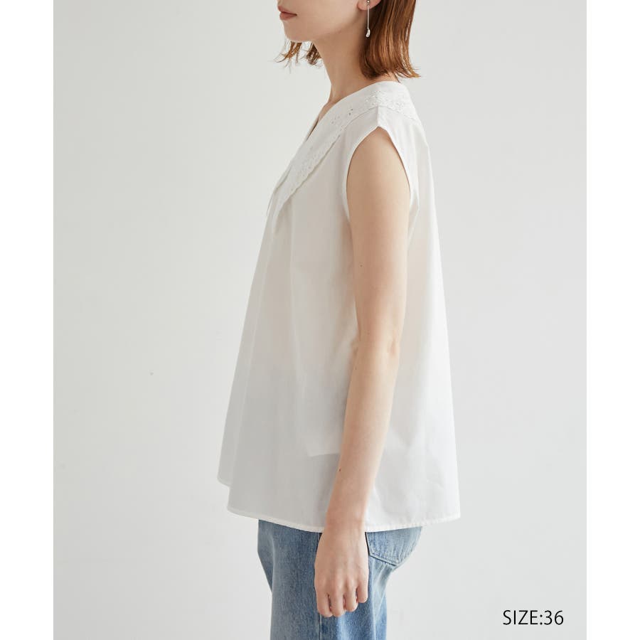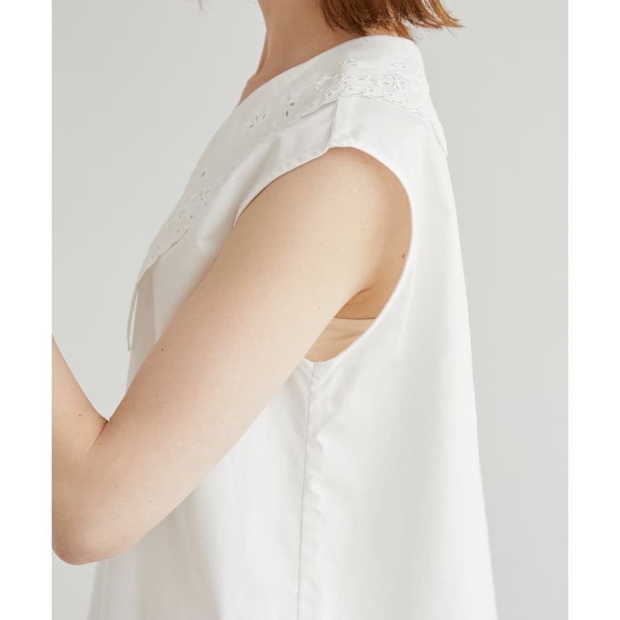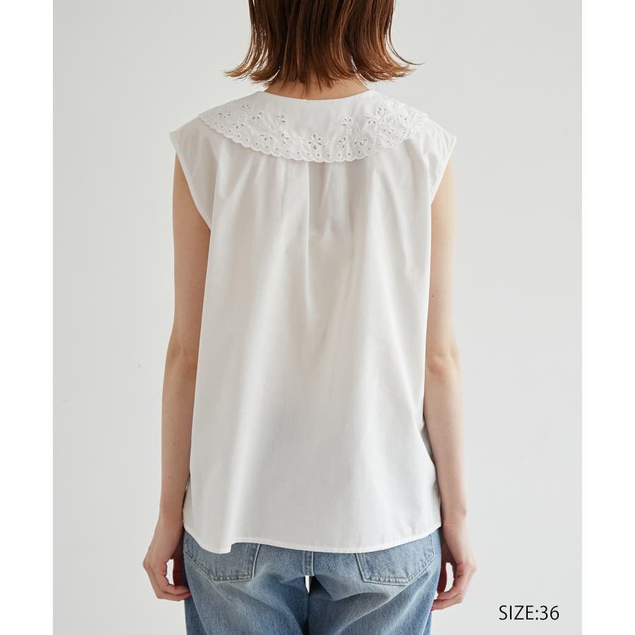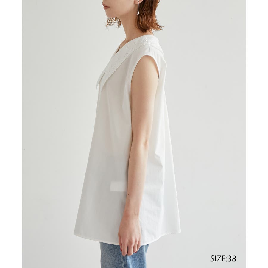 【素材感】 ・綿タッチのポリエステル素材を使用。 【デザイン・シルエット】 ・シャープな大襟に刺繍デザインを施したノースリーブブラウス。 ・裾に向かってやや広がりを持たせたシルエット。 【カラー】 ・スミクロ、オフホワイトのベーシックな2色展開。 【スタイリングポイント】 ・ジャストウエストで穿くフレアスカートにインして、クラシカルなスタイリングに。 ・チュニック丈(38サイズ)はパンツ合わせ、短めの着丈(36サイズ)はスカートと好バランス。 ・同シリーズでKIDS(品番:GRH22000)も展開しているので親子お揃いもおすすめ。 ----------------------------- 裏地:なし 透け感:(05)はなし、(10)はあり 伸縮性:なし 生地感・厚さ:や薄手 その他仕様:ボタン全て開きます 季節:夏 ----------------------------- ※撮影時の光、お使いのモニター環境によって色の見え方が違う場合がございます。 ※モデル身長:165cm 着用サイズ:38 ※KIDSは一部店舗限定になります。 ※サイズによってボタンの数が異なります。 36サイズ:5個 38サイズ:6個