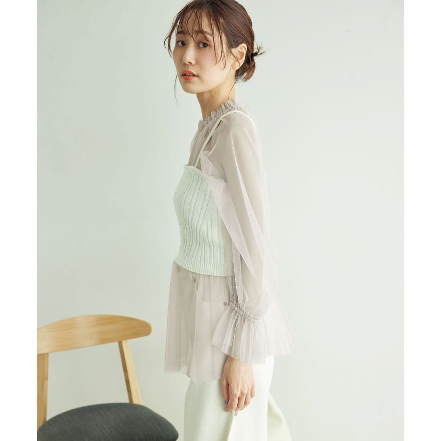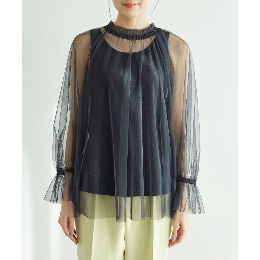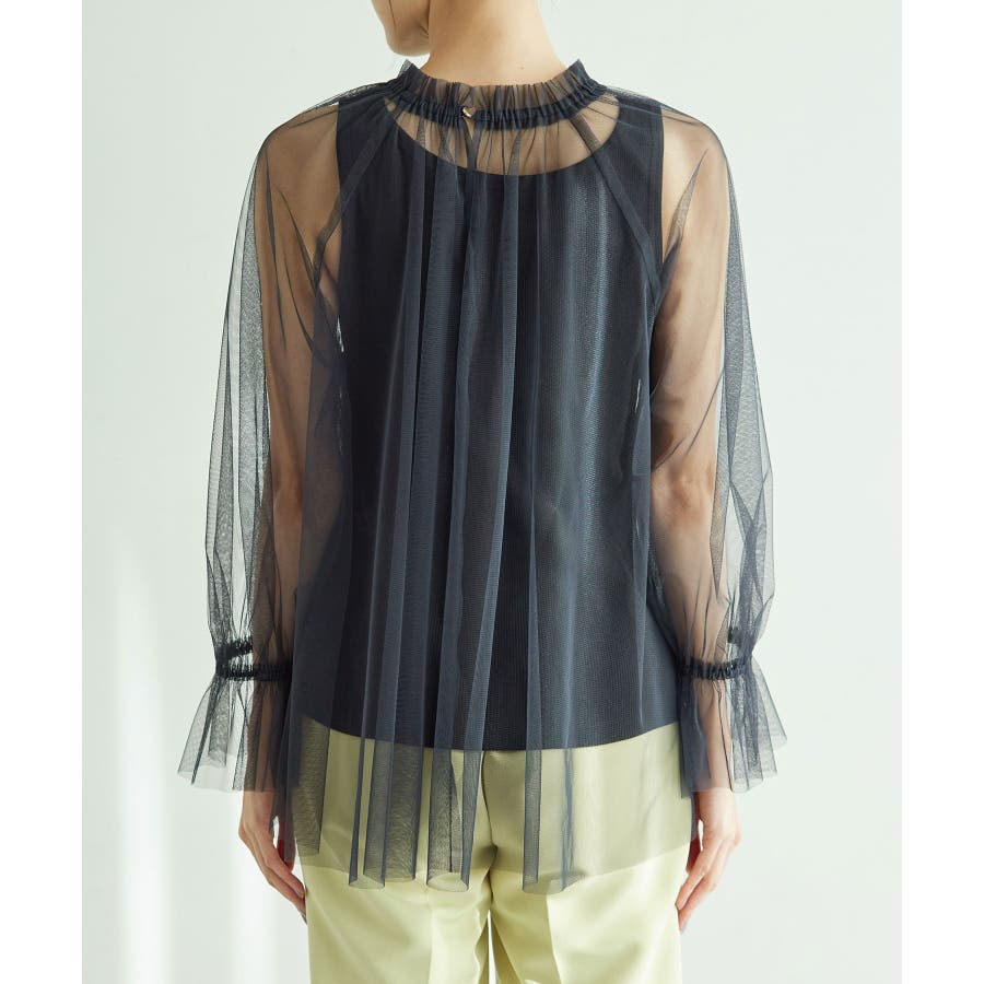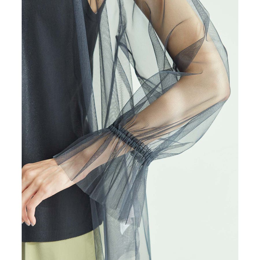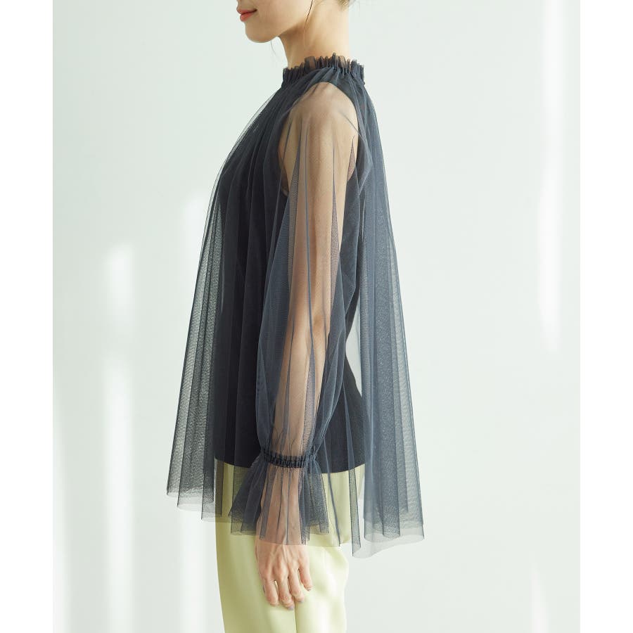【デザイン・シルエット】 ・スタンドネックやキャンディスリーブが高貴なイメージのチュールトップス。 ・肩のズレが無く、腕の動かしやすいラグランスリーブ切り替え。 ・身頃はボディを拾いにくいシルエット。 【カラー】 ・チャコール、ライトグレー、ホワイトの3色展開。 ・ライトグレー(08)はピンクがかったピンクグレーのような色味になります。 【スタイリングポイント】 ・ダメージジーンズでこなれ感を演出。 ・ハイウエストボトムにインして、きちんと感をだすのもおすすめ。 ----------------------------- 裏地:なし 透け感:あり 伸縮性:なし 生地感・厚さ:薄手 季節:通年 ----------------------------- ※撮影時の光、お使いのモニター環境によって色の見え方が違う場合がございます。 ※モデル身長:165cm 着用サイズ:38