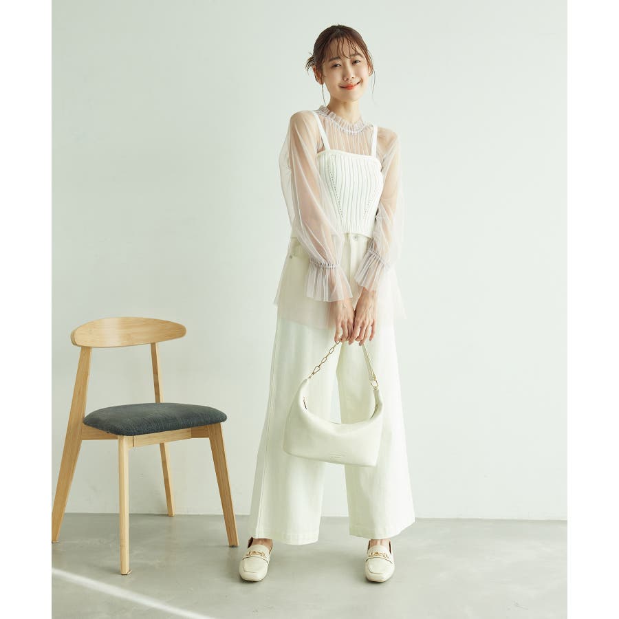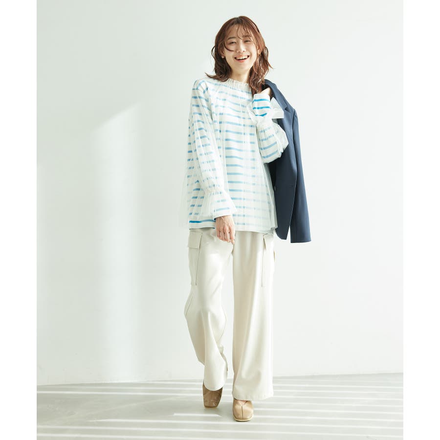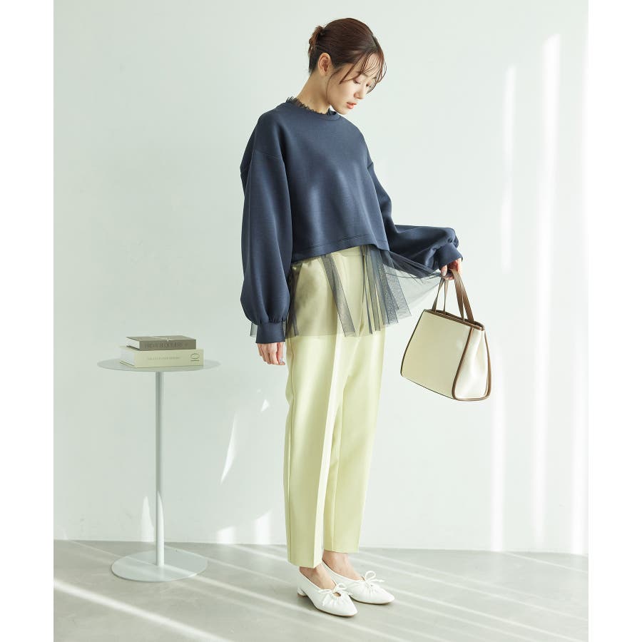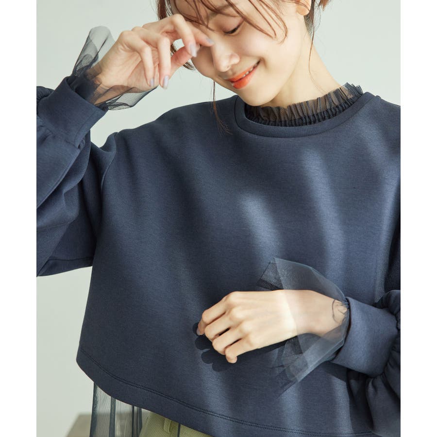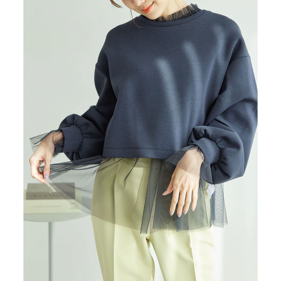 【デザイン・シルエット】 ・スタンドネックやキャンディスリーブが高貴なイメージのチュールトップス。 ・肩のズレが無く、腕の動かしやすいラグランスリーブ切り替え。 ・身頃はボディを拾いにくいシルエット。 【カラー】 ・チャコール、ライトグレー、ホワイトの3色展開。 ・ライトグレー(08)はピンクがかったピンクグレーのような色味になります。 【スタイリングポイント】 ・ダメージジーンズでこなれ感を演出。 ・ハイウエストボトムにインして、きちんと感をだすのもおすすめ。 ----------------------------- 裏地:なし 透け感:あり 伸縮性:なし 生地感・厚さ:薄手 季節:通年 ----------------------------- ※撮影時の光、お使いのモニター環境によって色の見え方が違う場合がございます。 ※モデル身長:165cm 着用サイズ:38