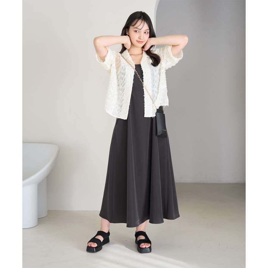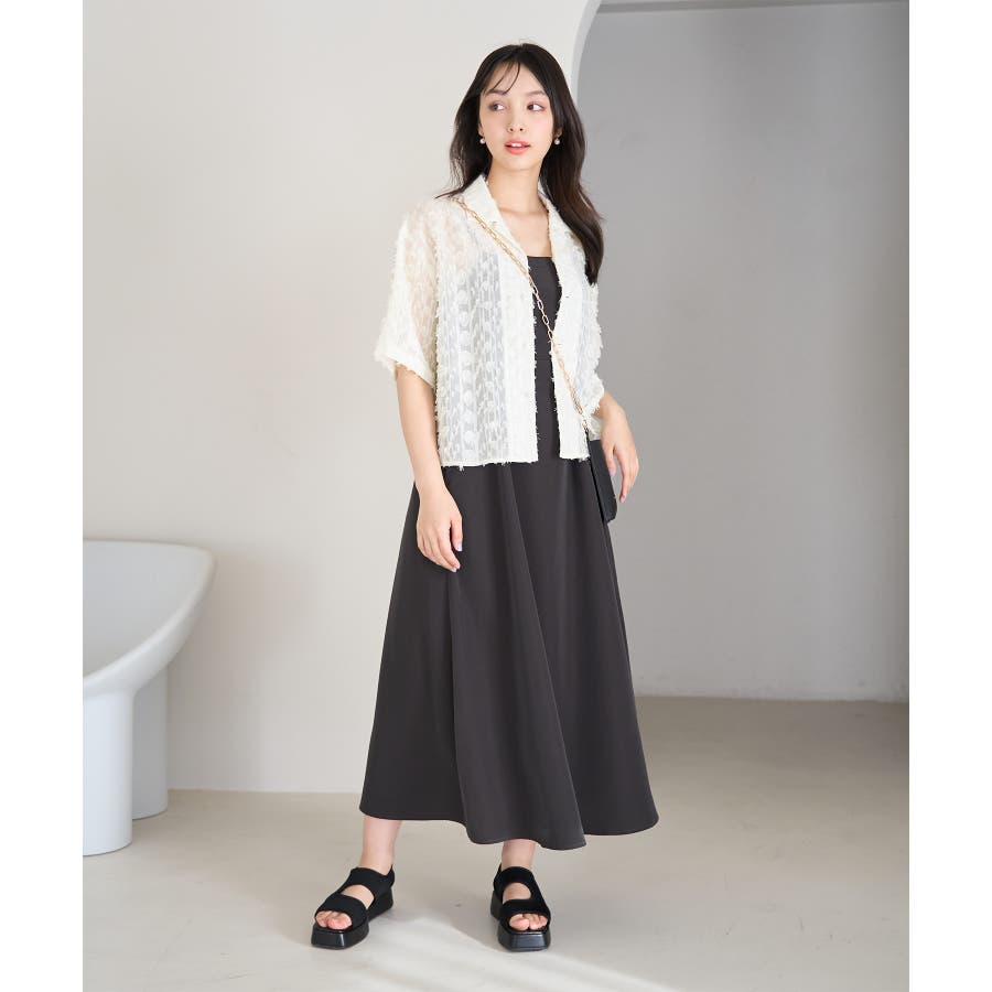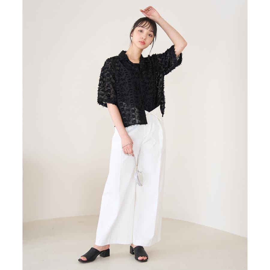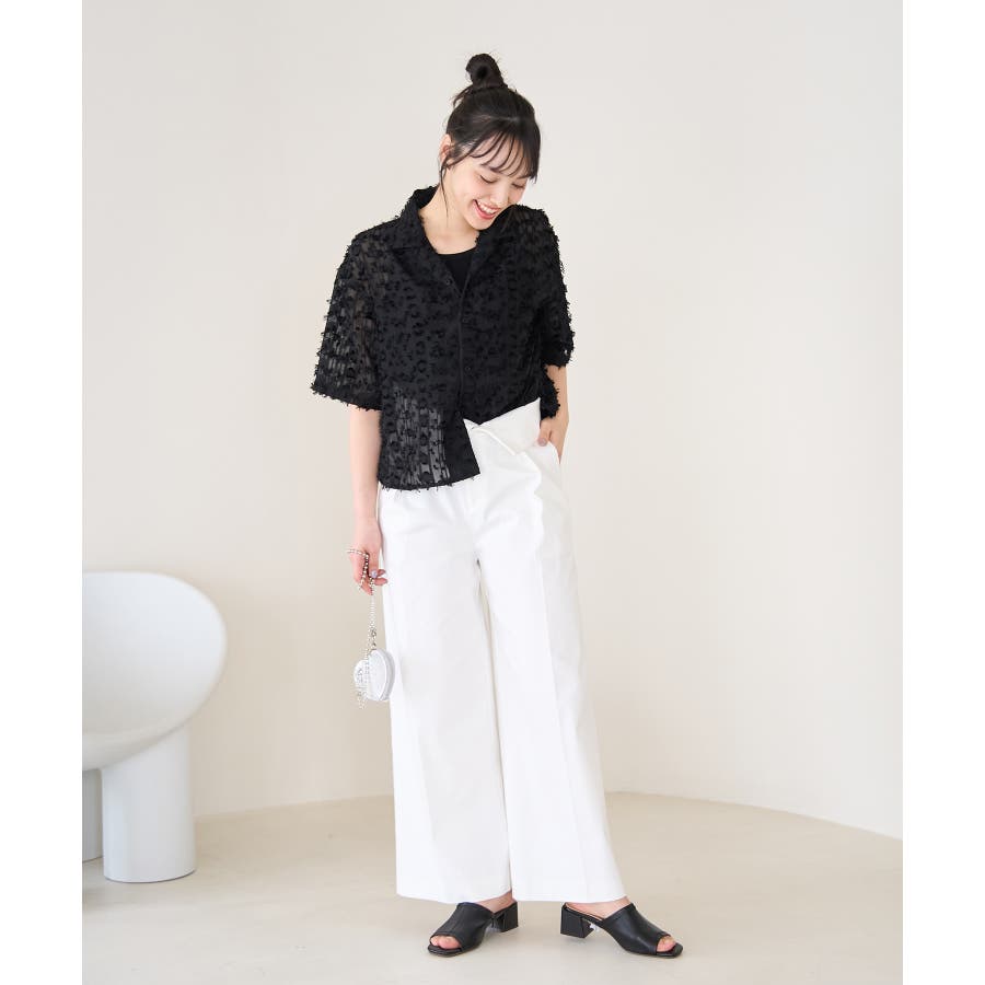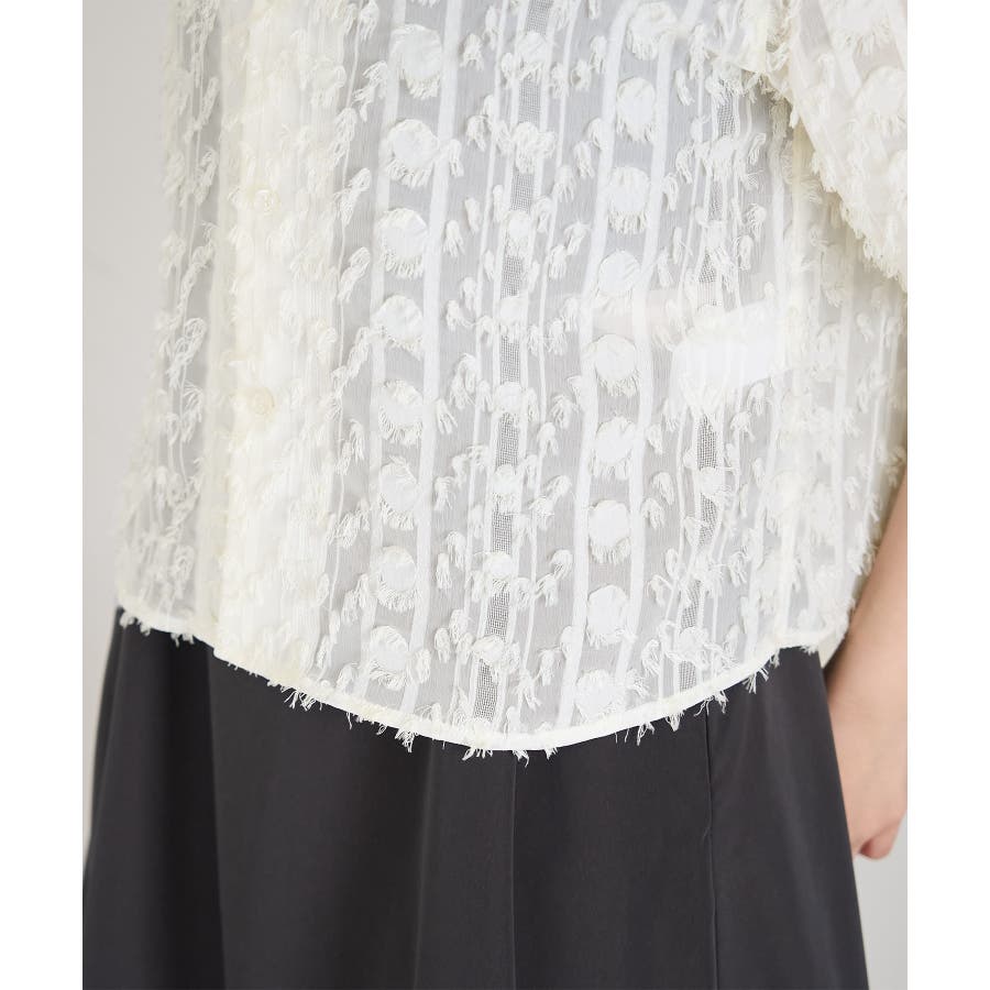 【デザイン・シルエット】 ・ラフなフリンジデザインがポイントのジャカードシャツ。 ・レトロシックなオープンカラーを採用。 ・肘ほどまでの5分袖。 ・身頃を拾わないボックスシルエット。 【カラー】 ・ブラック、アイボリーのモノトーンカラー2色展開。 【スタイリングポイント】 ・ショートパンツに合わせてリラクシーなスタイルに。 ・カットソーやワンピースなどの羽織にしてもOK。 ----------------------------- 裏地:なし 透け感:あり 伸縮性:なし 生地感・厚さ:やや薄手 ポケット:なし ボタン:全て開閉可能 季節:春・夏 ----------------------------- ※撮影時の光、お使いのモニター環境によって色の見え方が違う場合がございます。 ※モデル身長:165cm 着用サイズ:38