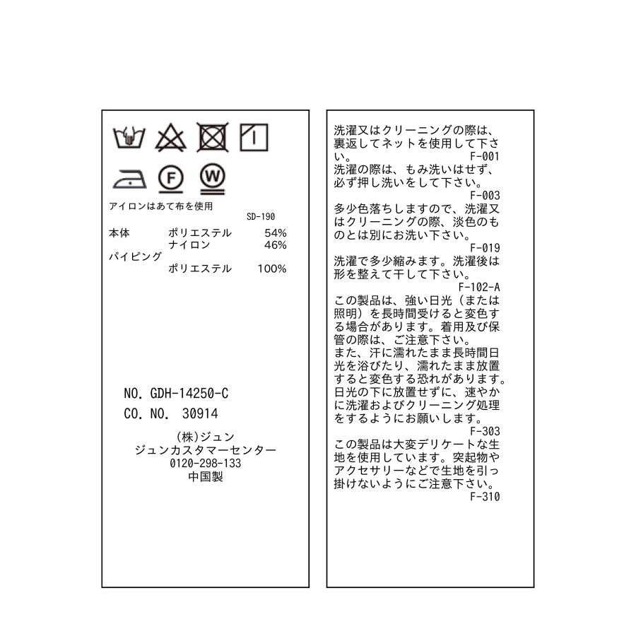 | 素材 | オフホワイト(15):(本体) ポリエステル 54% ナイロン 46% (パイピング) ポリエステル 100%|ラベンダー(52):(本体) ポリエステル 54% ナイロン 46% (パイピング) ポリエステル 100% |