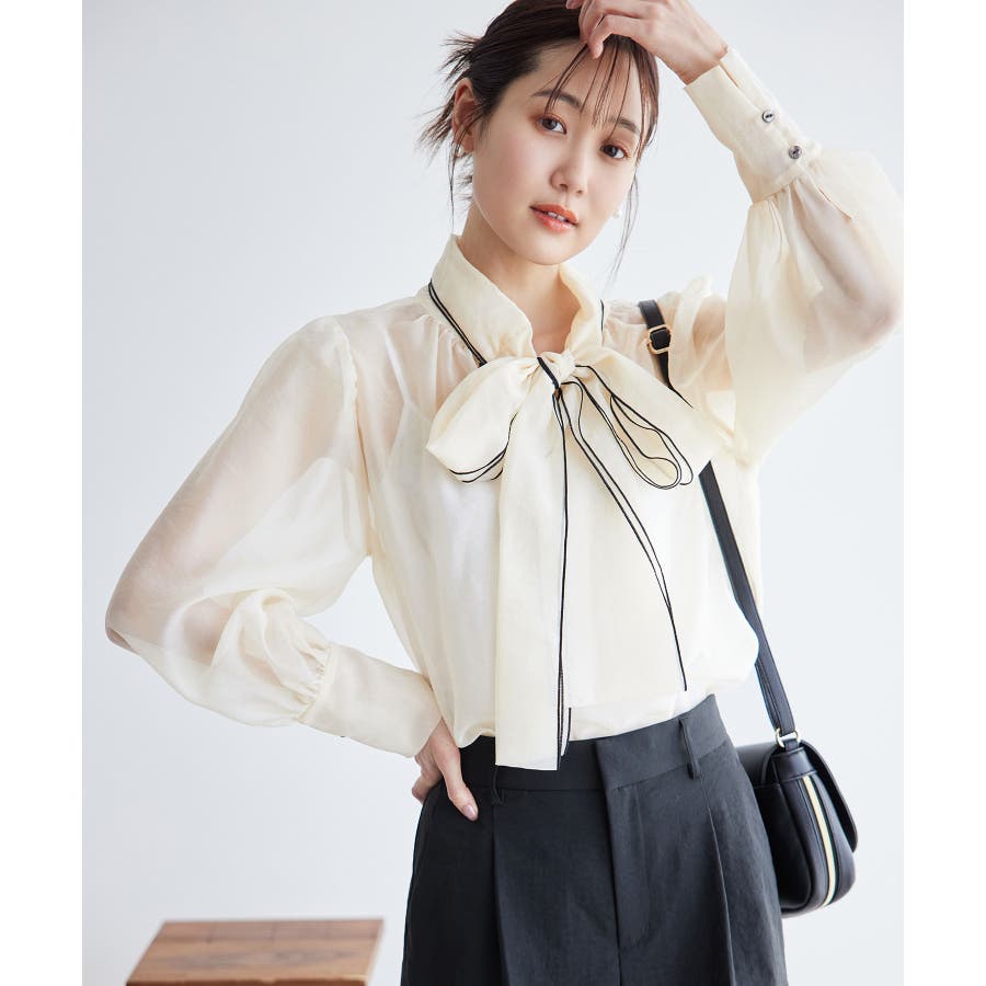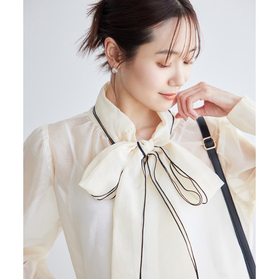 2WAY/配色リボンブラウス