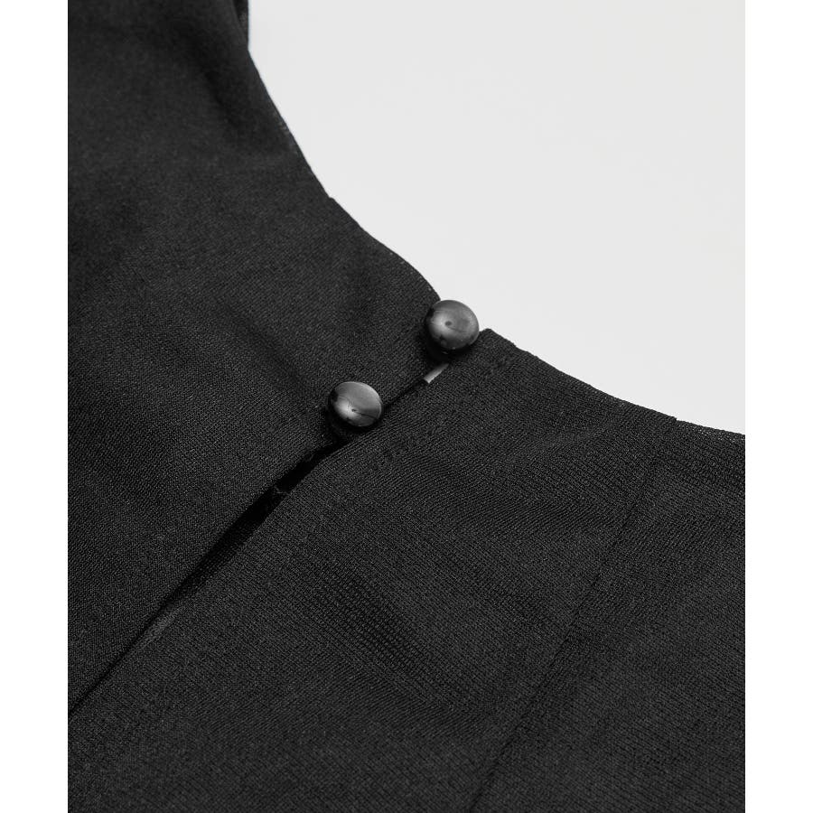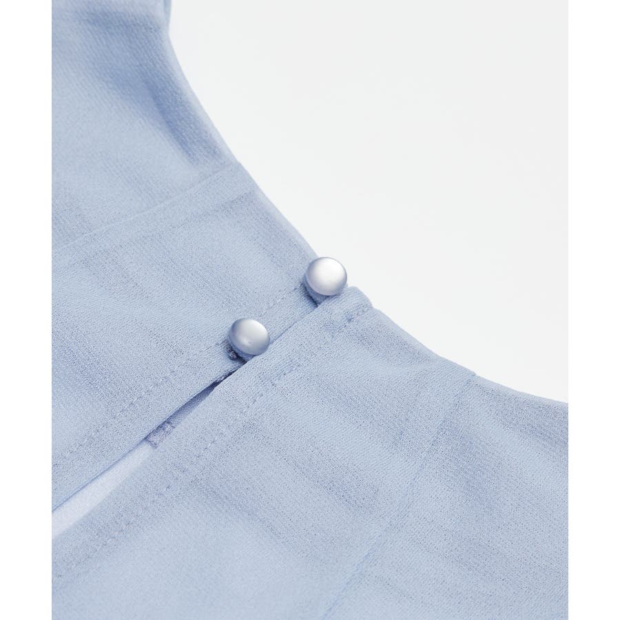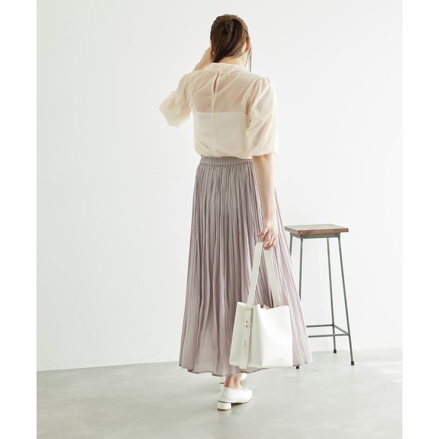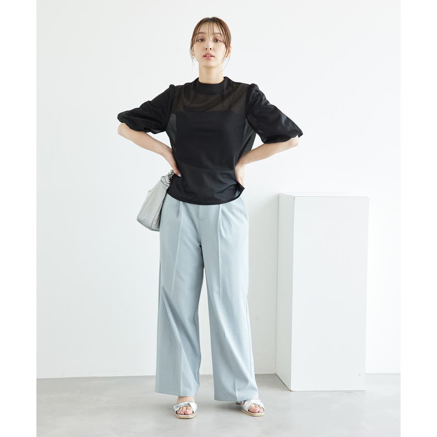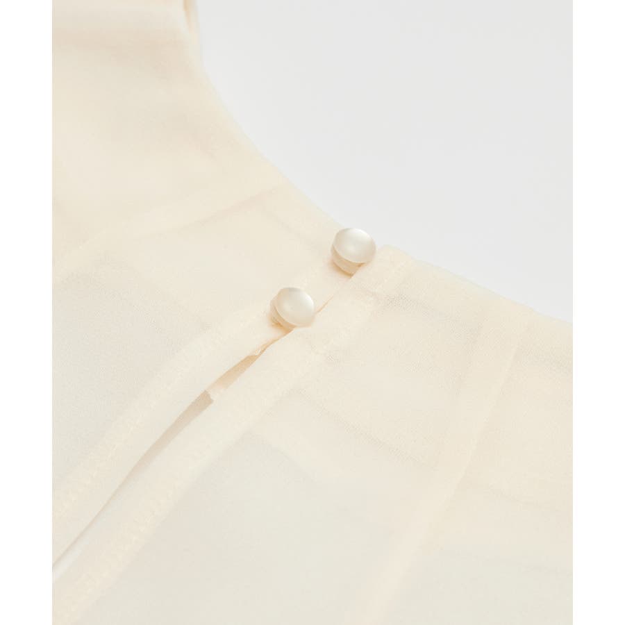 【素材感】 ・日本の繊細な素材を使用した、シアーブラウス。 ・やや光沢感のある上品な素材。 【デザイン・シルエット】 ・タックを入れた特徴的なボトルネックや、エレガントなボリュームスリーブがポイントのデザイン。 ・身頃はすっきりとシンプルにフィニッシュ。 【カラー】 ・ブラック、オフホワイト、サックスブルーの3色展開。 【スタイリングポイント】 ・キャミソールを重ねて大人なレイヤードコーデを楽しんで。 ・きれいめなテーパードパンツやアイラインスカートに合わせてお仕事やお出かけ着に。 ・総柄のスカートを合わせて華やかにするのも素敵。 ----------------------------- 裏地:なし 透け感:あり 伸縮性:なし 生地感・厚さ:やや薄手 ボタン:後ろボタン開閉可能 季節:春・夏 ----------------------------- ※撮影時の光、お使いのモニター環境によって色の見え方が違う場合がございます。 ※モデル身長:163cm 着用サイズ:38