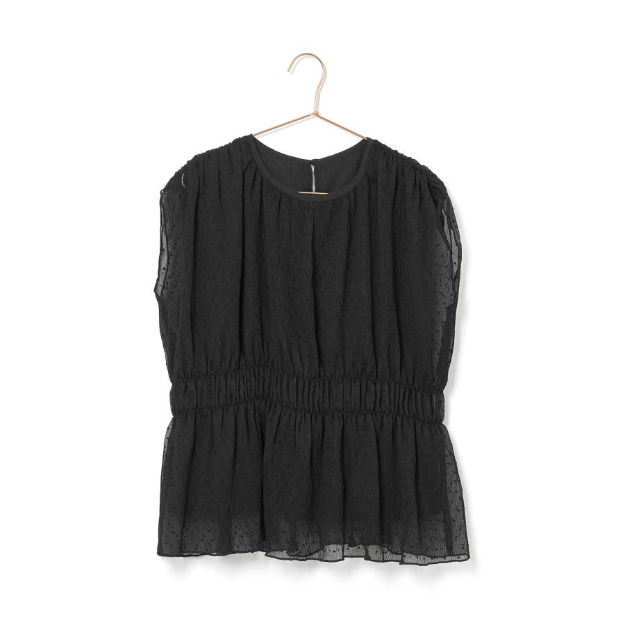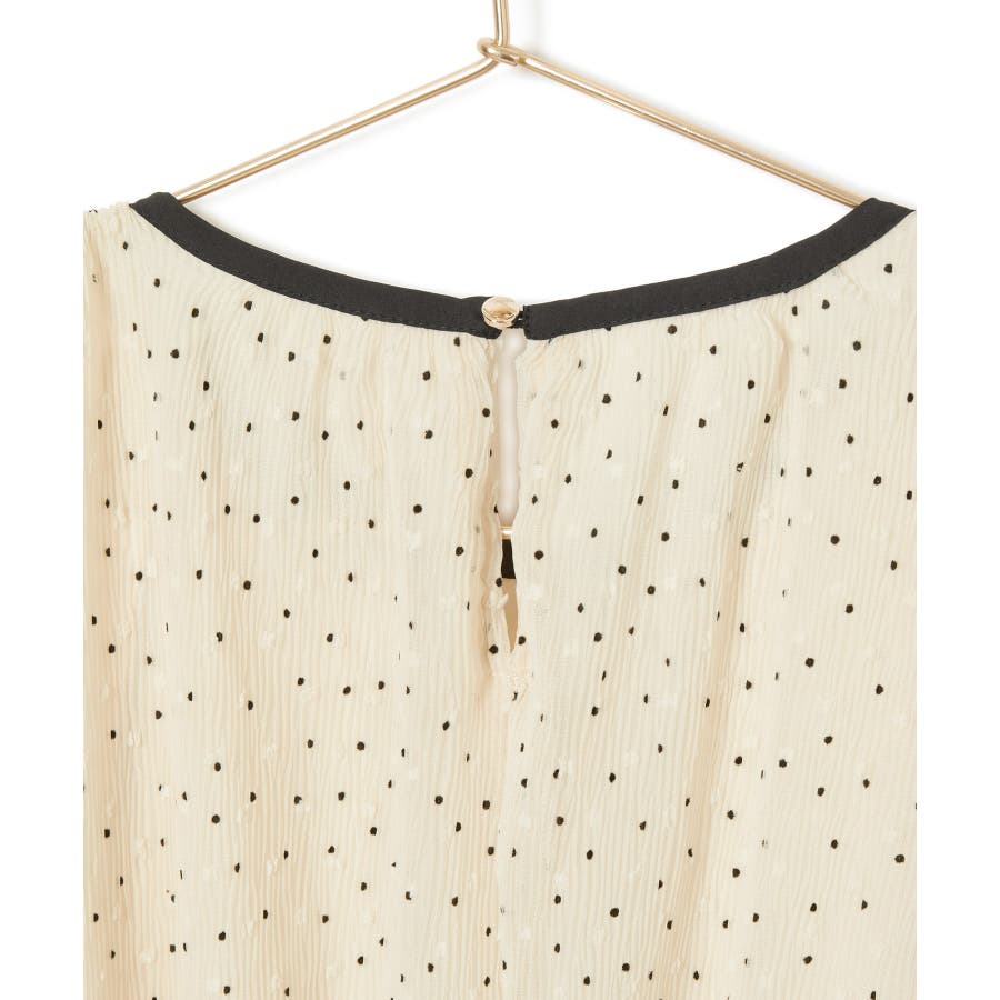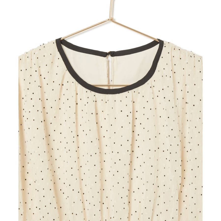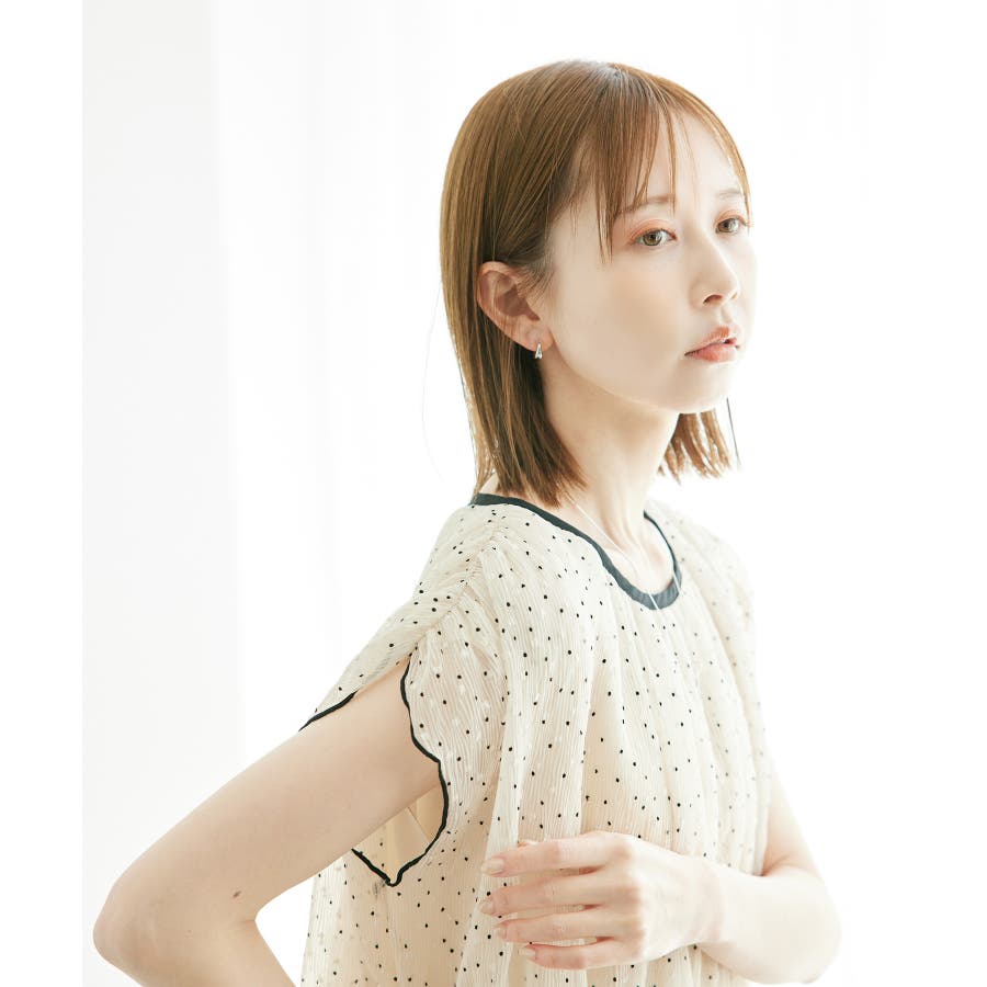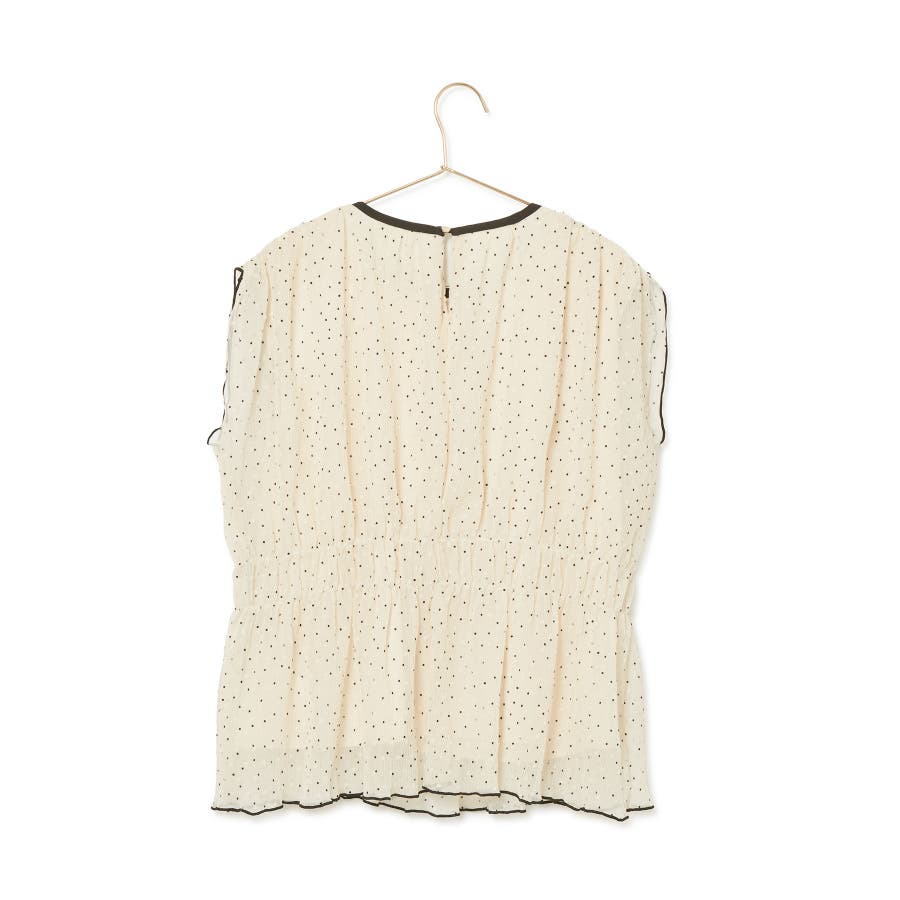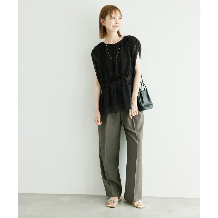 【素材感】 ・楊柳調の素材にジャガードとフロッキードットを施したアイテム。 【デザイン・シルエット】 ・ハイウエスト位置でギュッとギャザーを入れた、プルオーバー型のシャーリングブラウス。 ・着丈がやや長めのチュニックタイプ。 ・肩のラインが自然なフレンチスリーブデザイン。 【カラー】 ・ブラック、ホワイトのモノトーン2色展開。 【スタイリングポイント】 ・フレアジーンズやニットパンツに合わせて、70年代のヒッピーな着こなしに。 ・シンプルなスティックパンツにIラインスカートで、きれいめなお出かけ着にも。 ----------------------------- 裏地:あり 透け感:裏地がない部分はややあり 伸縮性:なし 生地感・厚さ:やや薄手 ボタン:開閉可能 ウエスト:シャーリング 季節:夏 ----------------------------- ※撮影時の光、お使いのモニター環境によって色の見え方が違う場合がございます。 ※モデル身長:165cm 着用サイズ:38