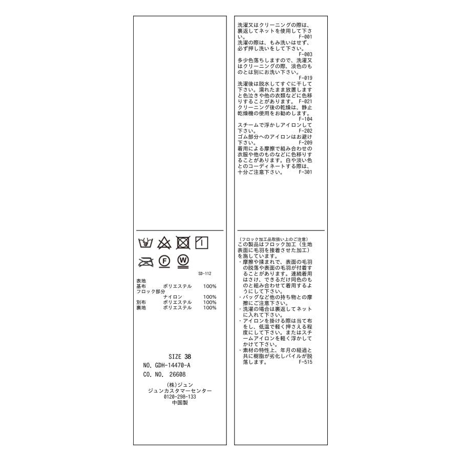 素材 | ブラック(01):(表地) (基布) ポリエステル 100% (フロック部分) ナイロン 100% (別布) ポリエステル 100% (裏地) ポリエステル 100%|ホワイト系(11):(表地) (基布) ポリエステル 100% (フロック部分) ナイロン 100% (別布) ポリエステル 100% (裏地) ポリエステル 100% |
