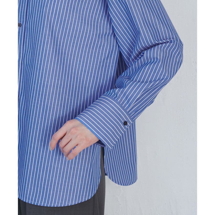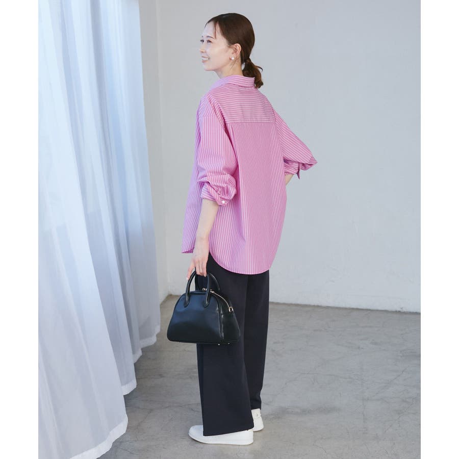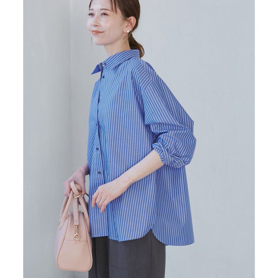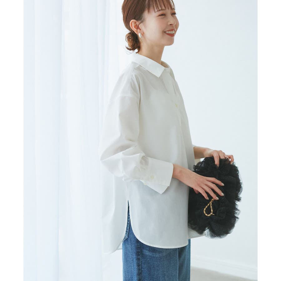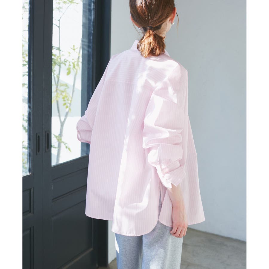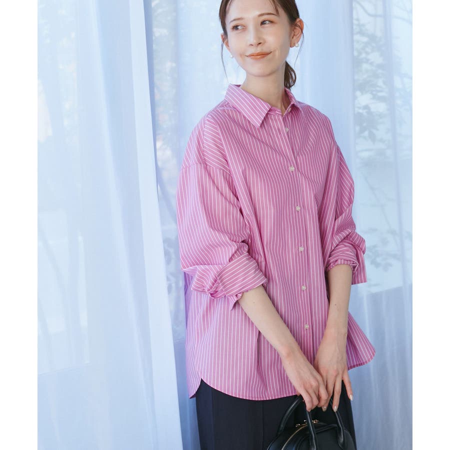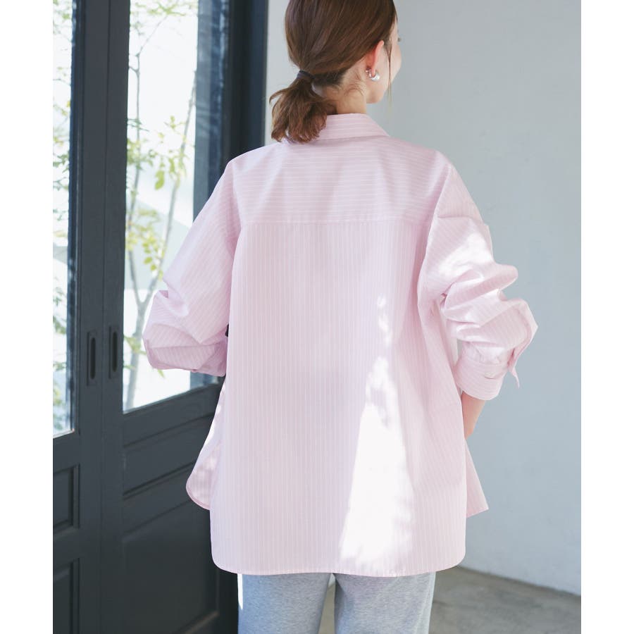 【素材感】 ・花粉が付着しにくく、落としやすい素材。 ・変形後の回復性に優れたシワになりにくい素材。 【デザイン・シルエット】 ・ルーズフィットのメンズライクな長袖レギュラータイプ。 ・ドロップした方の切り替えや、ラウンドヘムでリラックス感を演出。 ・裾は前後差あり。 ・同シリーズでクロップドタイプ(品番:GDH15050)も展開。 【カラー】 ・カラーによって柄が異なります。 オフホワイト(15)ピンク(63):無地 ブルー(44)ローズピンク(64):ストライプ 【スタイリングポイント】 ・春は一枚着に、暖かくなったらTシャツやタンクトップの羽織にも活躍。 ・ハイウエストボトムにインすると、今っぽいシルエットバランスに。 ----------------------------- 裏地:なし 透け感:オフホワイト(15)はややあり 伸縮性:なし 生地感・厚さ:普通 季節:春・秋・冬(インナーとしても◎) ----------------------------- ※撮影時の光、お使いのモニター環境によって色の見え方が違う場合がございます。 ※モデル身長:165cm 着用サイズ:38