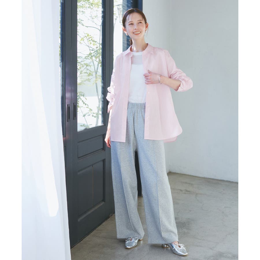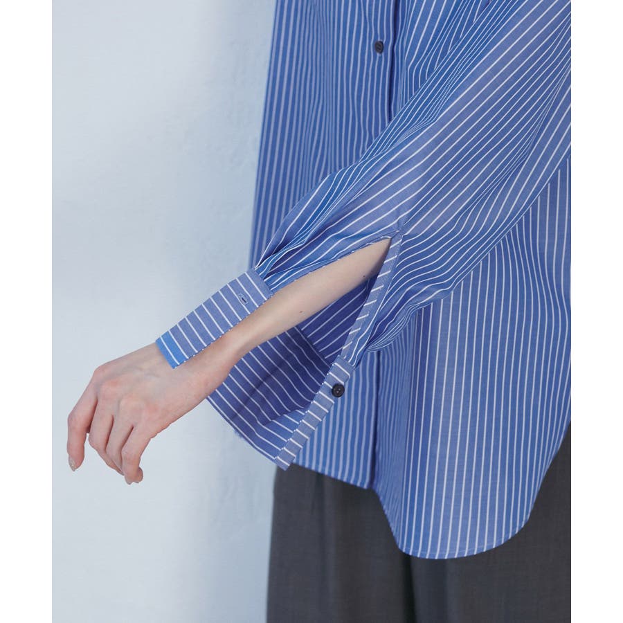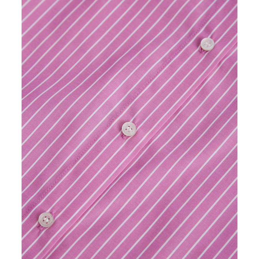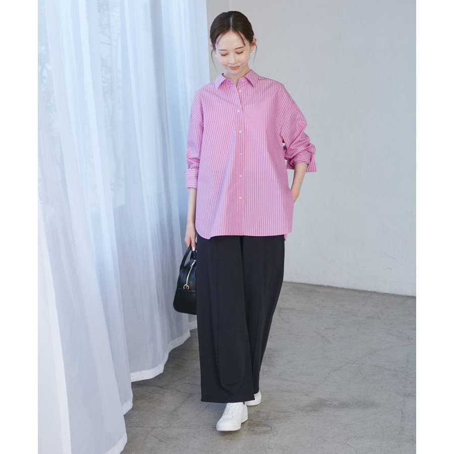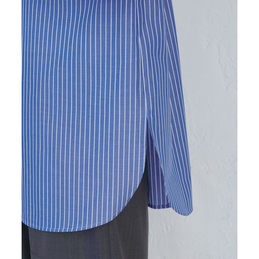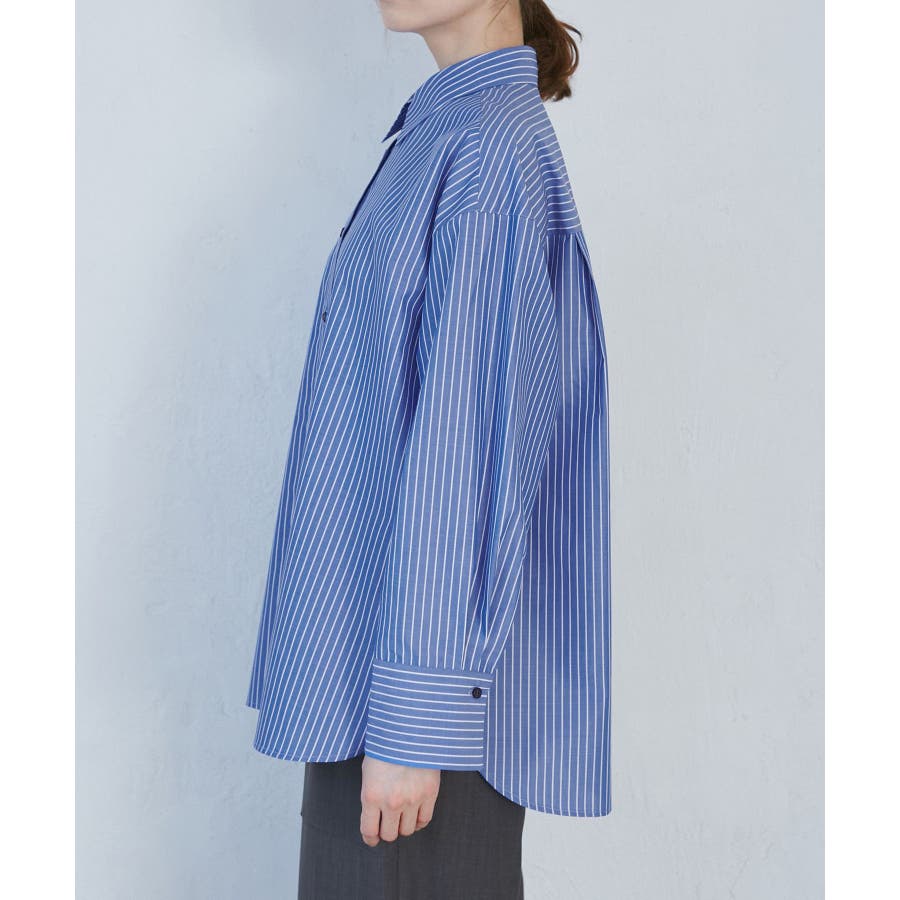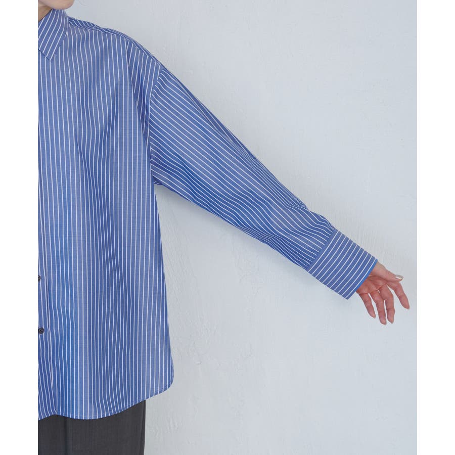 【素材感】 ・花粉が付着しにくく、落としやすい素材。 ・変形後の回復性に優れたシワになりにくい素材。 【デザイン・シルエット】 ・ルーズフィットのメンズライクな長袖レギュラータイプ。 ・ドロップした方の切り替えや、ラウンドヘムでリラックス感を演出。 ・裾は前後差あり。 ・同シリーズでクロップドタイプ(品番:GDH15050)も展開。 【カラー】 ・カラーによって柄が異なります。 オフホワイト(15)ピンク(63):無地 ブルー(44)ローズピンク(64):ストライプ 【スタイリングポイント】 ・春は一枚着に、暖かくなったらTシャツやタンクトップの羽織にも活躍。 ・ハイウエストボトムにインすると、今っぽいシルエットバランスに。 ----------------------------- 裏地:なし 透け感:オフホワイト(15)はややあり 伸縮性:なし 生地感・厚さ:普通 季節:春・秋・冬(インナーとしても◎) ----------------------------- ※撮影時の光、お使いのモニター環境によって色の見え方が違う場合がございます。 ※モデル身長:165cm 着用サイズ:38