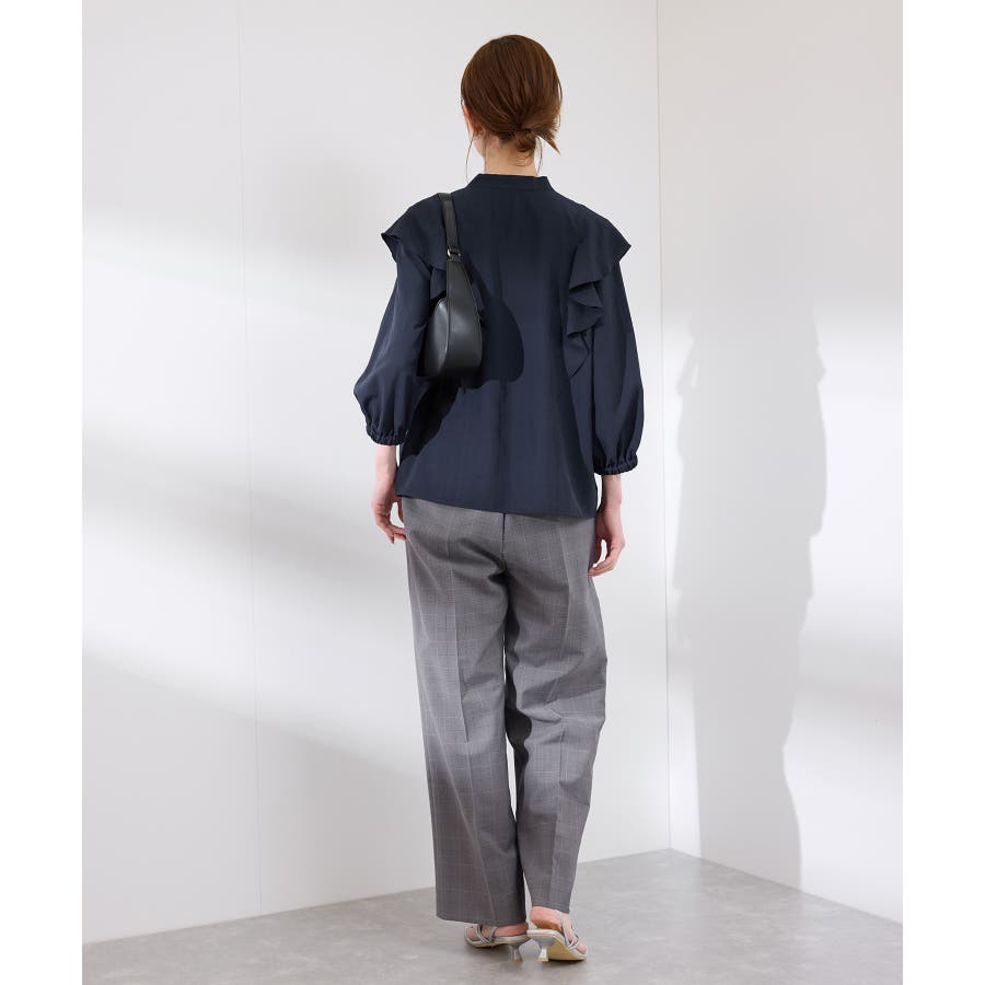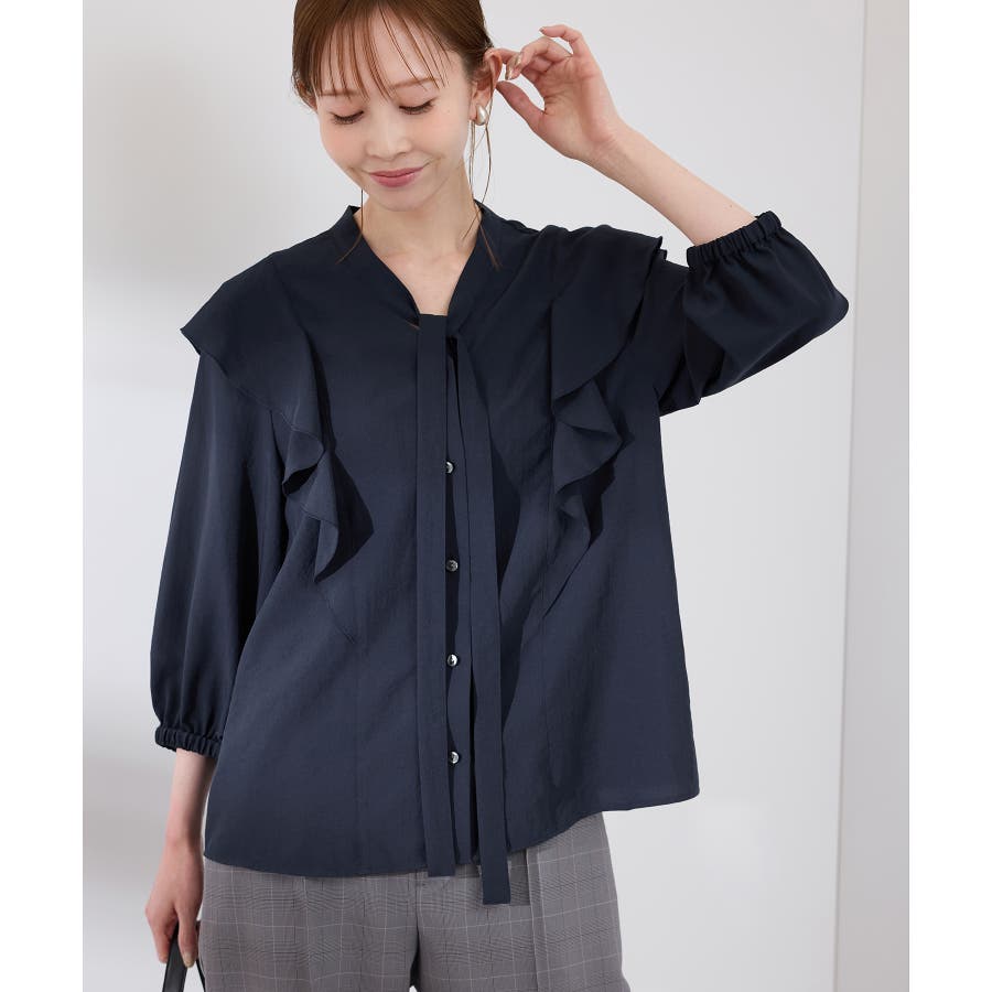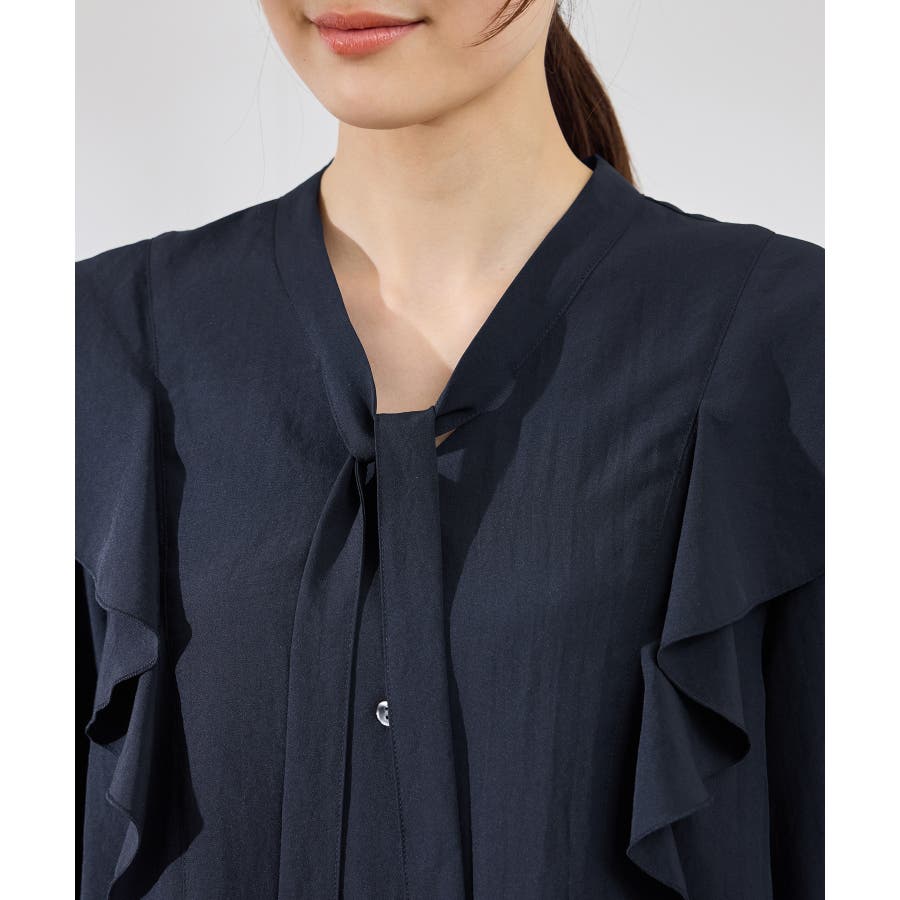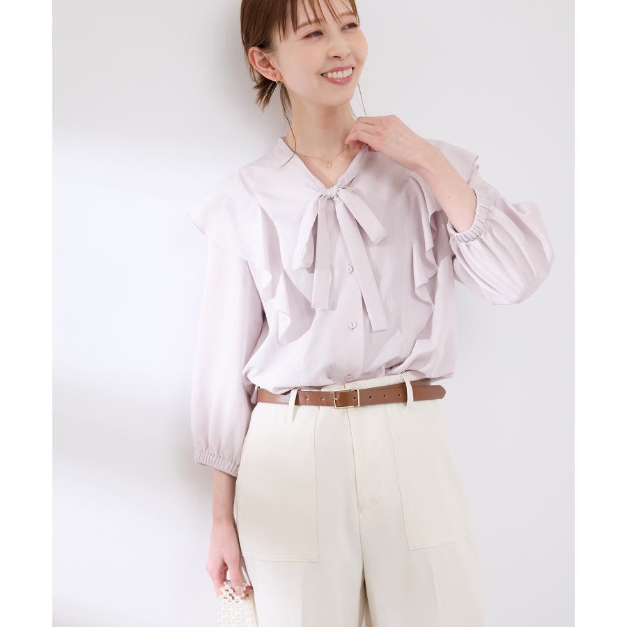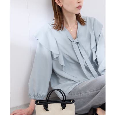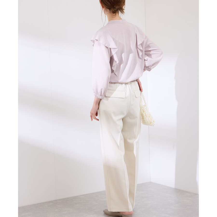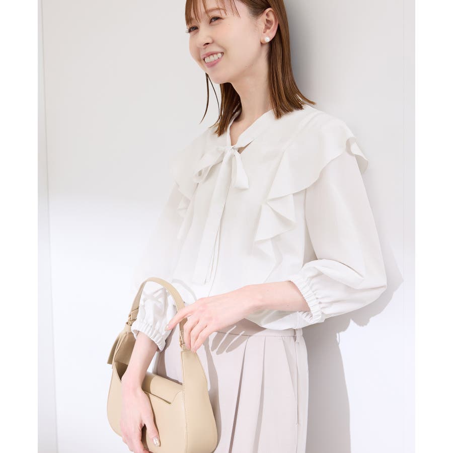 ・肩から身頃にかけてラッフルがあしらわれた華やぎブラウス。
