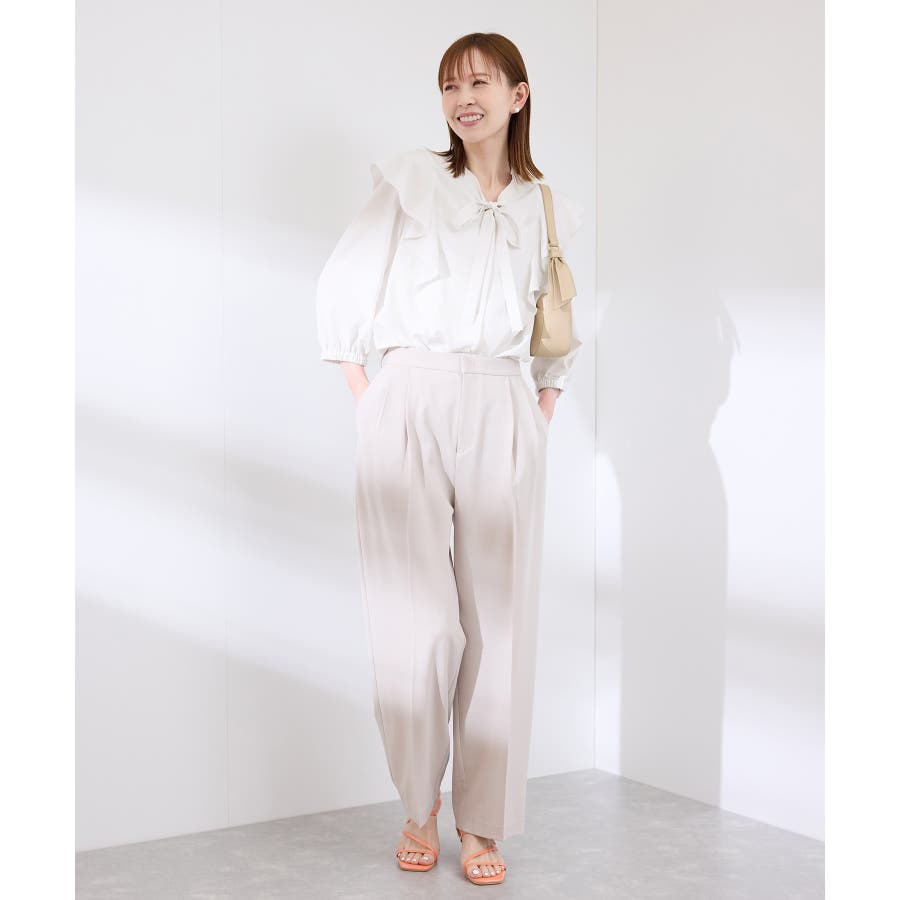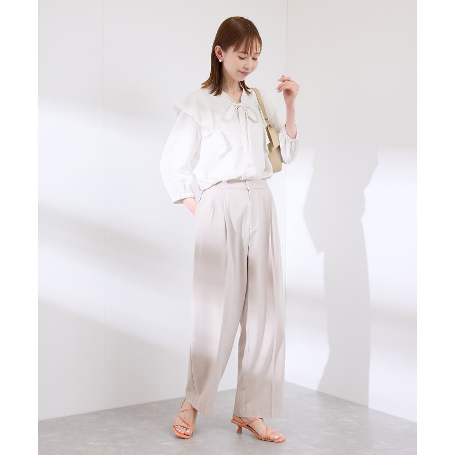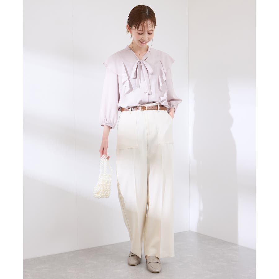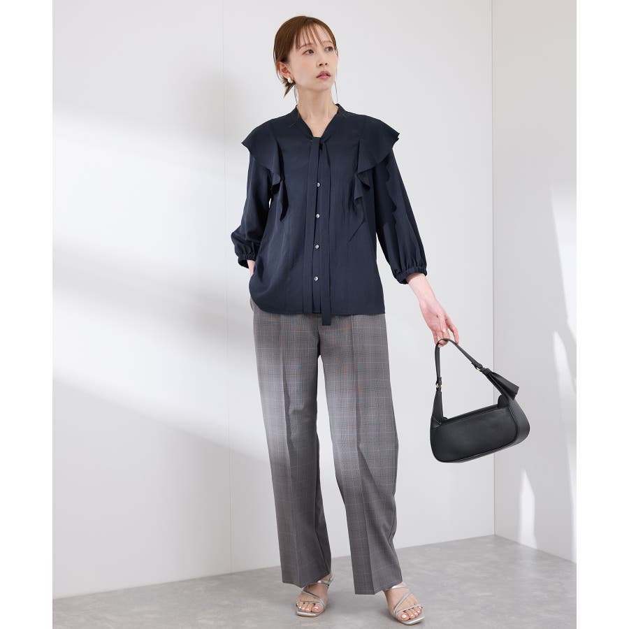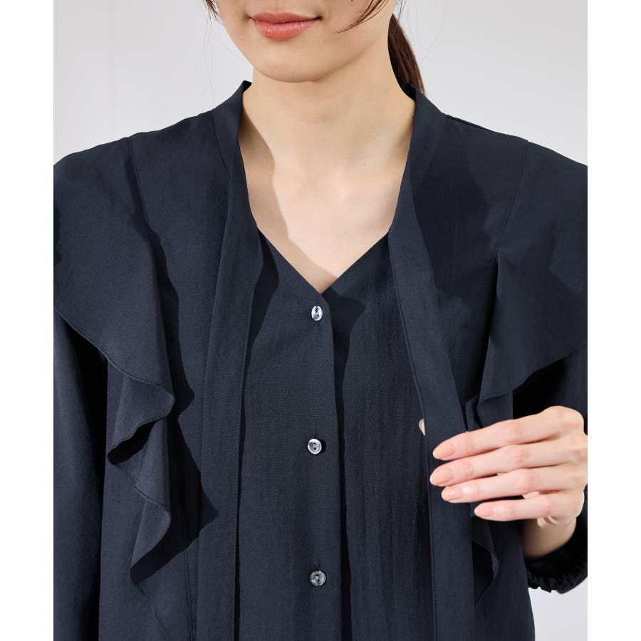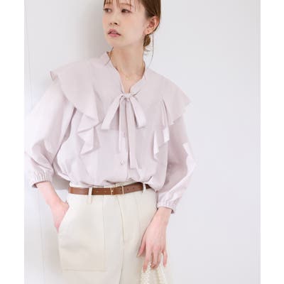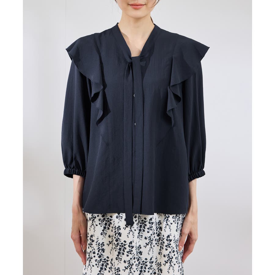 ・肩から身頃にかけてラッフルがあしらわれた華やぎブラウス。