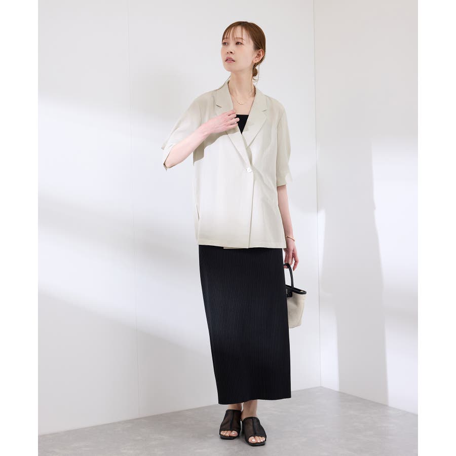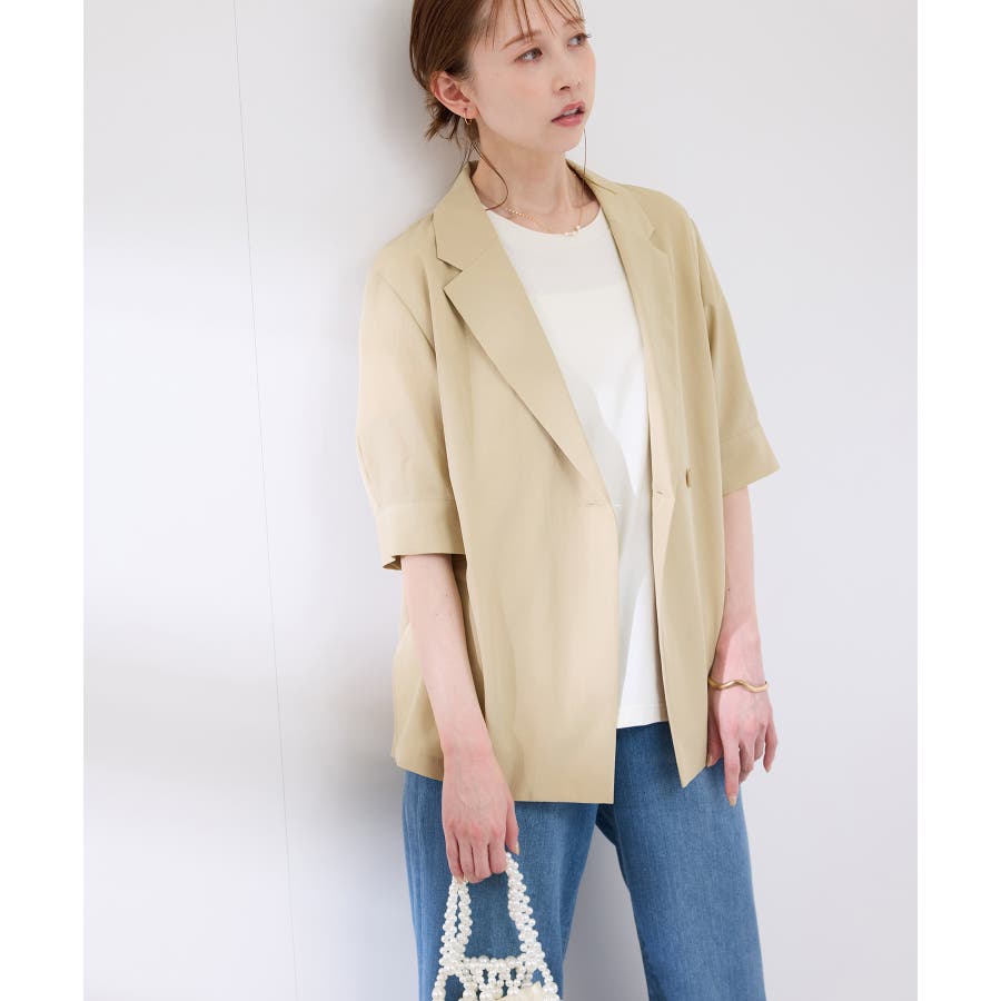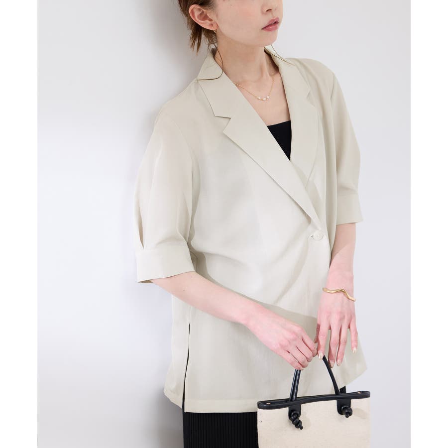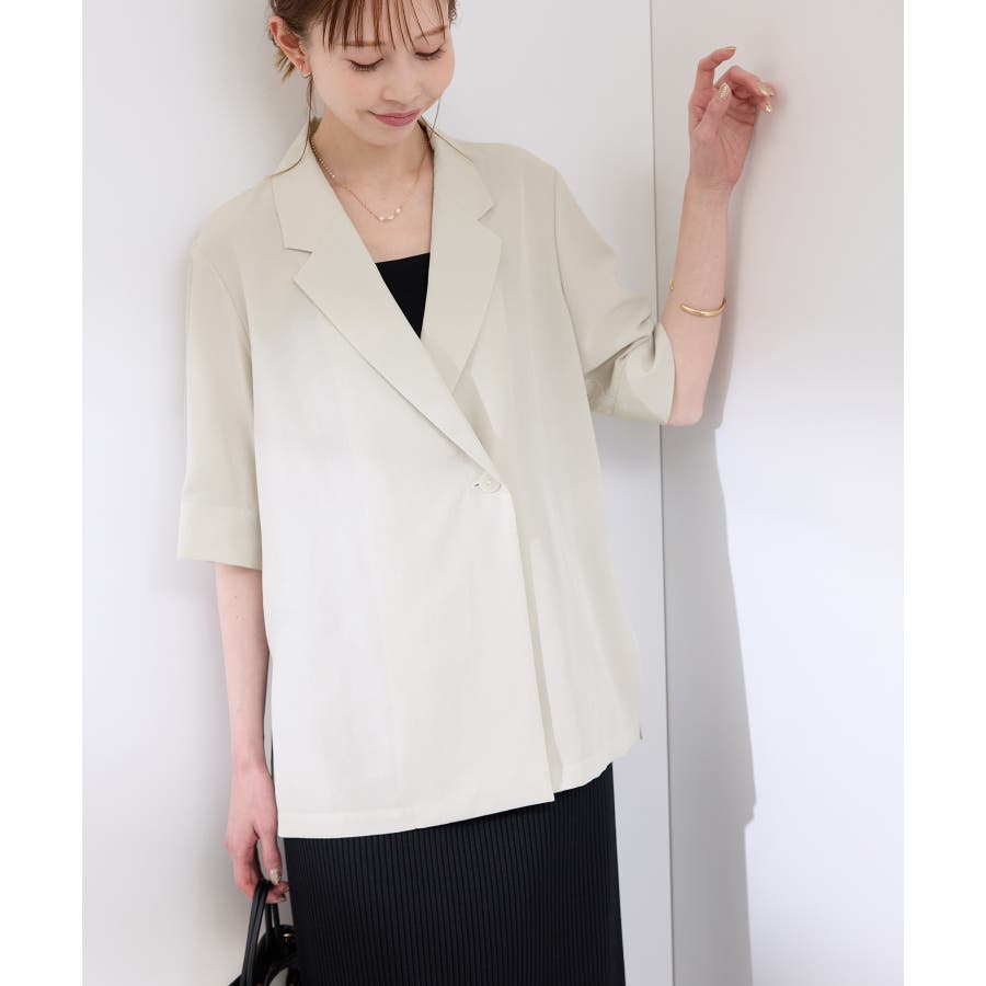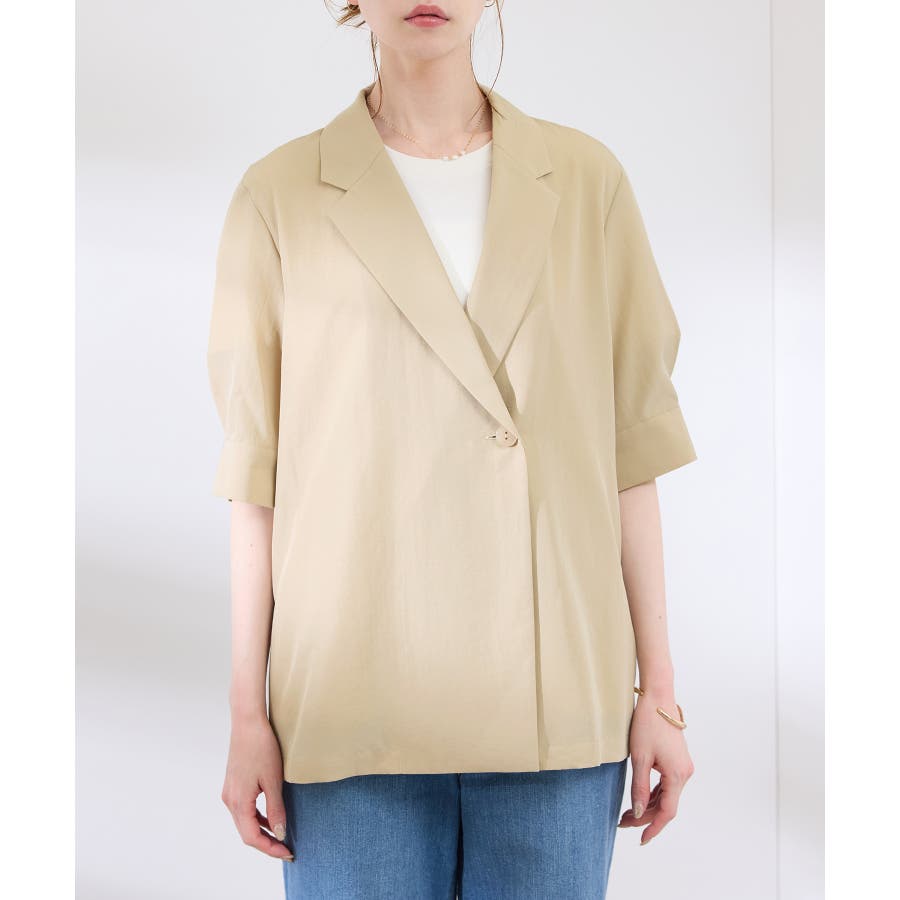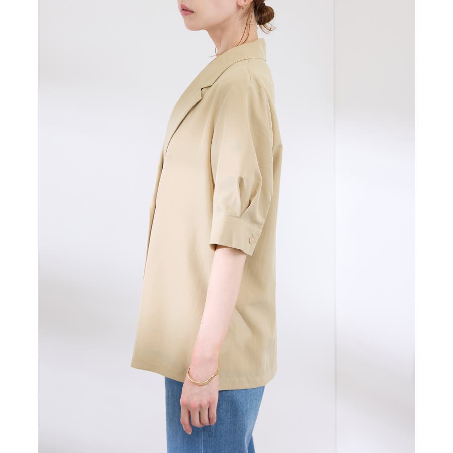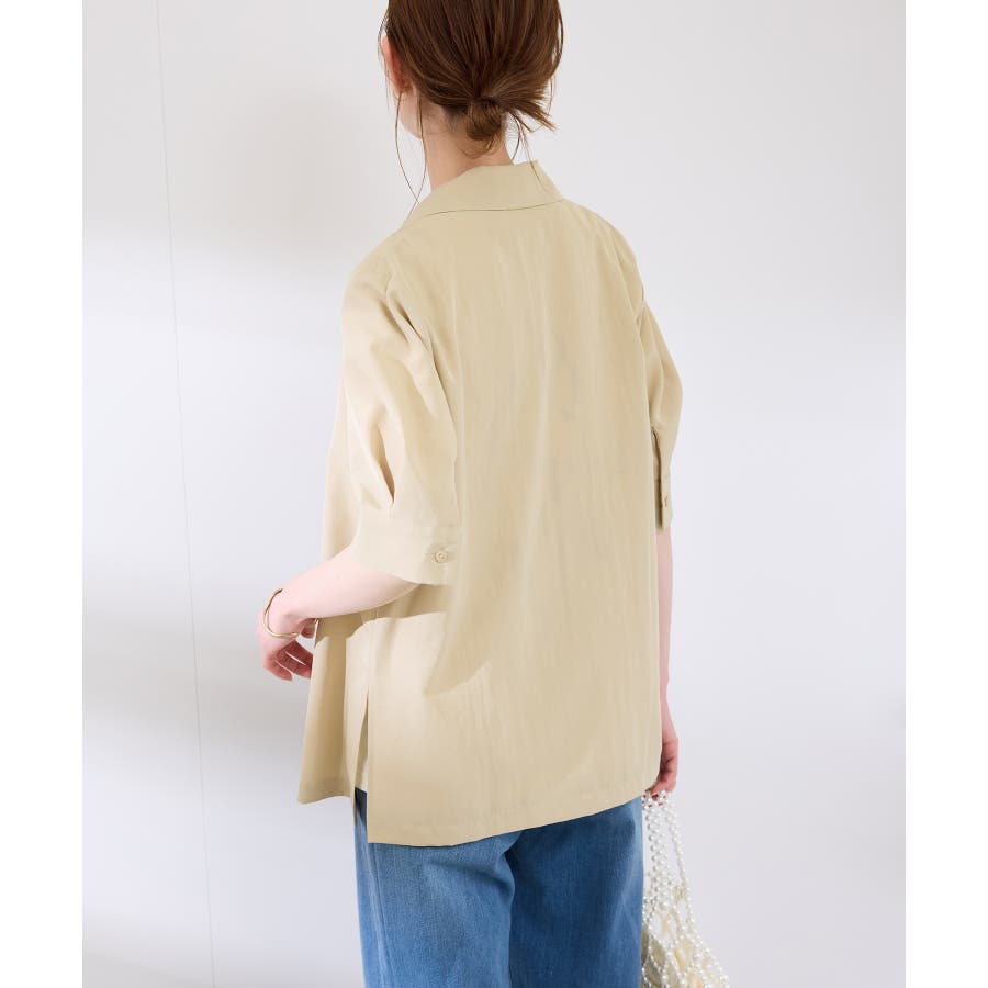 ・ゆったりサイズのジャケットをモチーフにした5分袖シャツ。