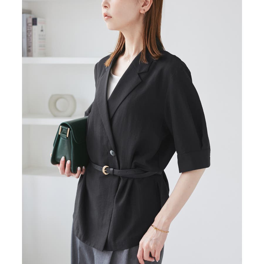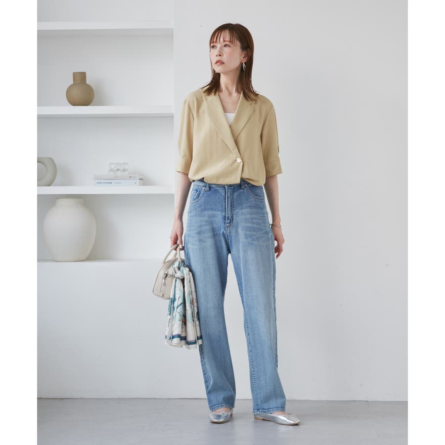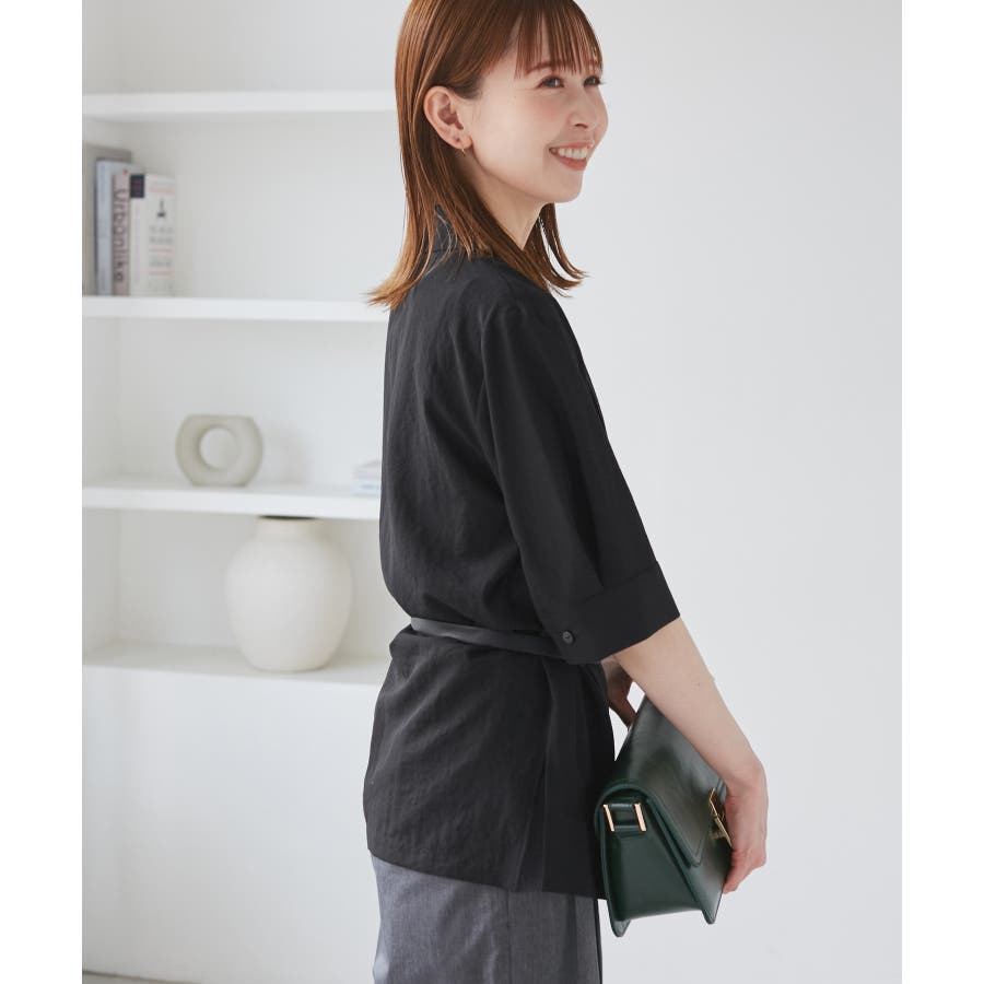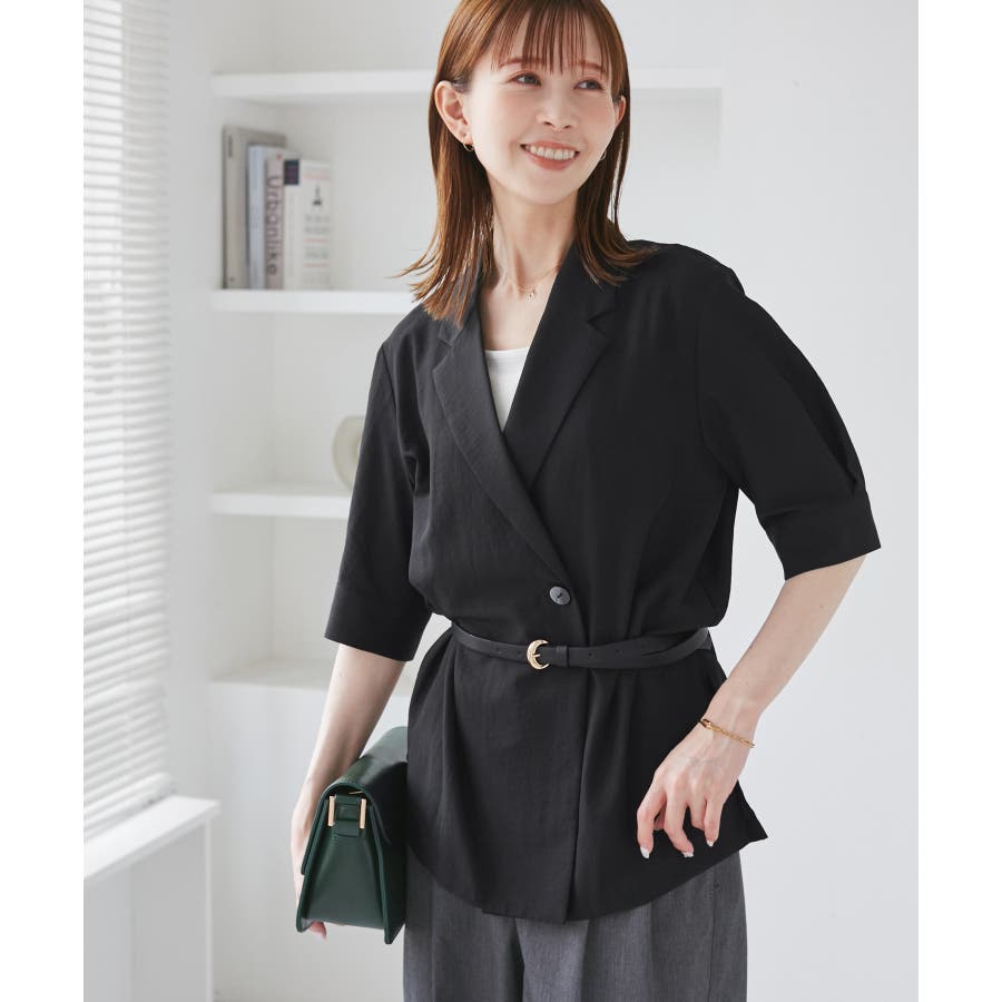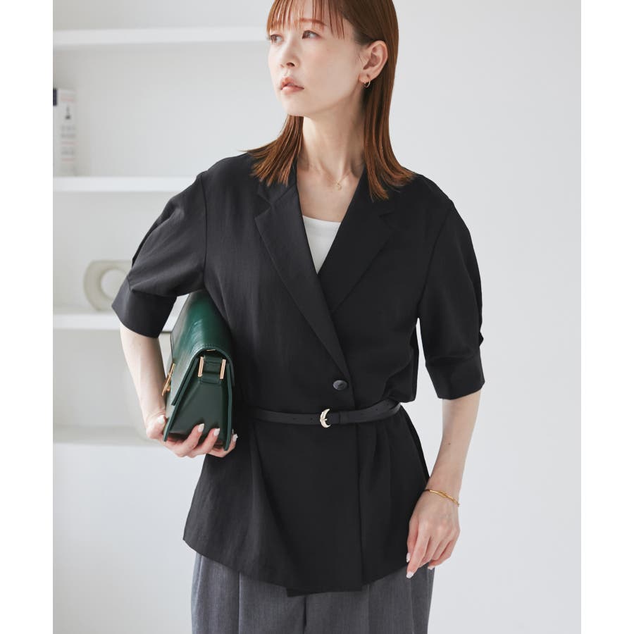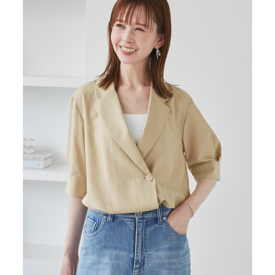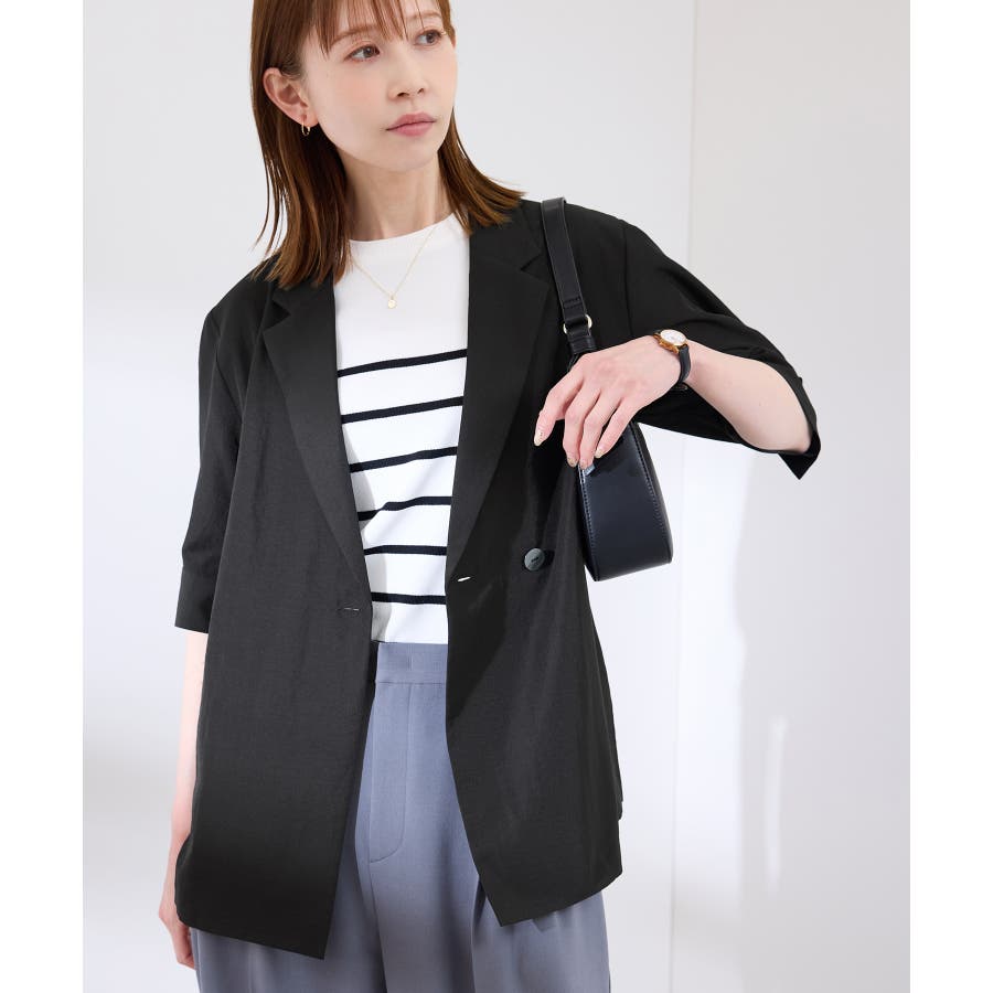 ・ゆったりサイズのジャケットをモチーフにした5分袖シャツ。