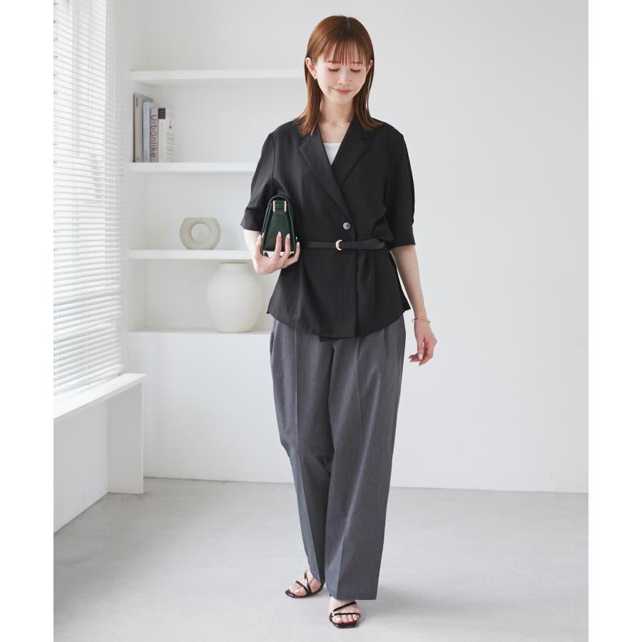 ・ワイドパンツでマスキュリンルックに仕上げるとグッド。
