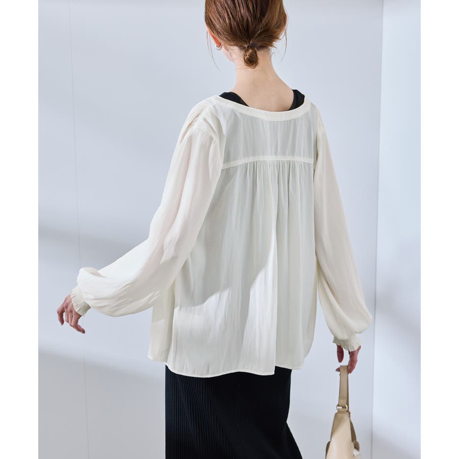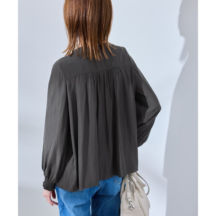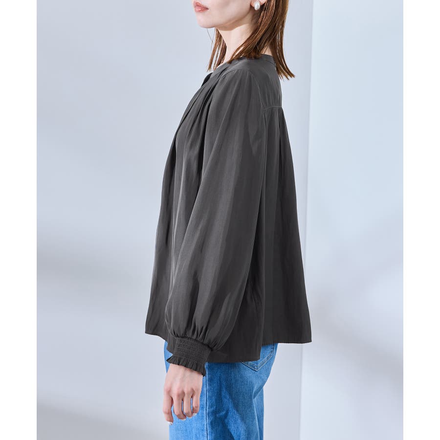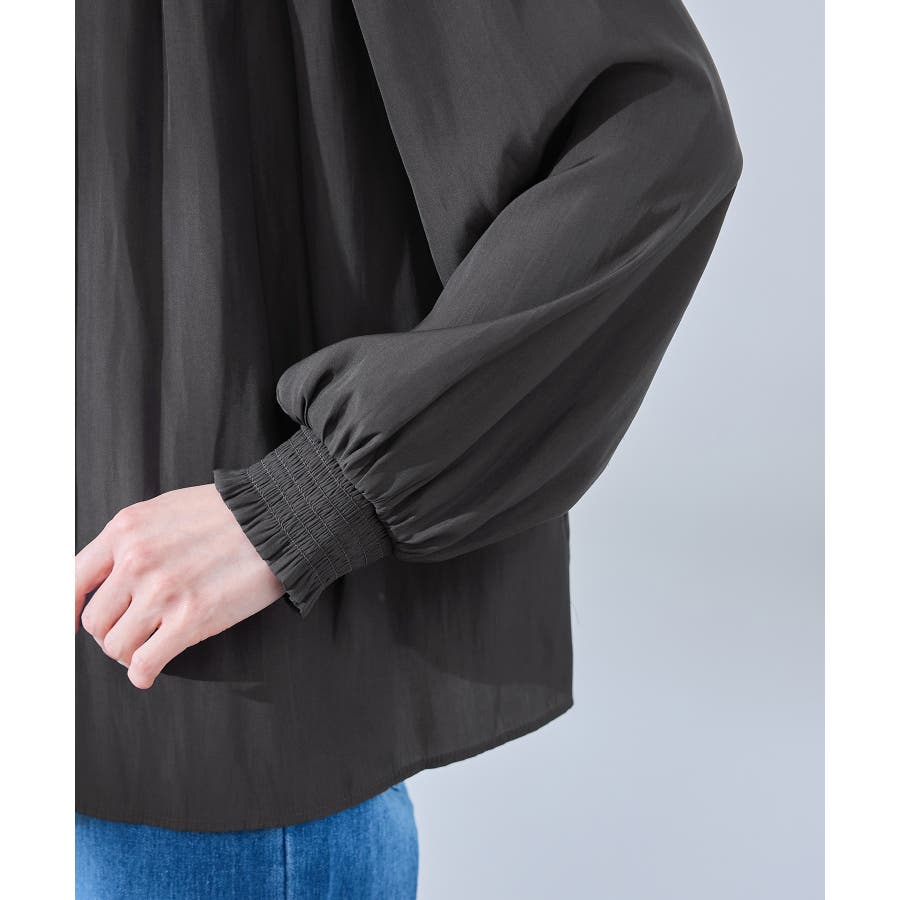 ・シャーリングカブスデザインは袖をブラウジングしやすく手元を華やかに見せてくれる。