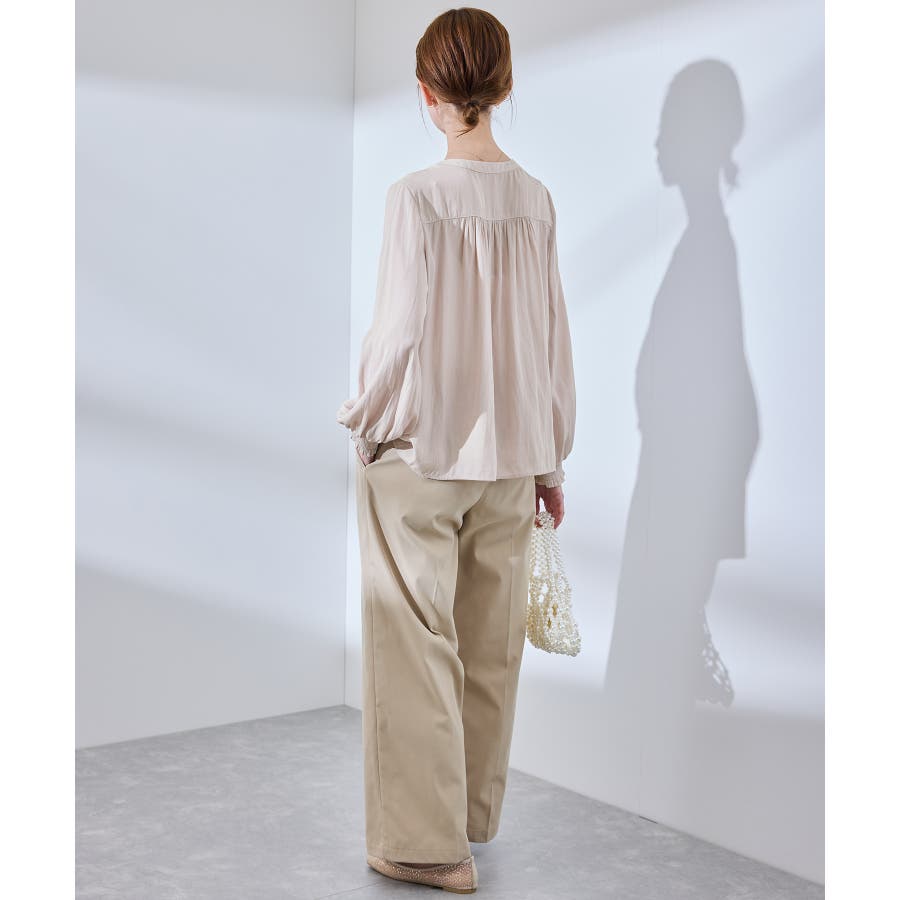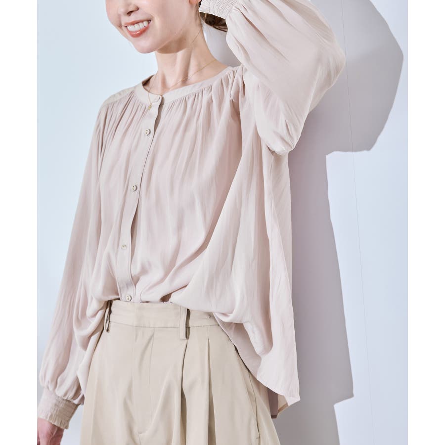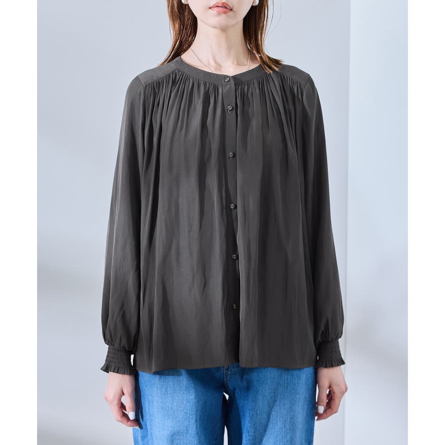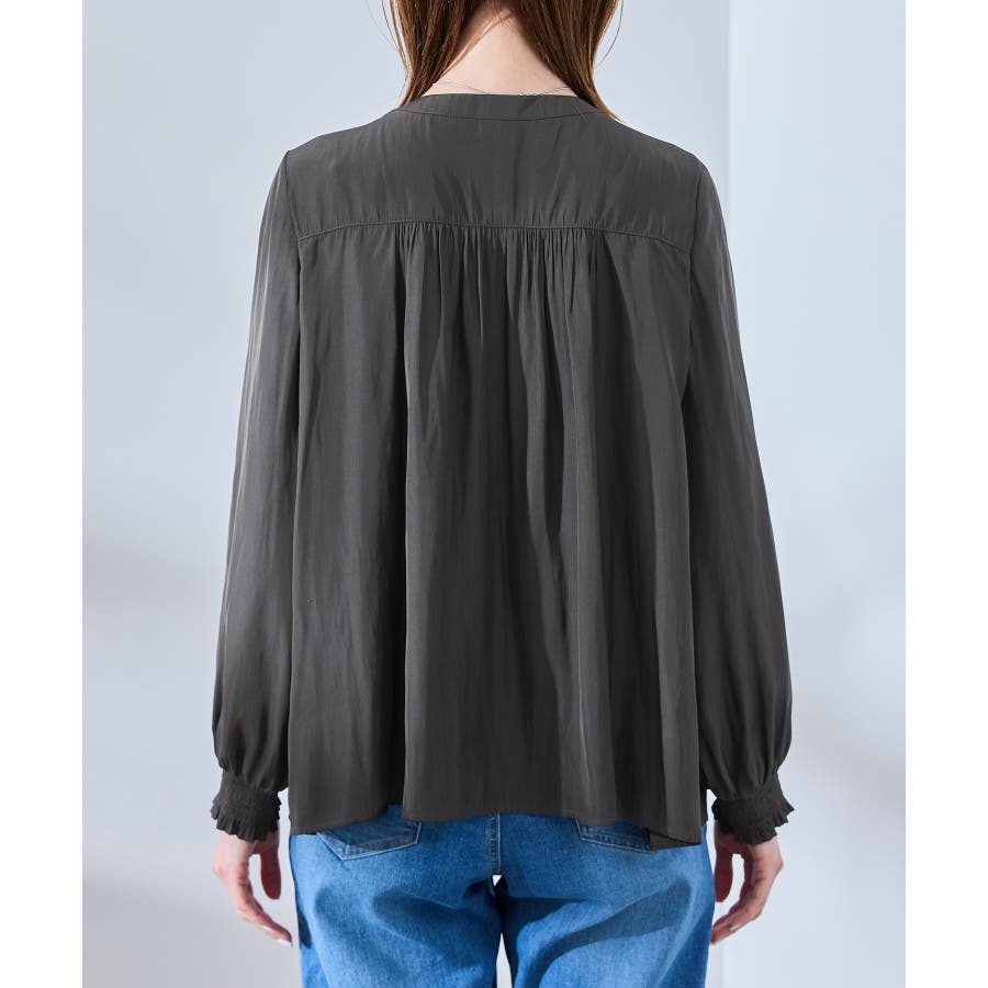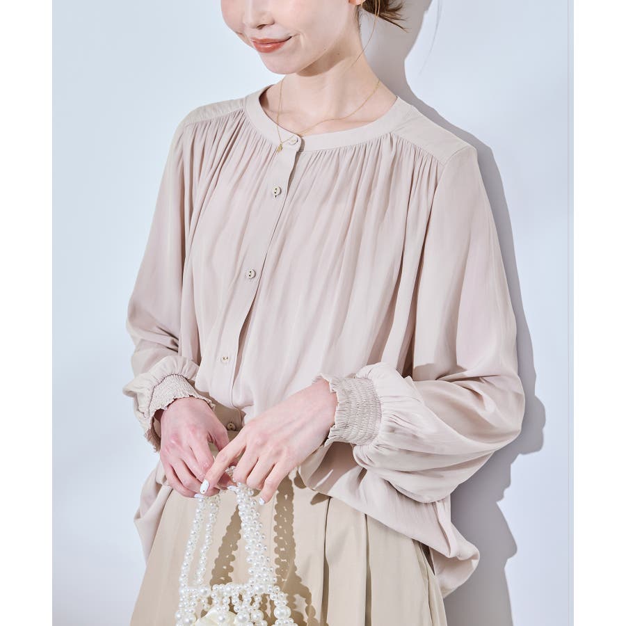 ・シャーリングカブスデザインは袖をブラウジングしやすく手元を華やかに見せてくれる。
