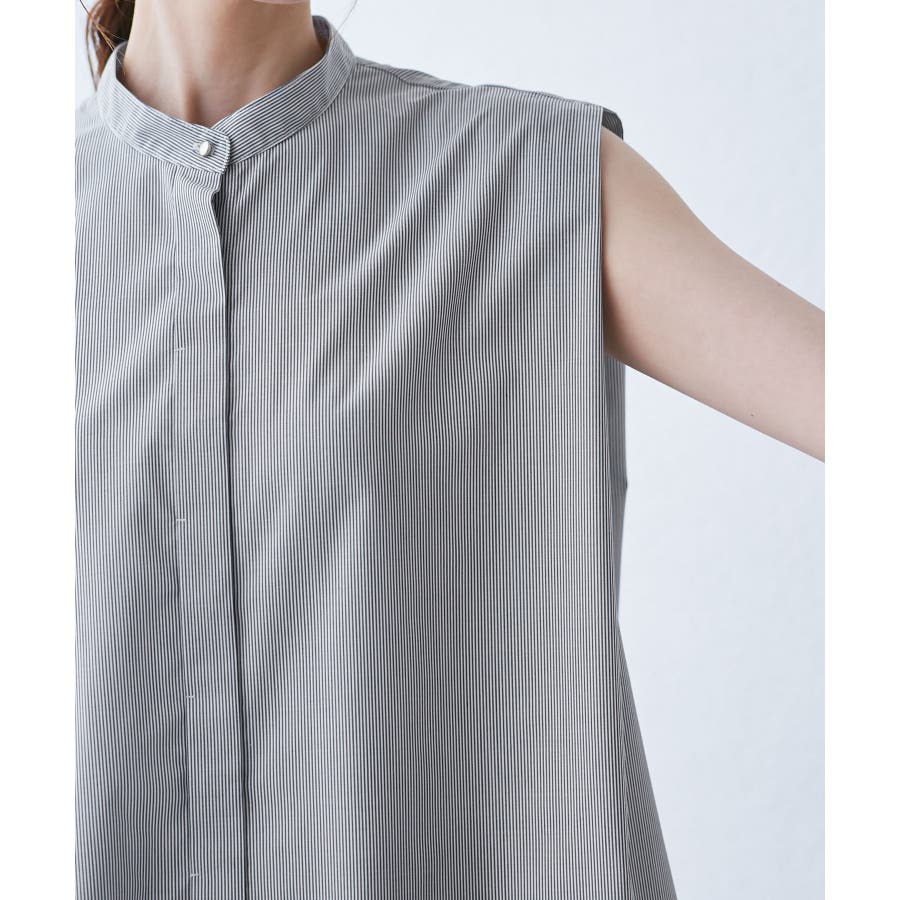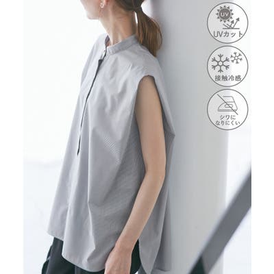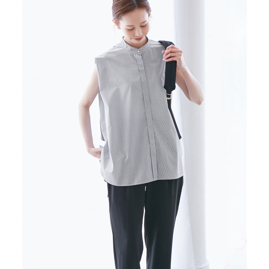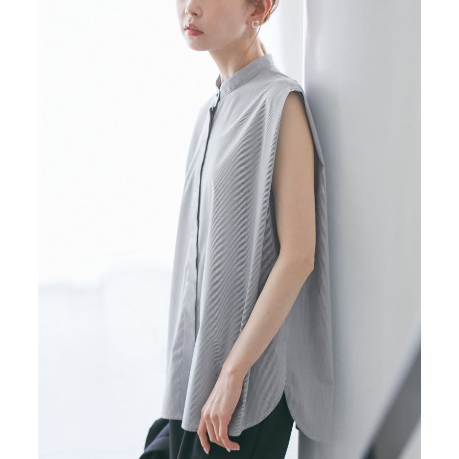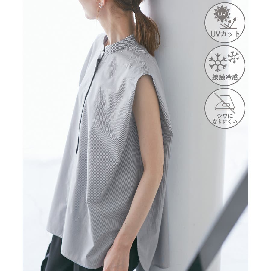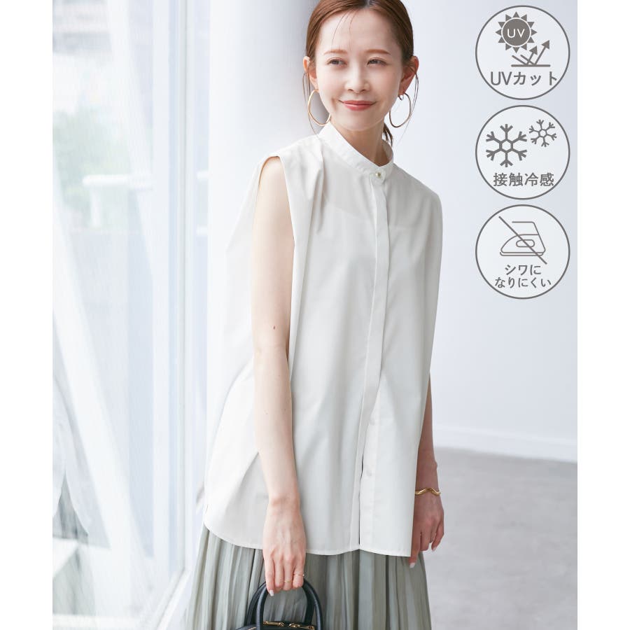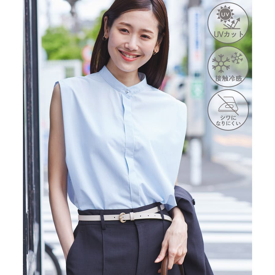 【UVカット・接触冷感・イージーケア】バンドカラーノースリーブシャツ/通勤対応