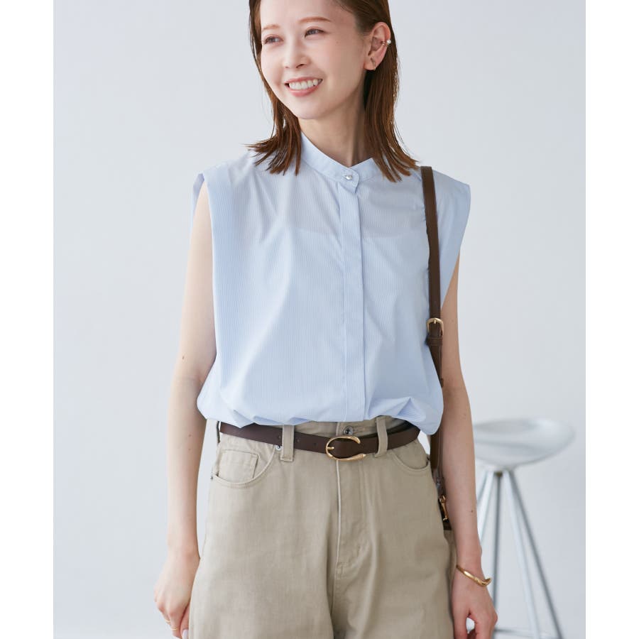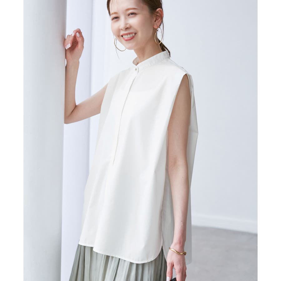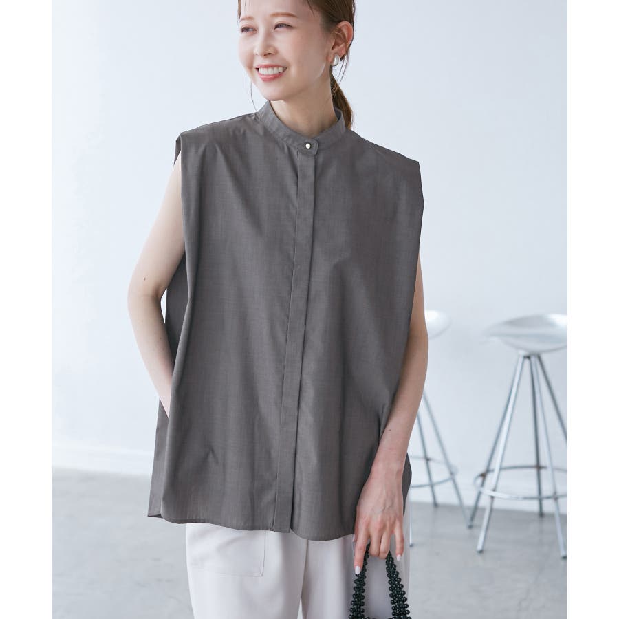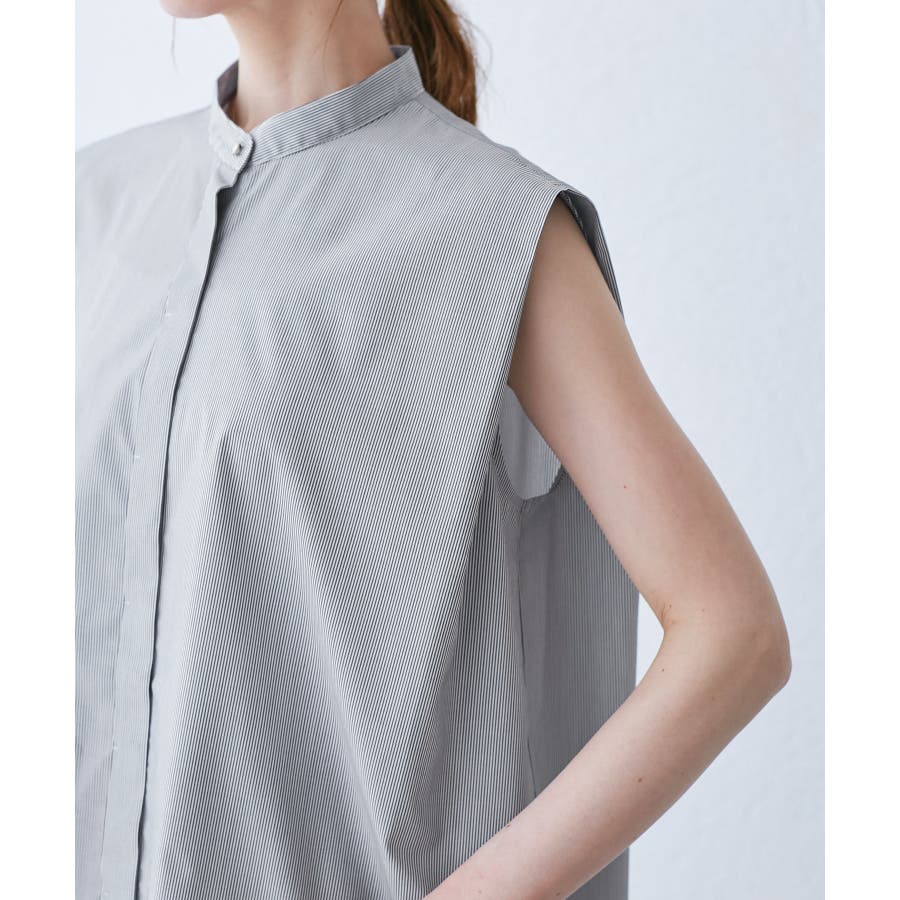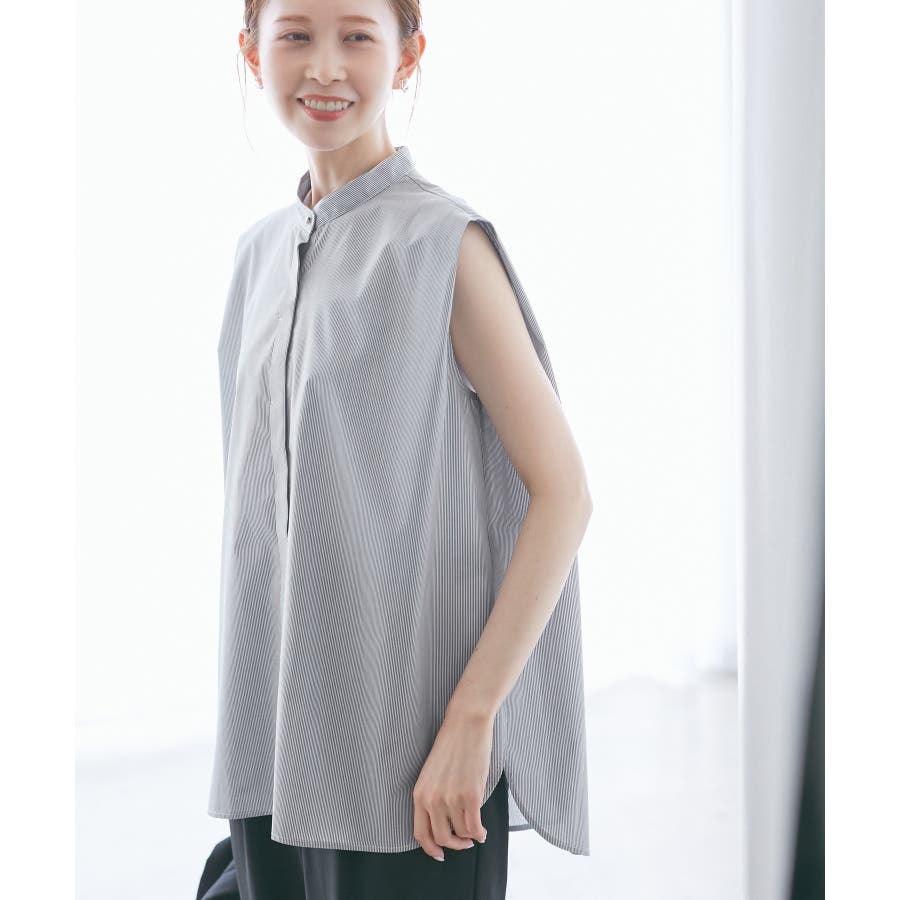【UVカット・接触冷感・イージーケア】バンドカラーノースリーブシャツ/通勤対応