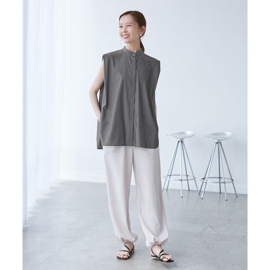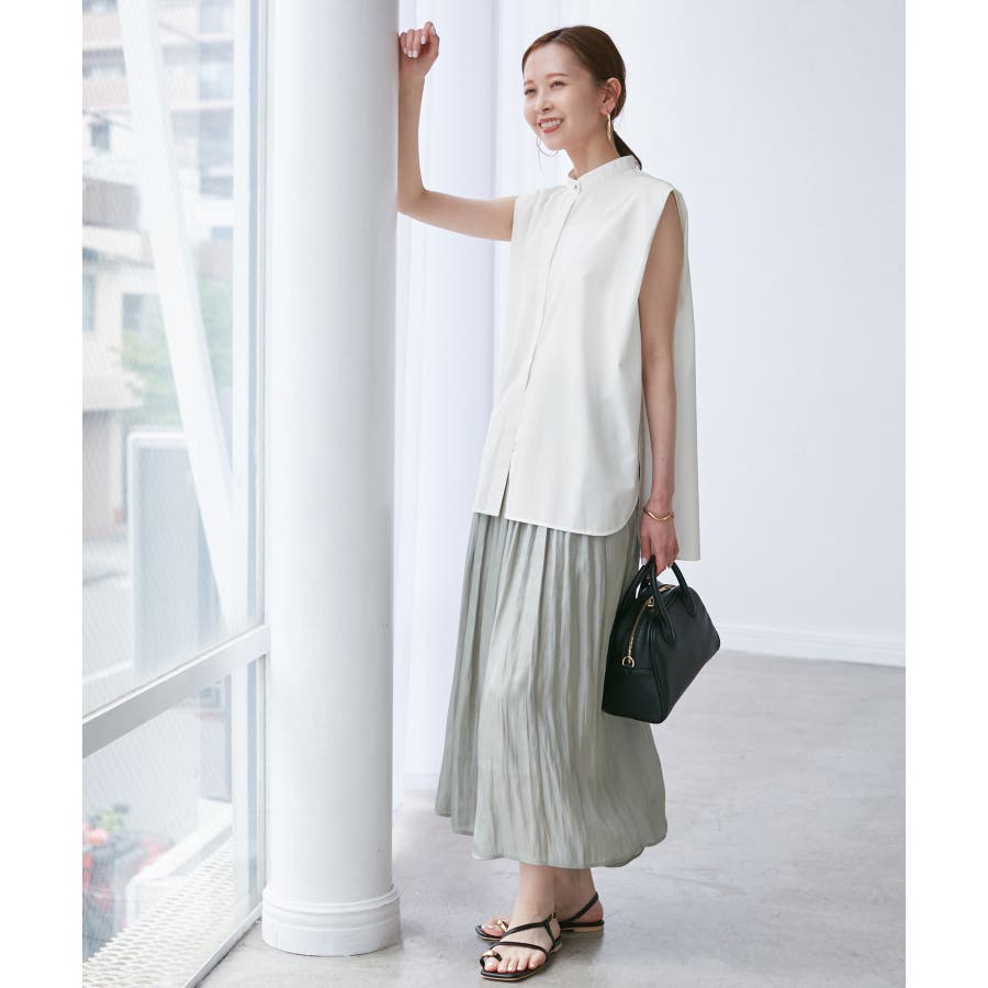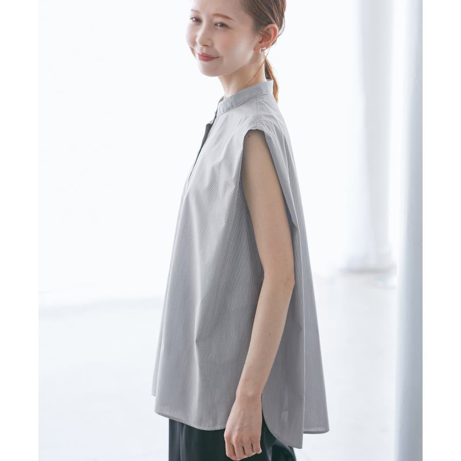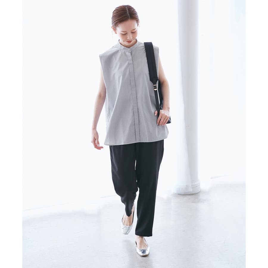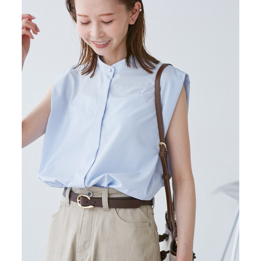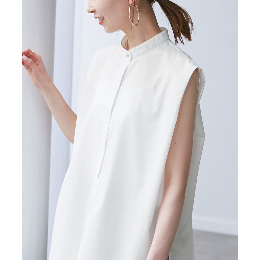 【UVカット・接触冷感・イージーケア】バンドカラーノースリーブシャツ/通勤対応
