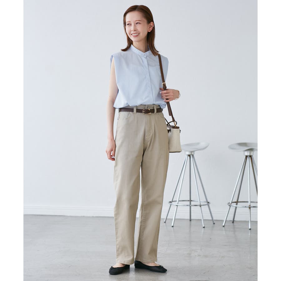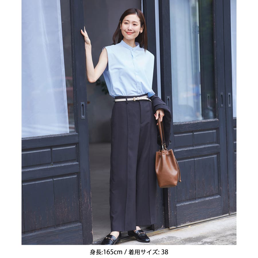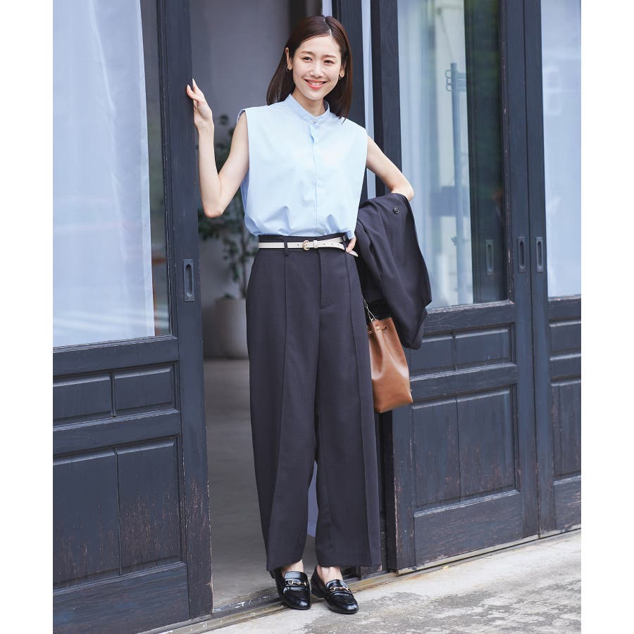・タックパンツでウエストをインでオフィスカジュアル/通勤スタイルに。