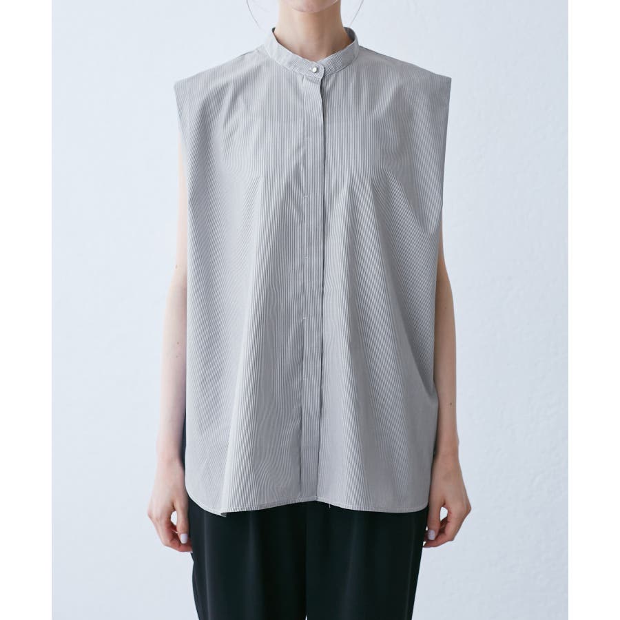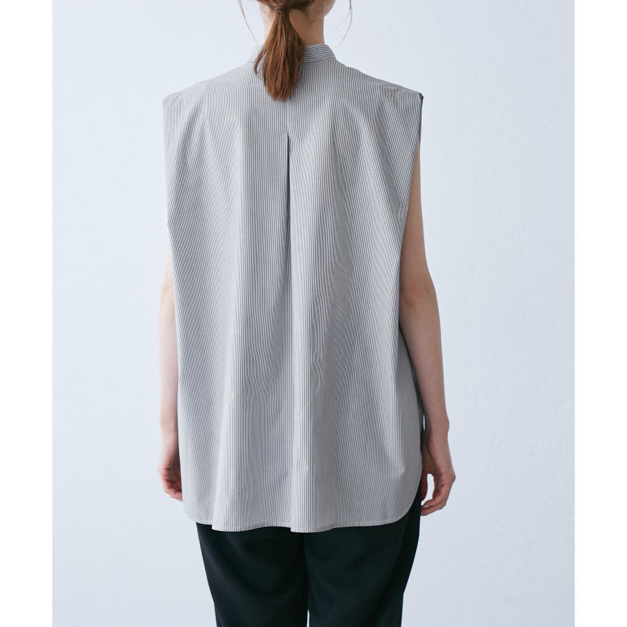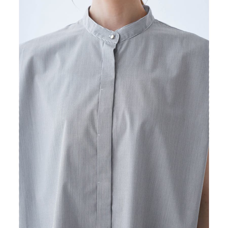 ・コンパクトなスタンドネックのゼロスリーブシャツ。