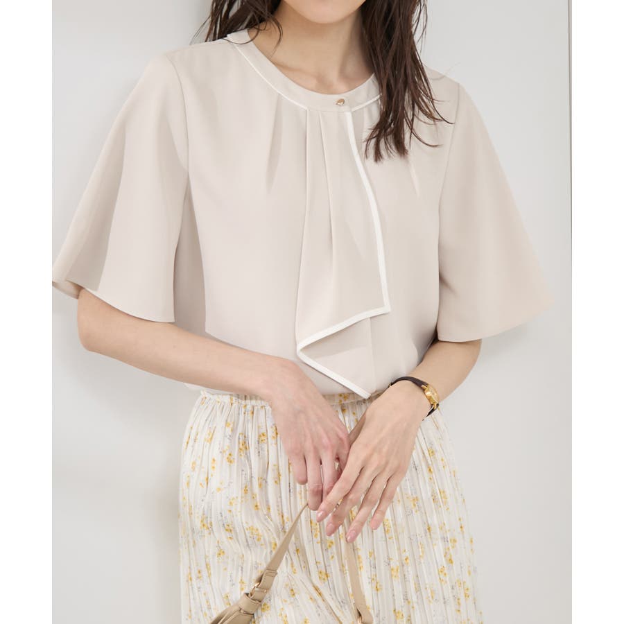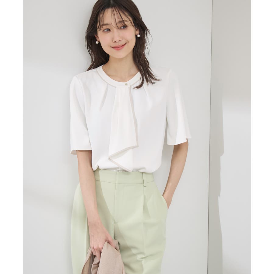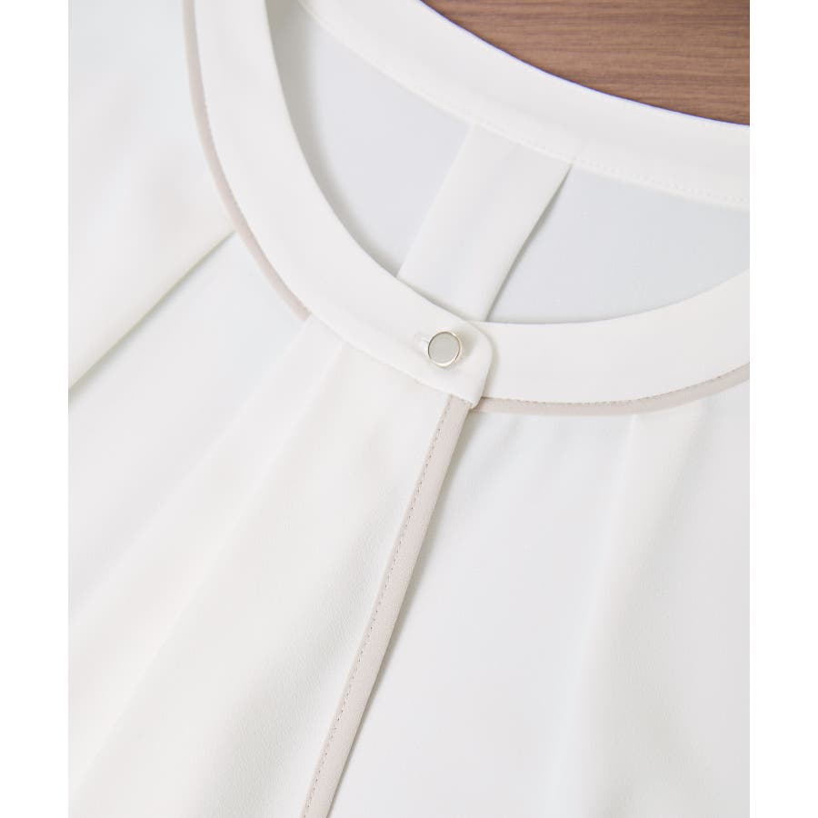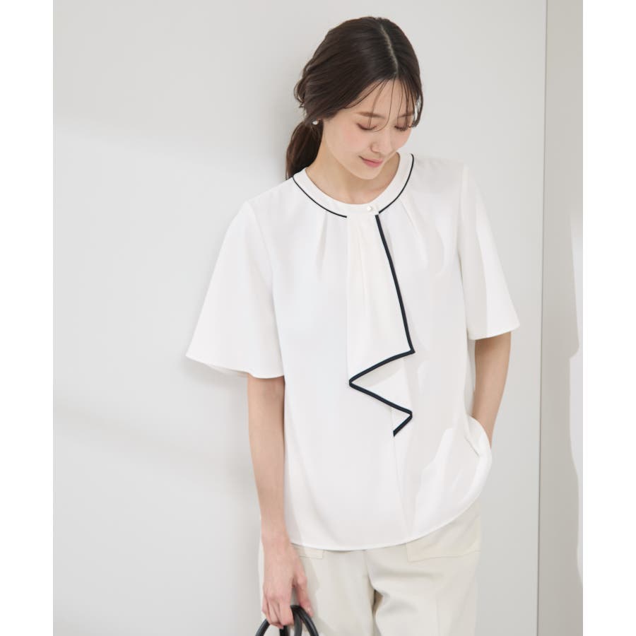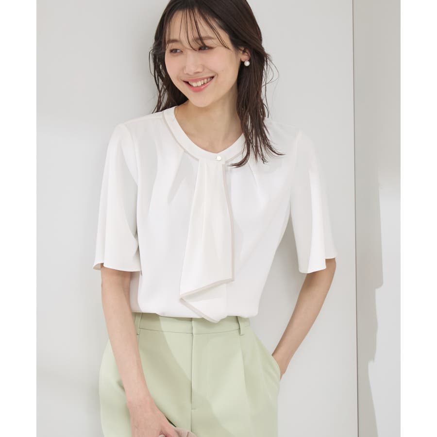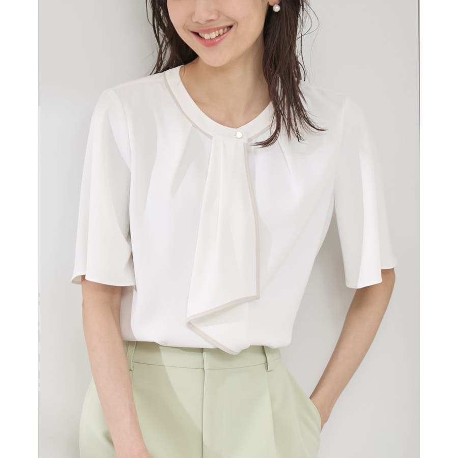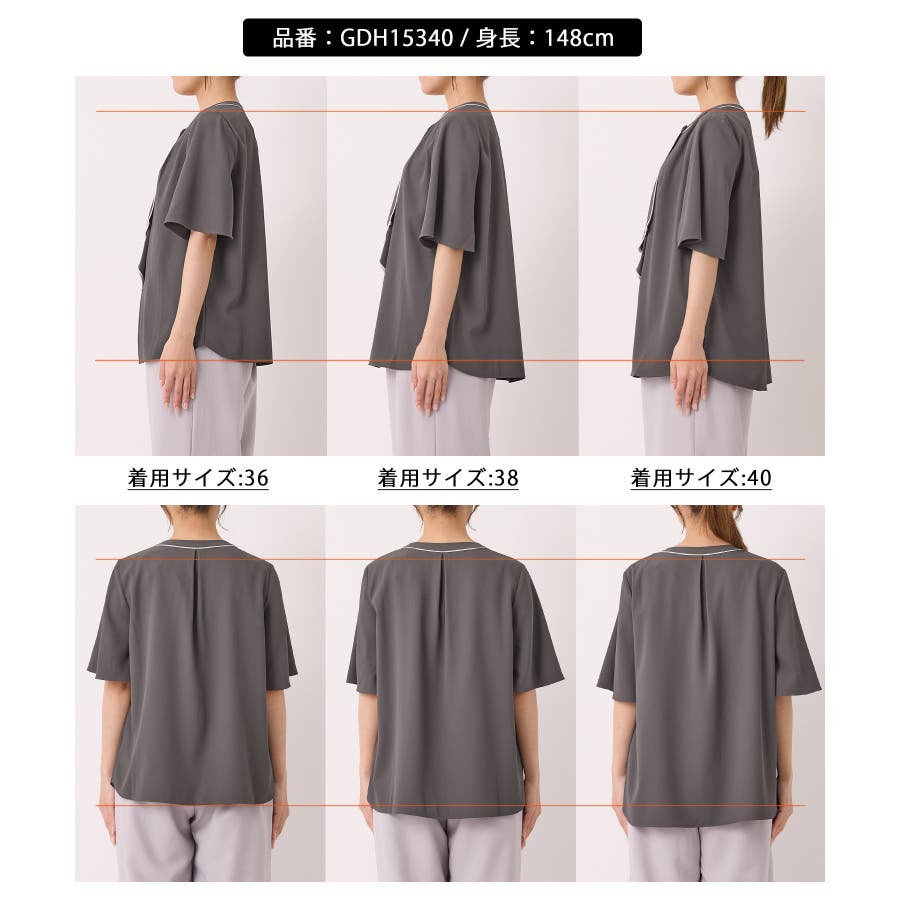 【WEB限定サイズ】配色ボウタイ風ハーフスリーブブラウス/通勤対応