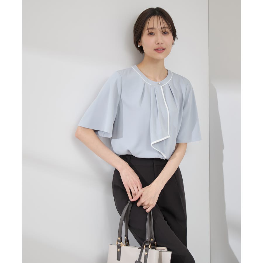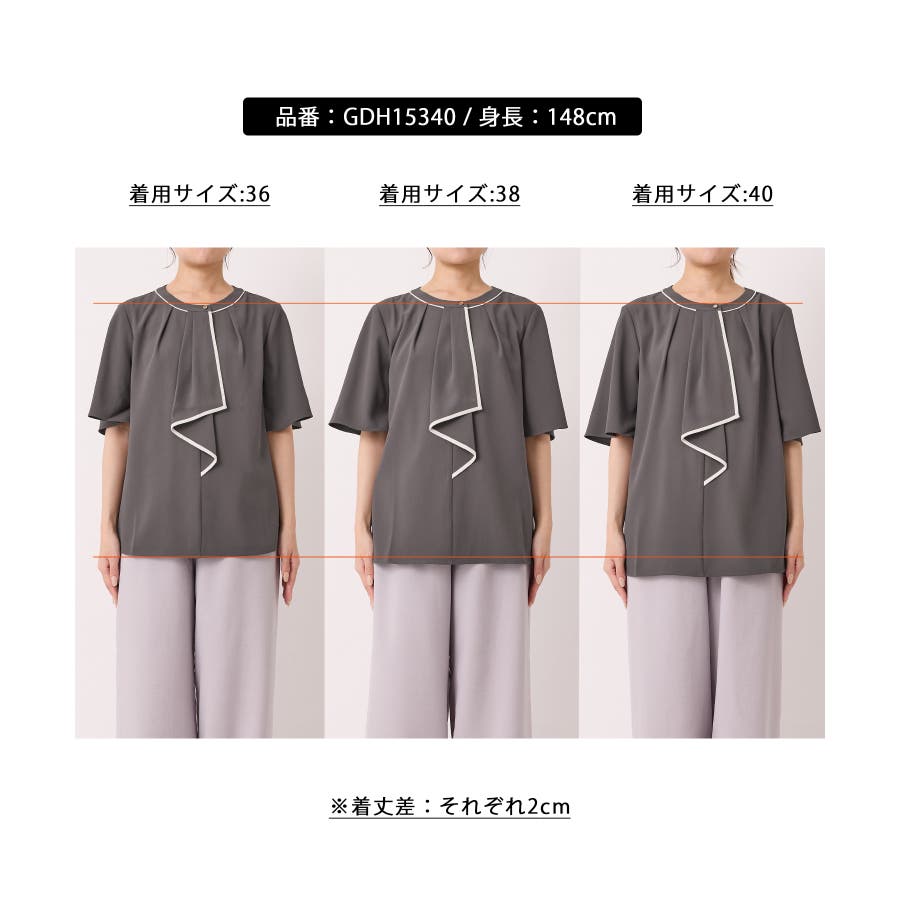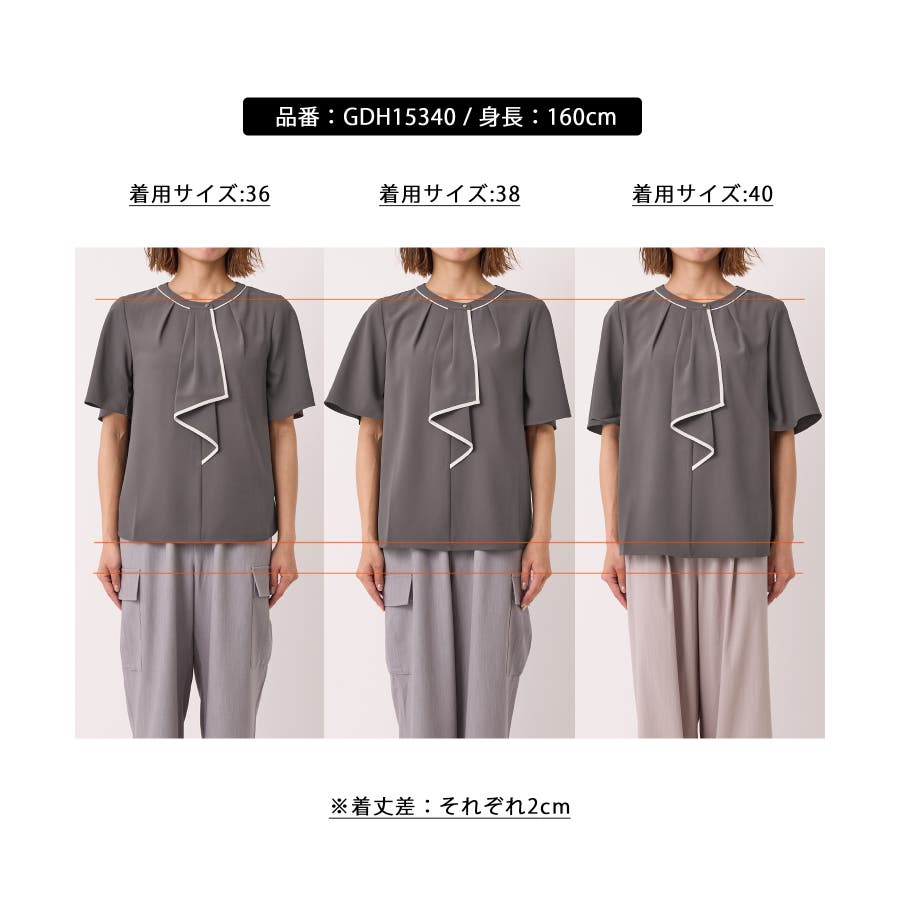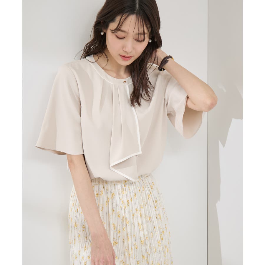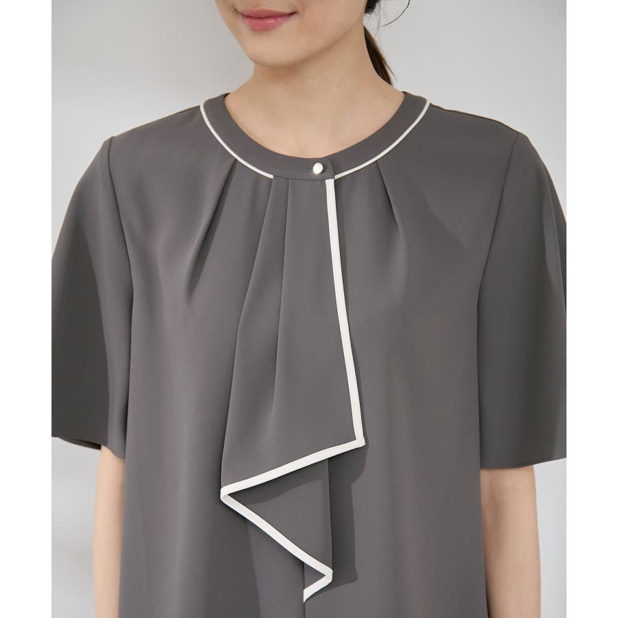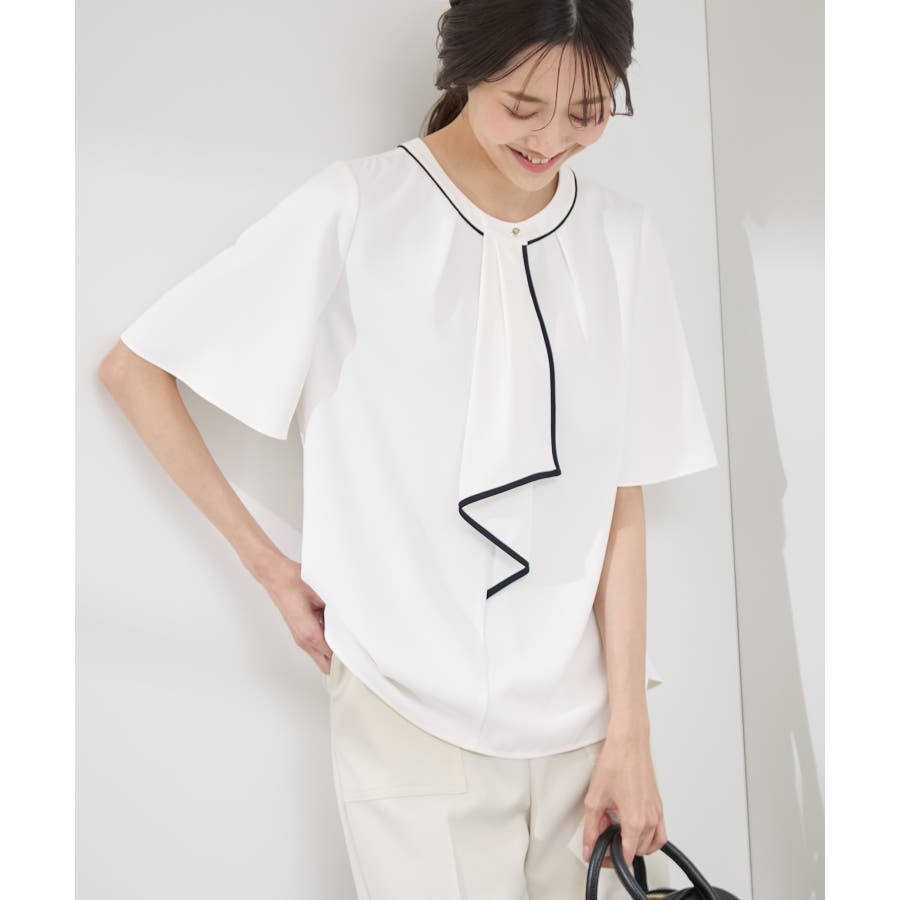 【WEB限定サイズ】配色ボウタイ風ハーフスリーブブラウス/通勤対応