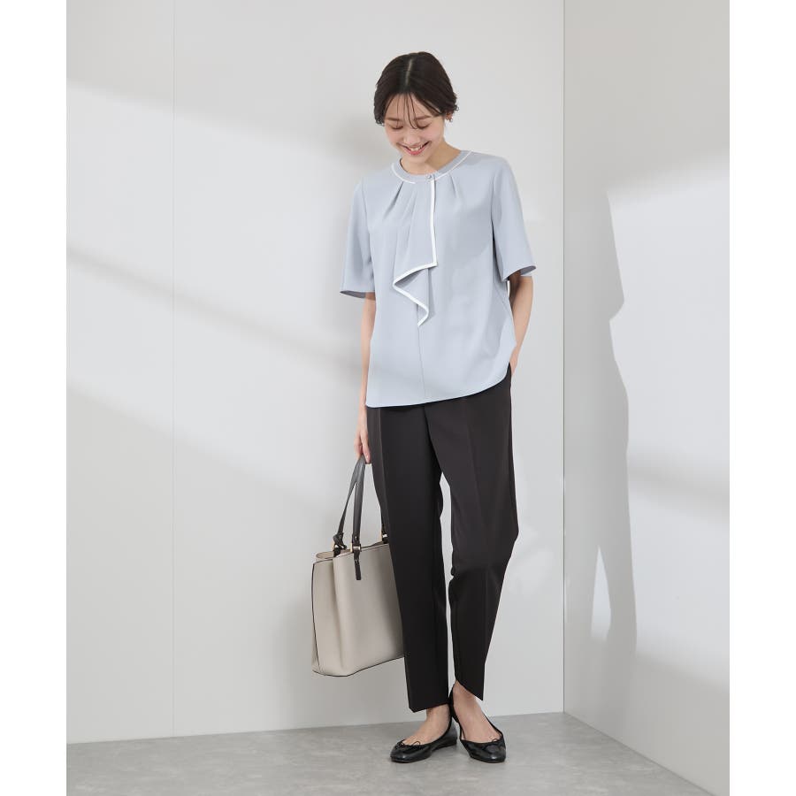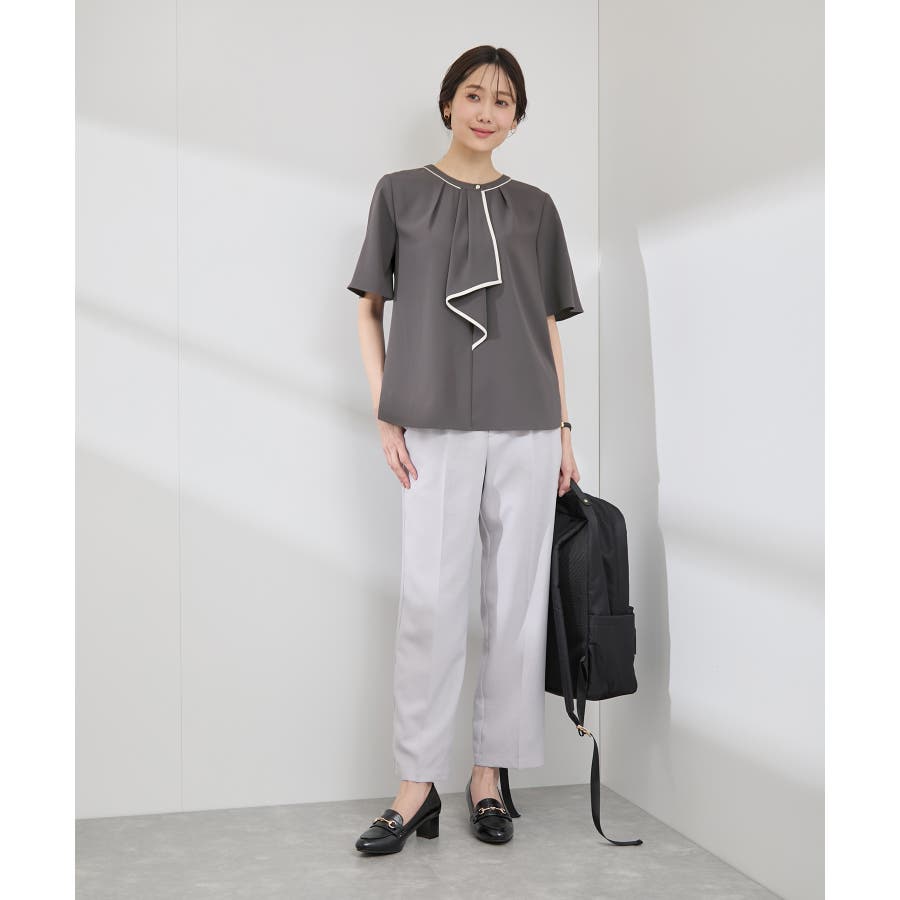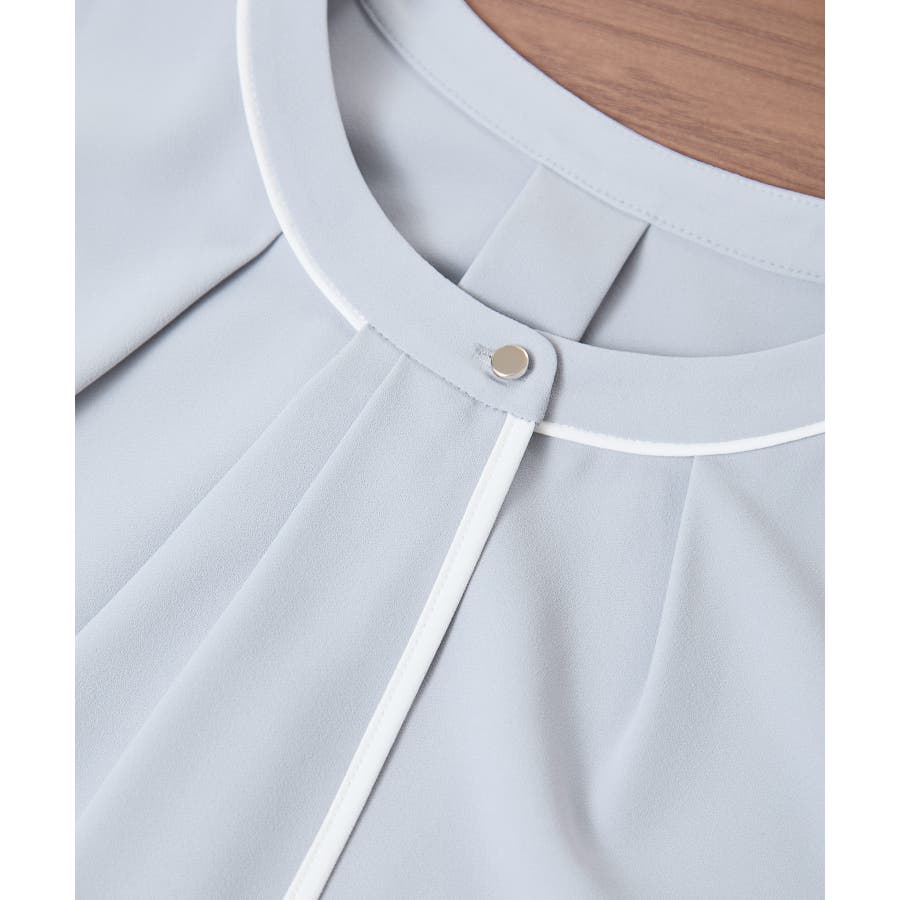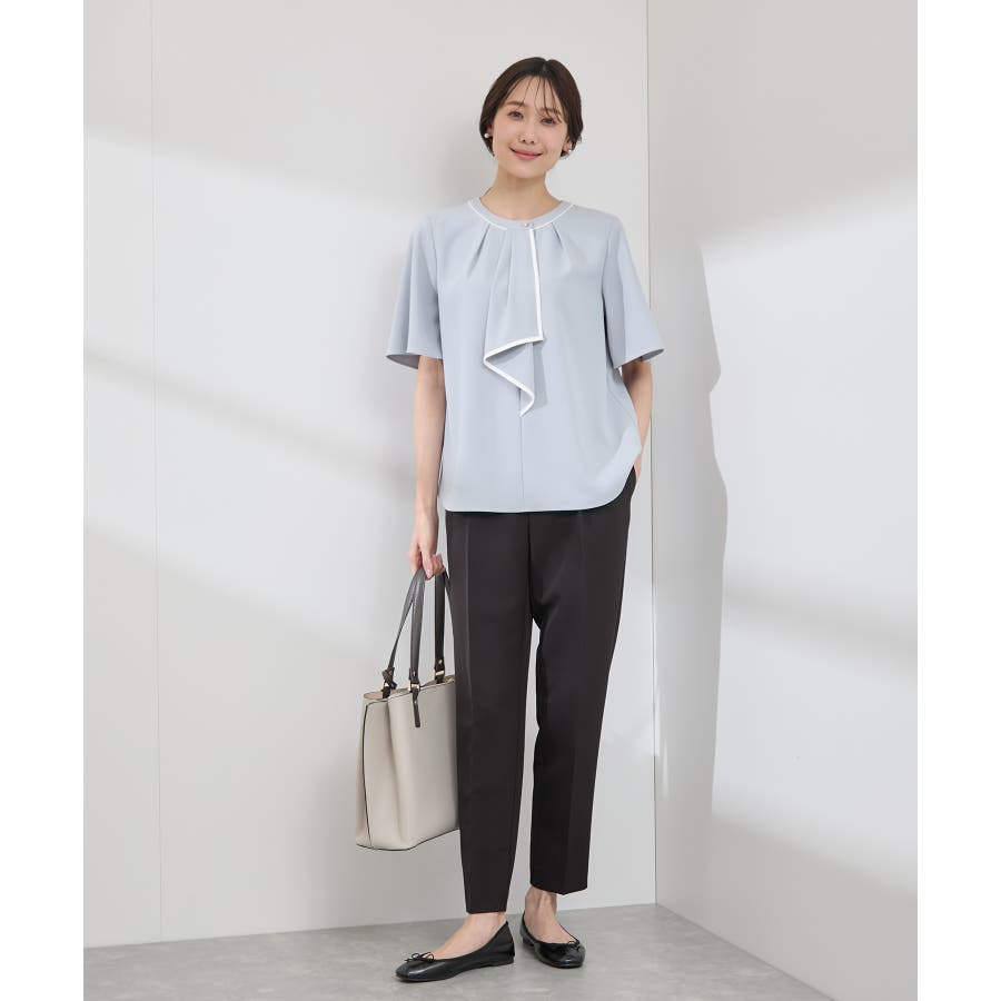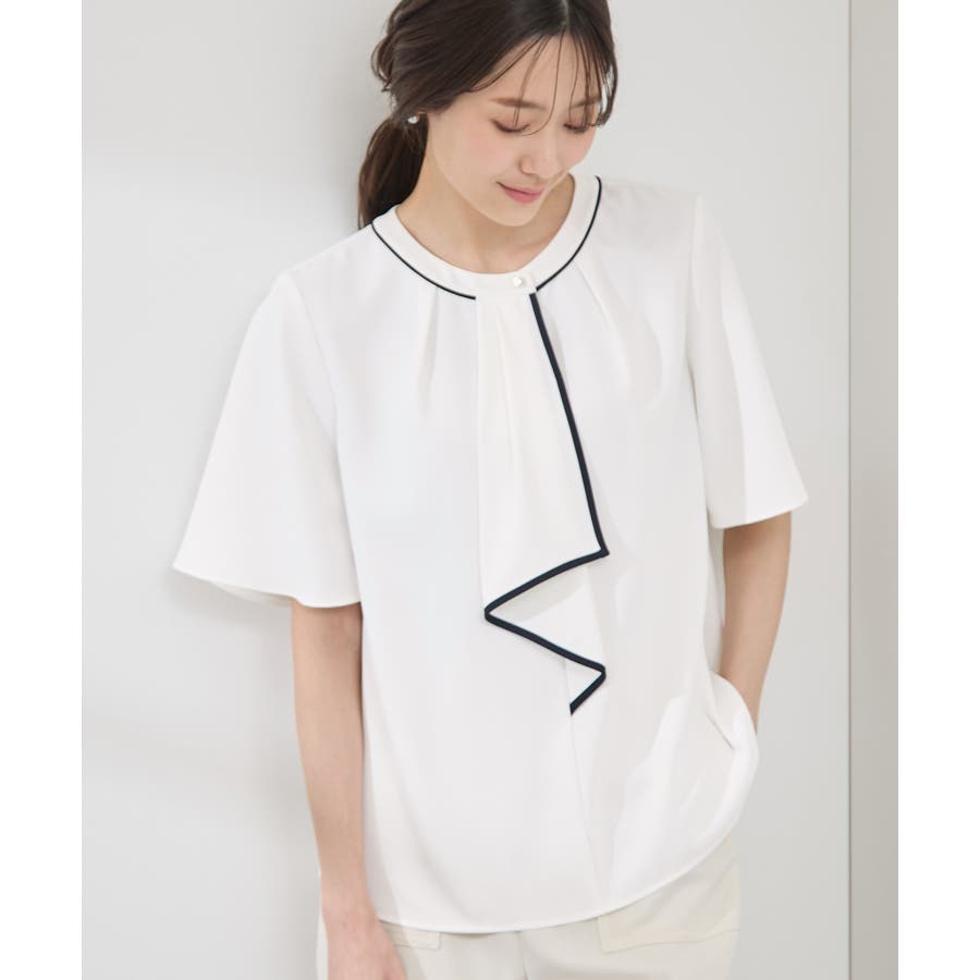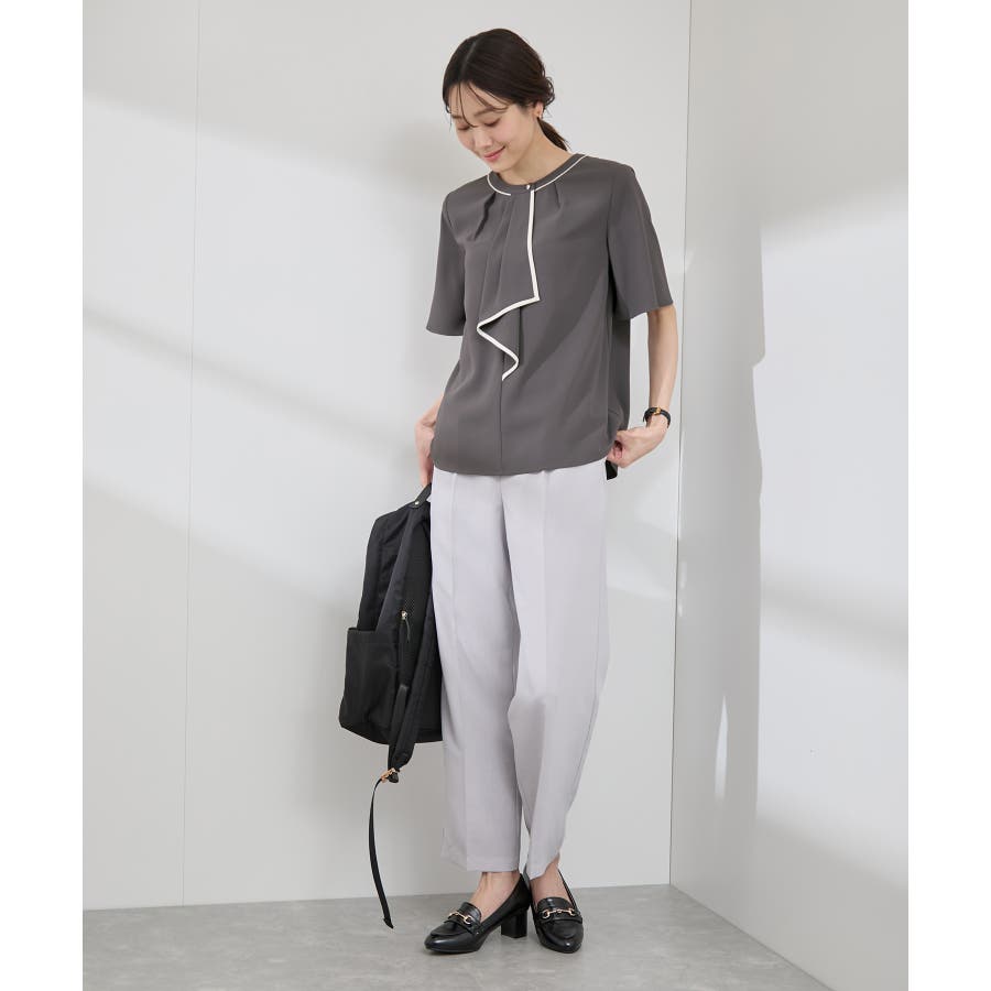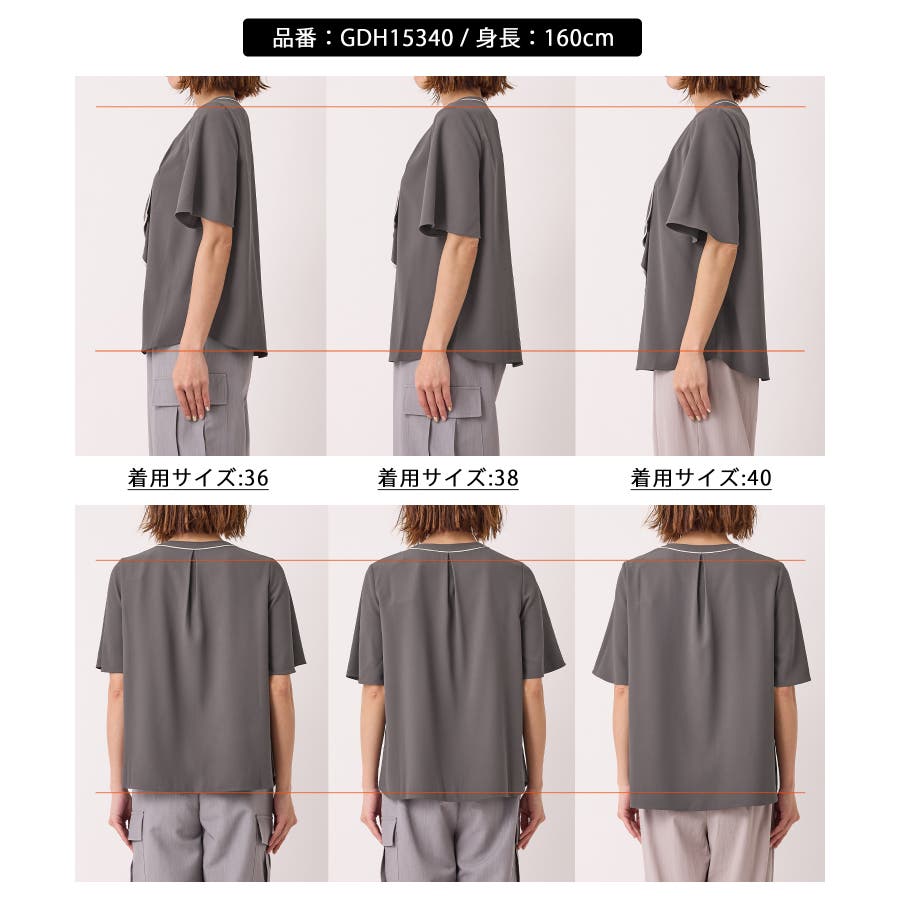 【WEB限定サイズ】配色ボウタイ風ハーフスリーブブラウス/通勤対応