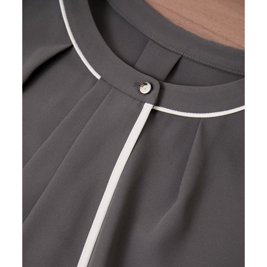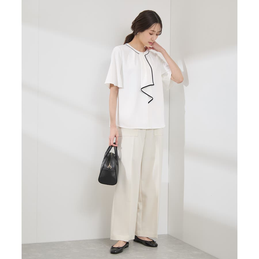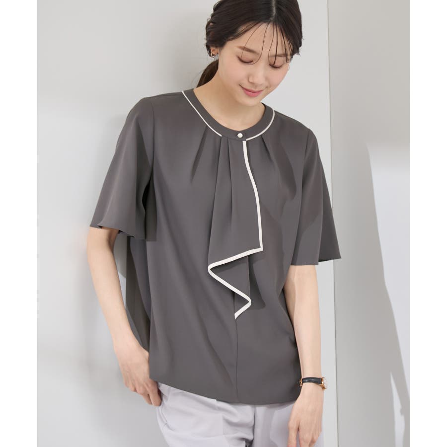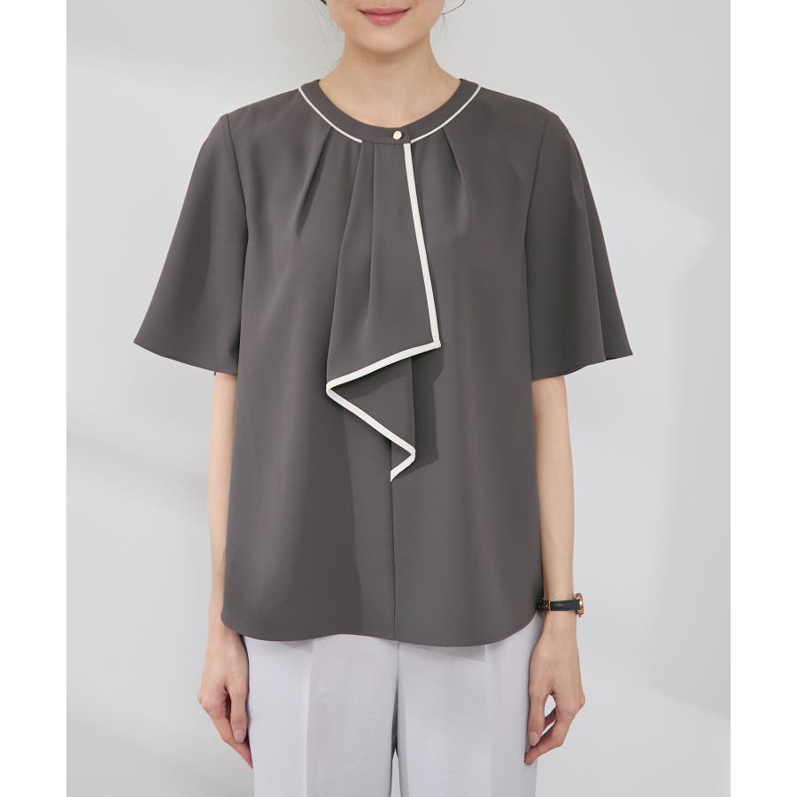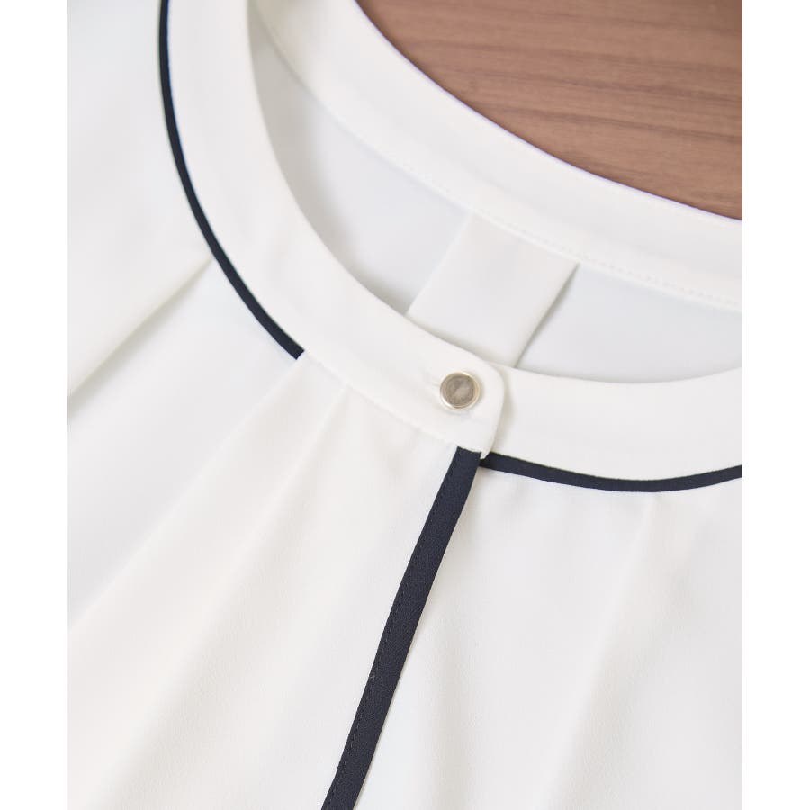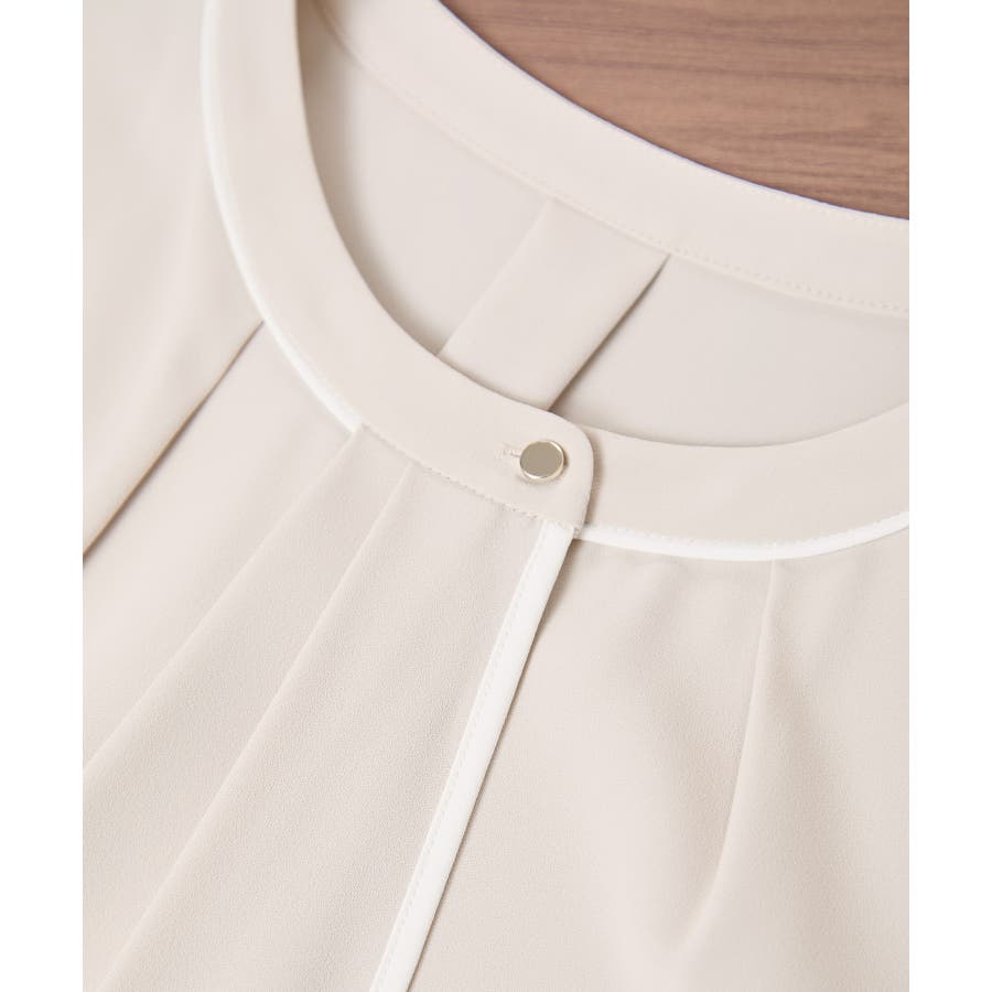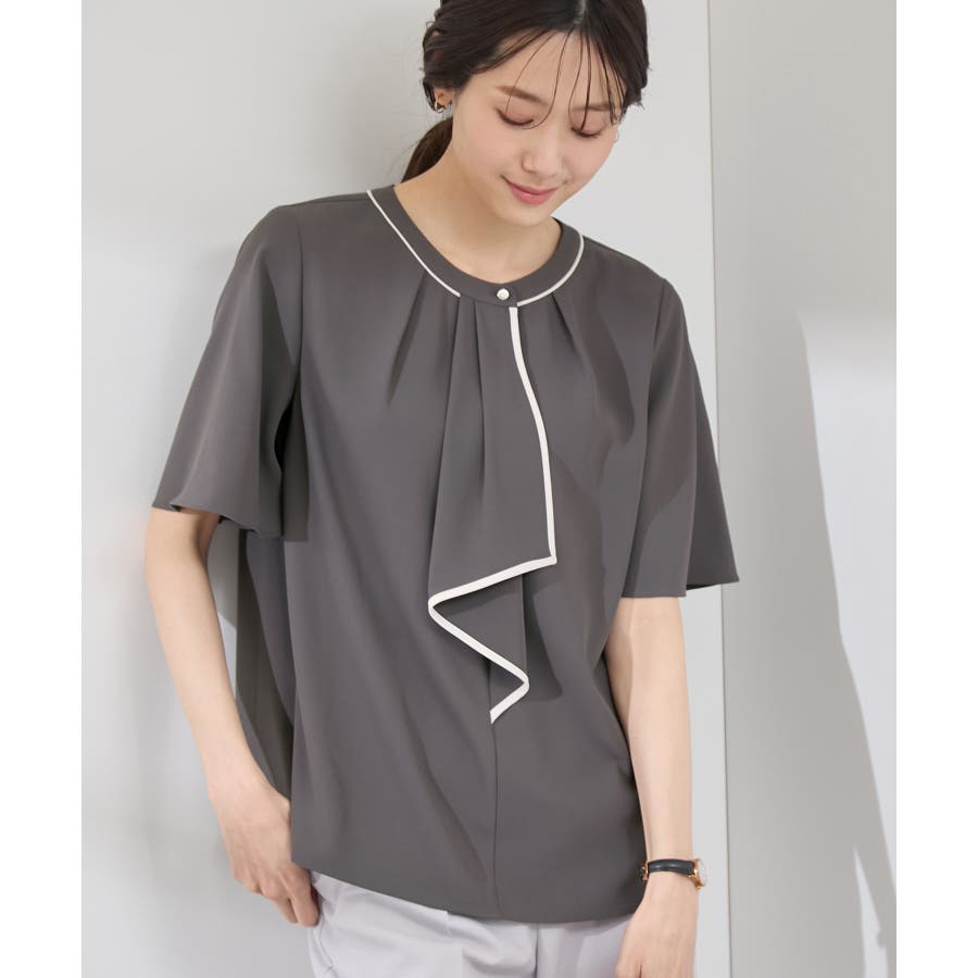 【WEB限定サイズ】配色ボウタイ風ハーフスリーブブラウス/通勤対応